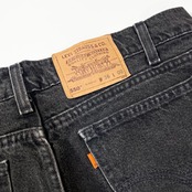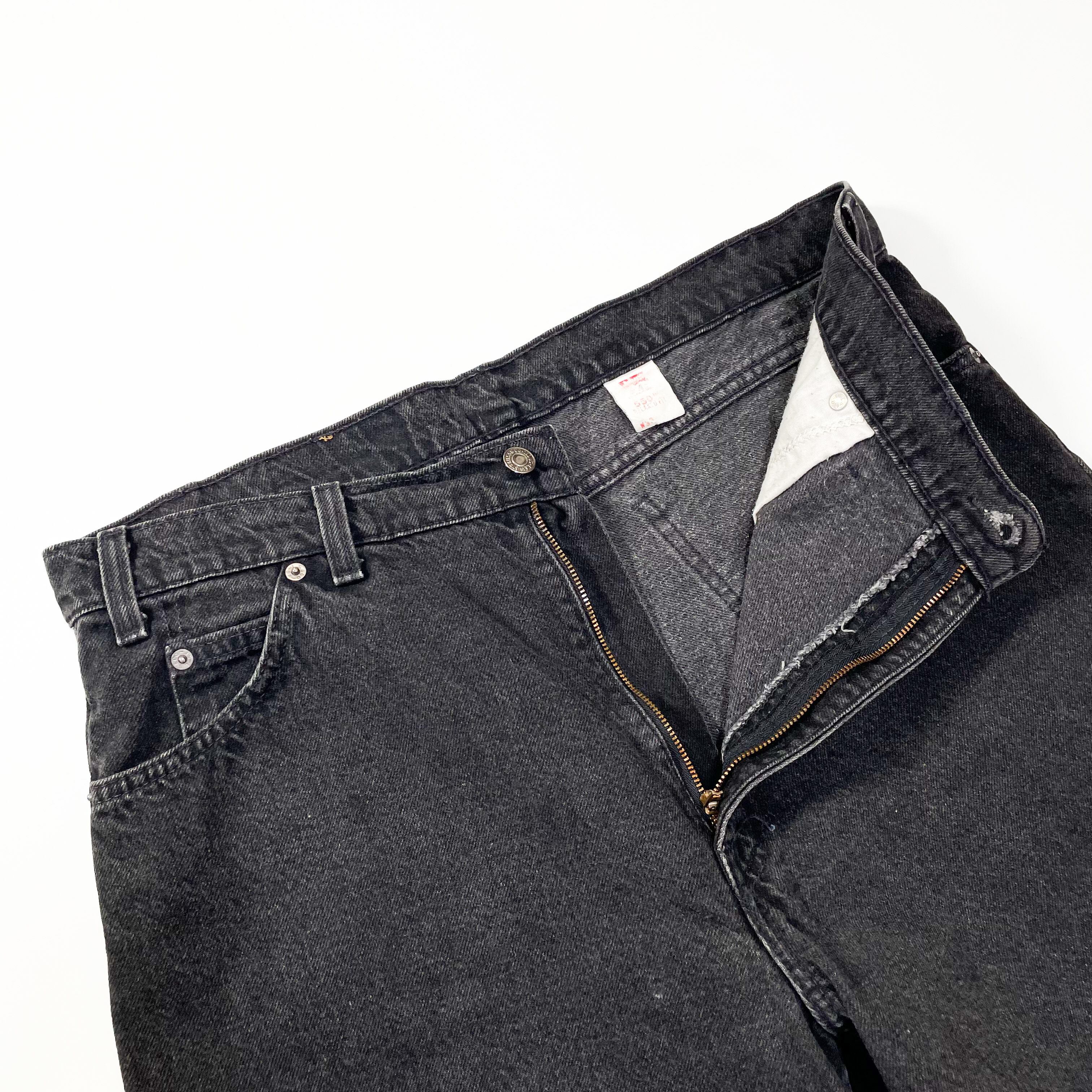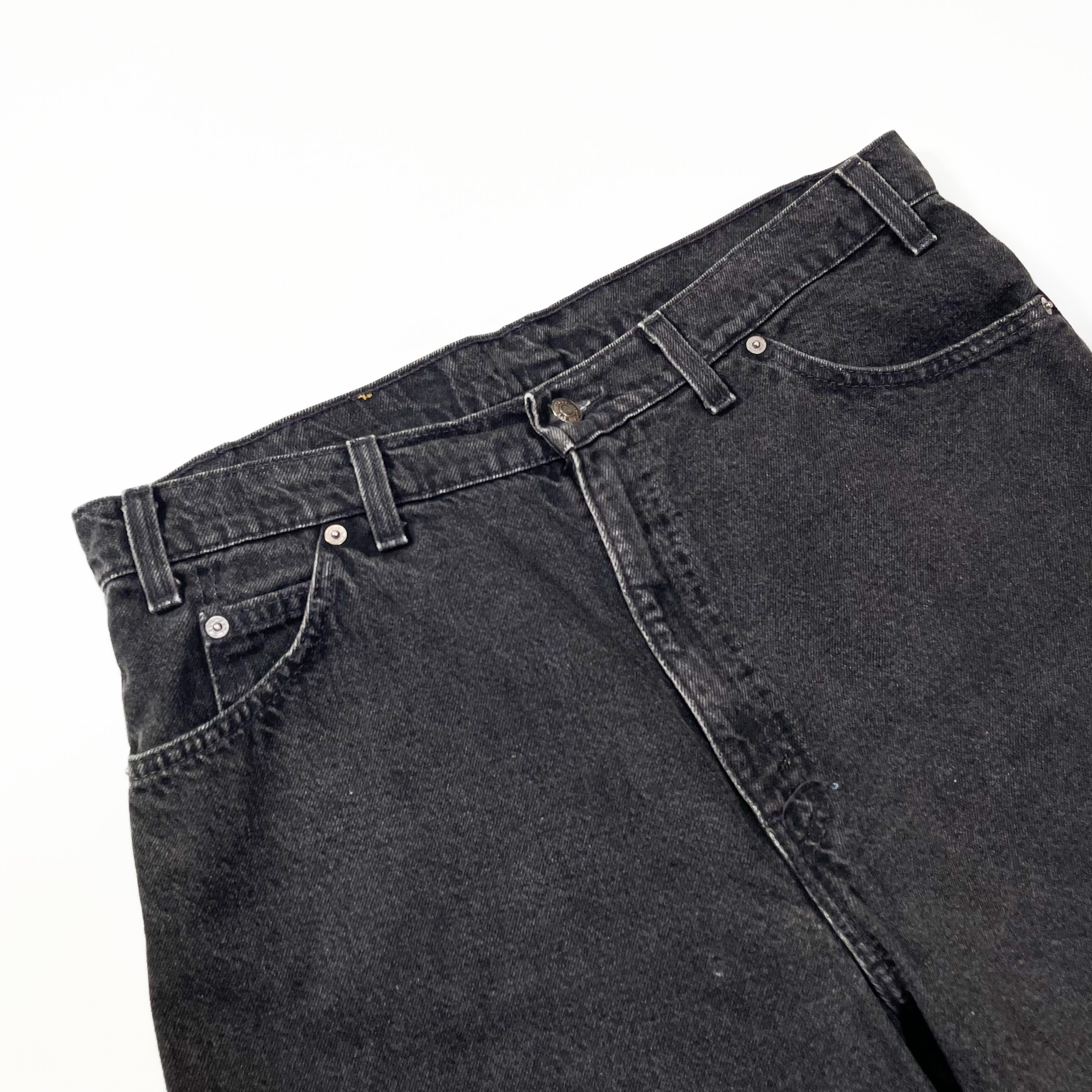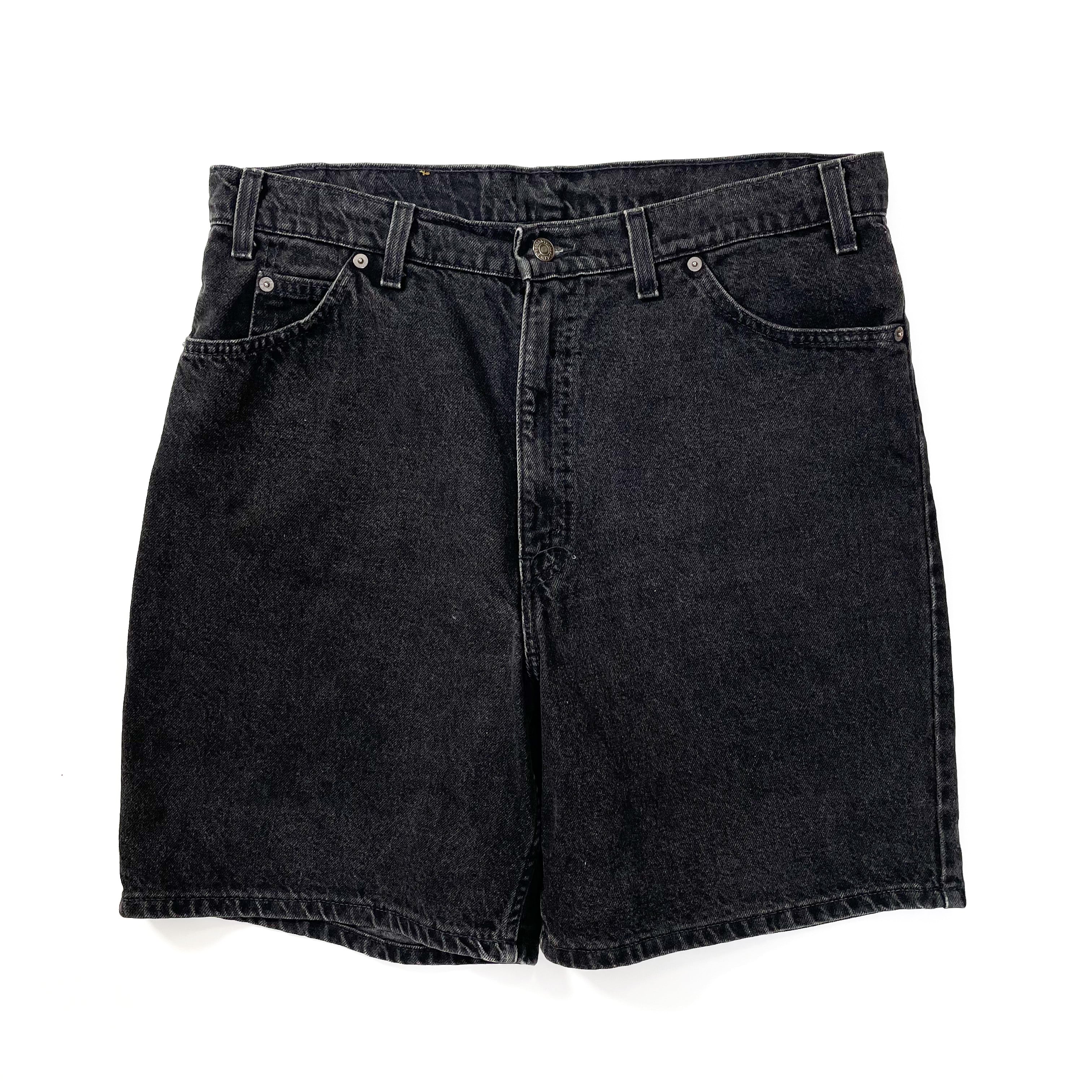 1990s " Levi's 550 " black denim relaxed shorts . made in usa . size 36 .