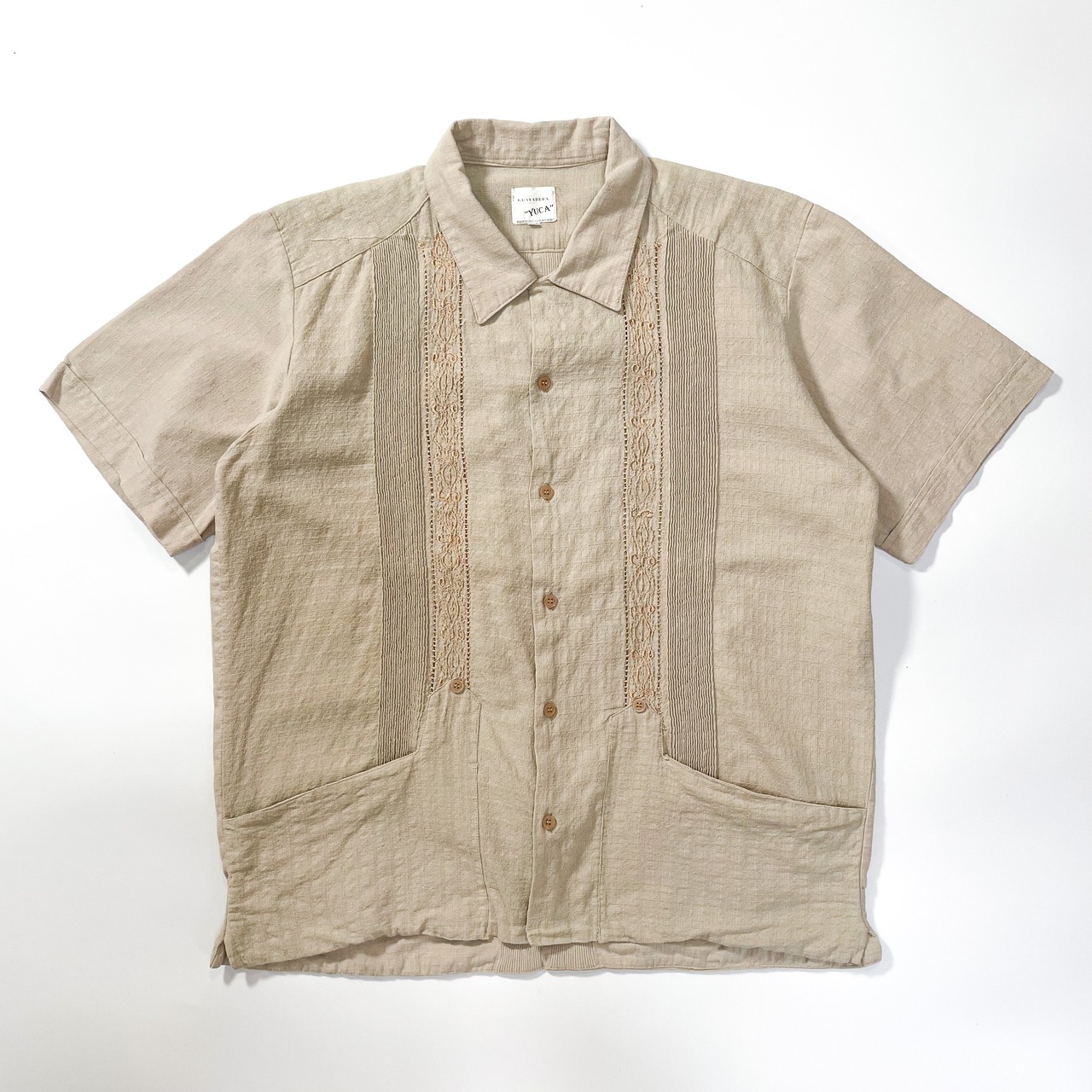1980s " Guayabera Yuca " cotton linen open collar mexican shirts . made in mexico . size 42 .
