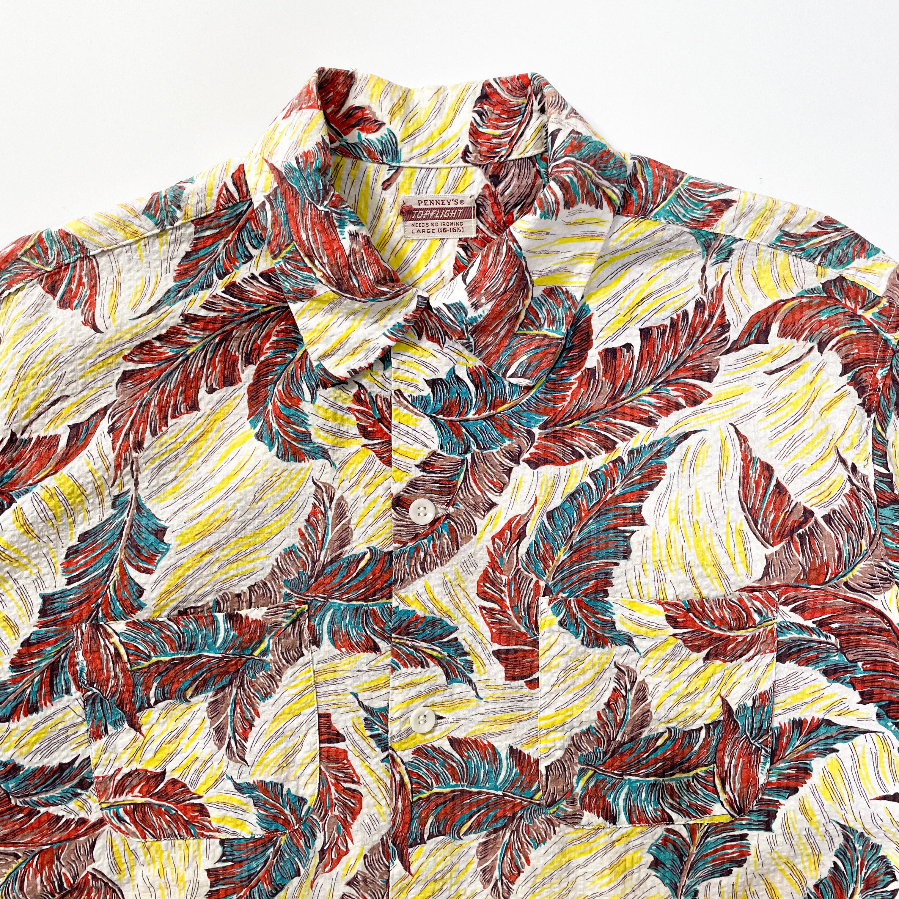 1950s " Penny's / Topflight " seersucker Hawaii open collar shirts . size large .