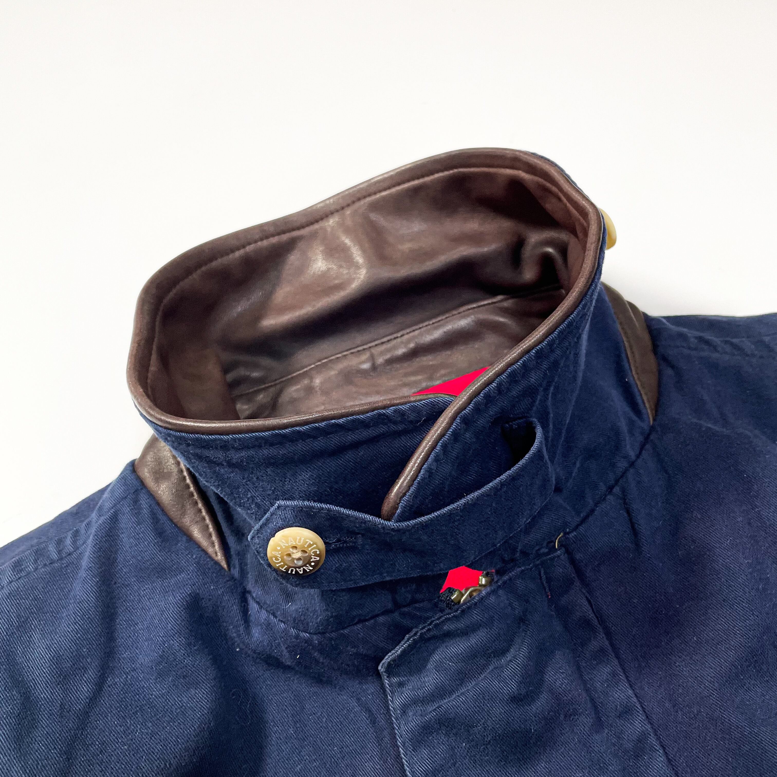 良い褪色しそうなネイビーのツイルに、もちもちな質の良いレザー襟。