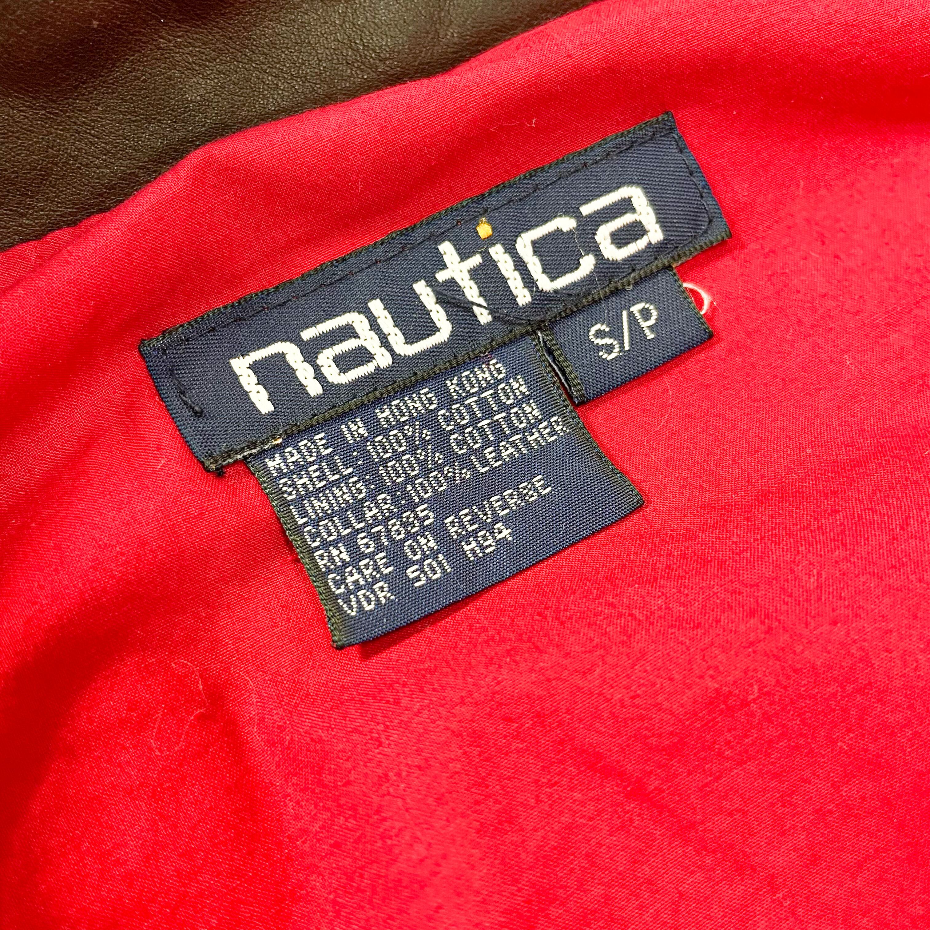 1990s " Nautica " navy cotton A-2 style jacket . size small (ML)