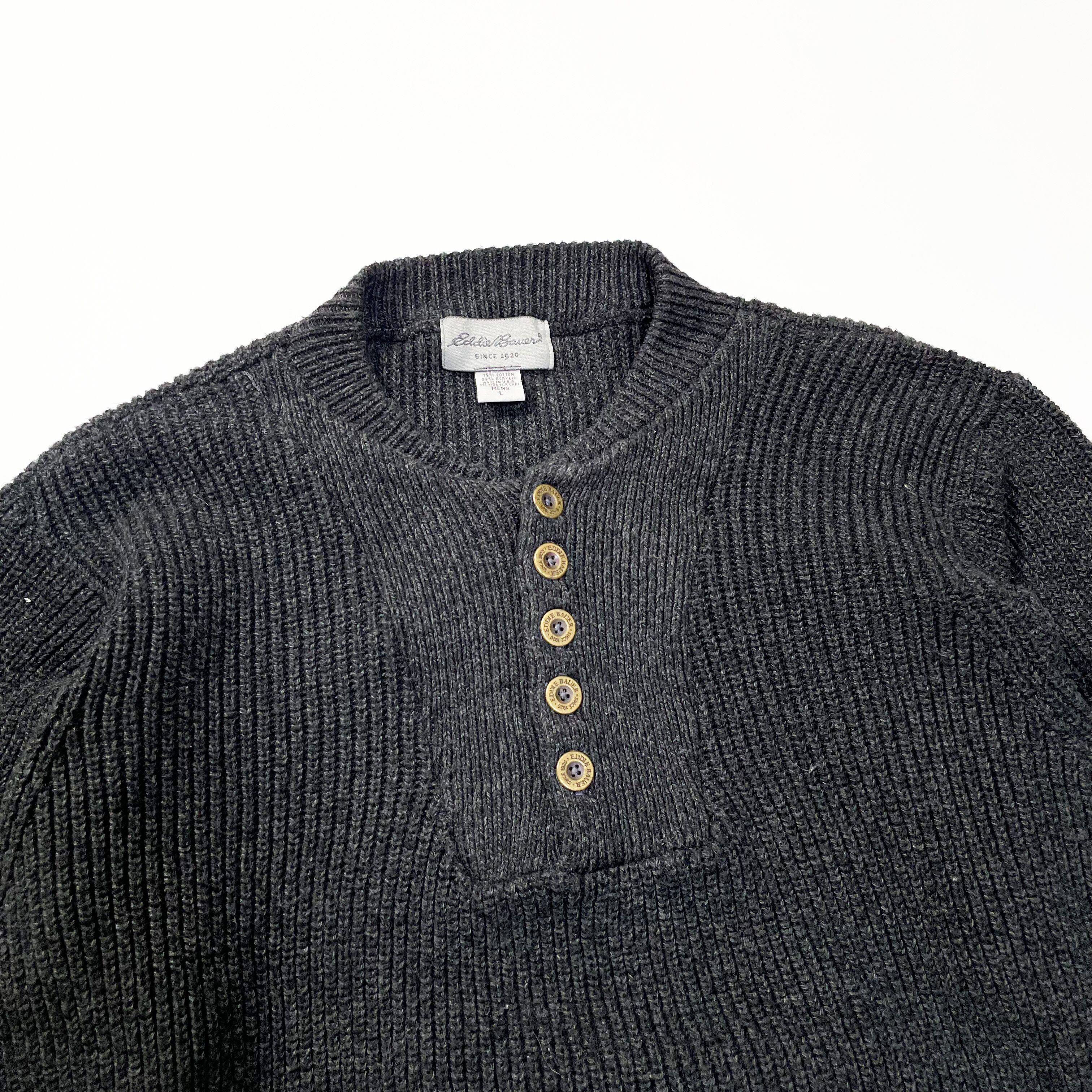 1990s " Eddie bauer " cotton acrylic military style knit . made in usa . size large .