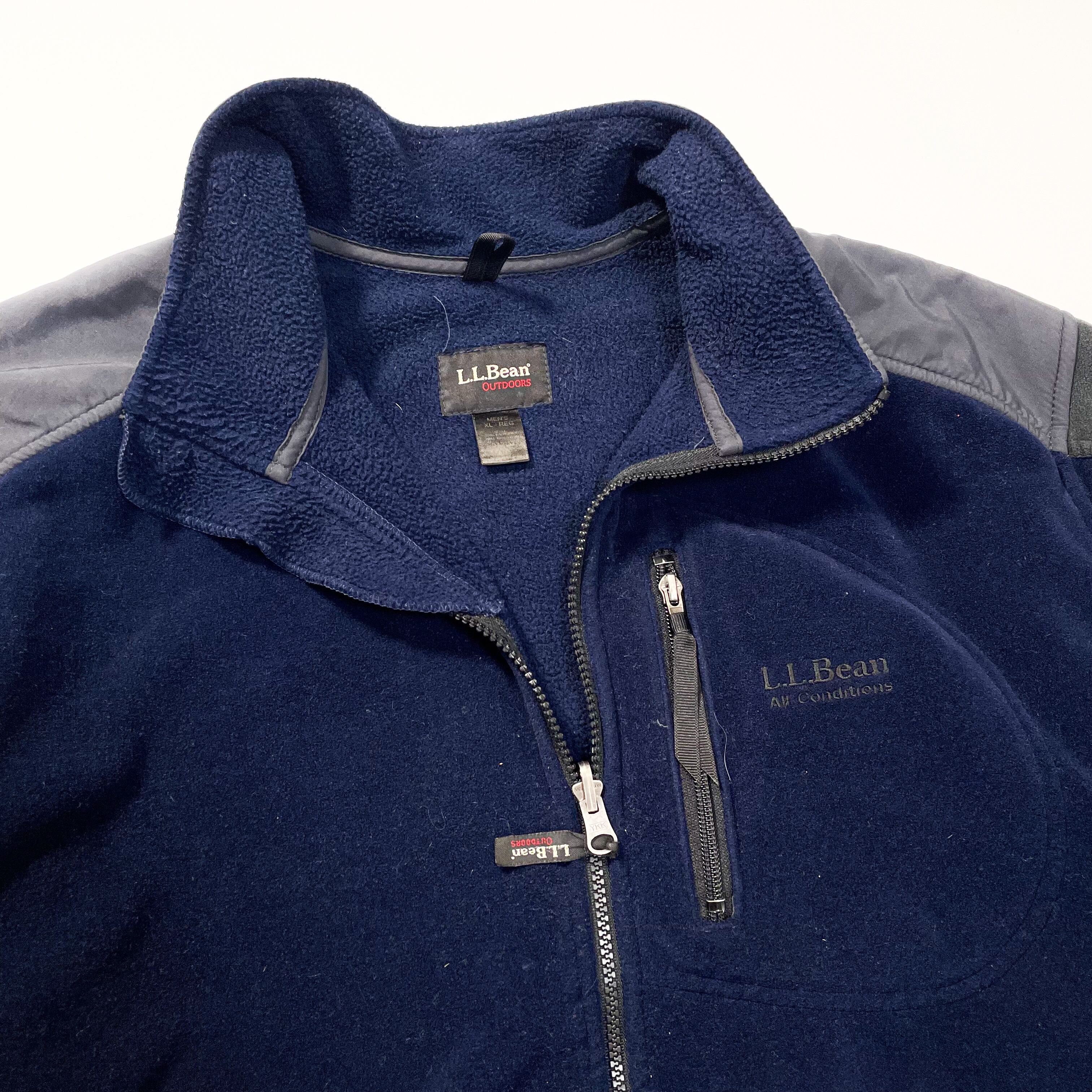 1990s " L.L.bean / all conditions " navy zip up fleece jacket . made in usa . size xlarge .