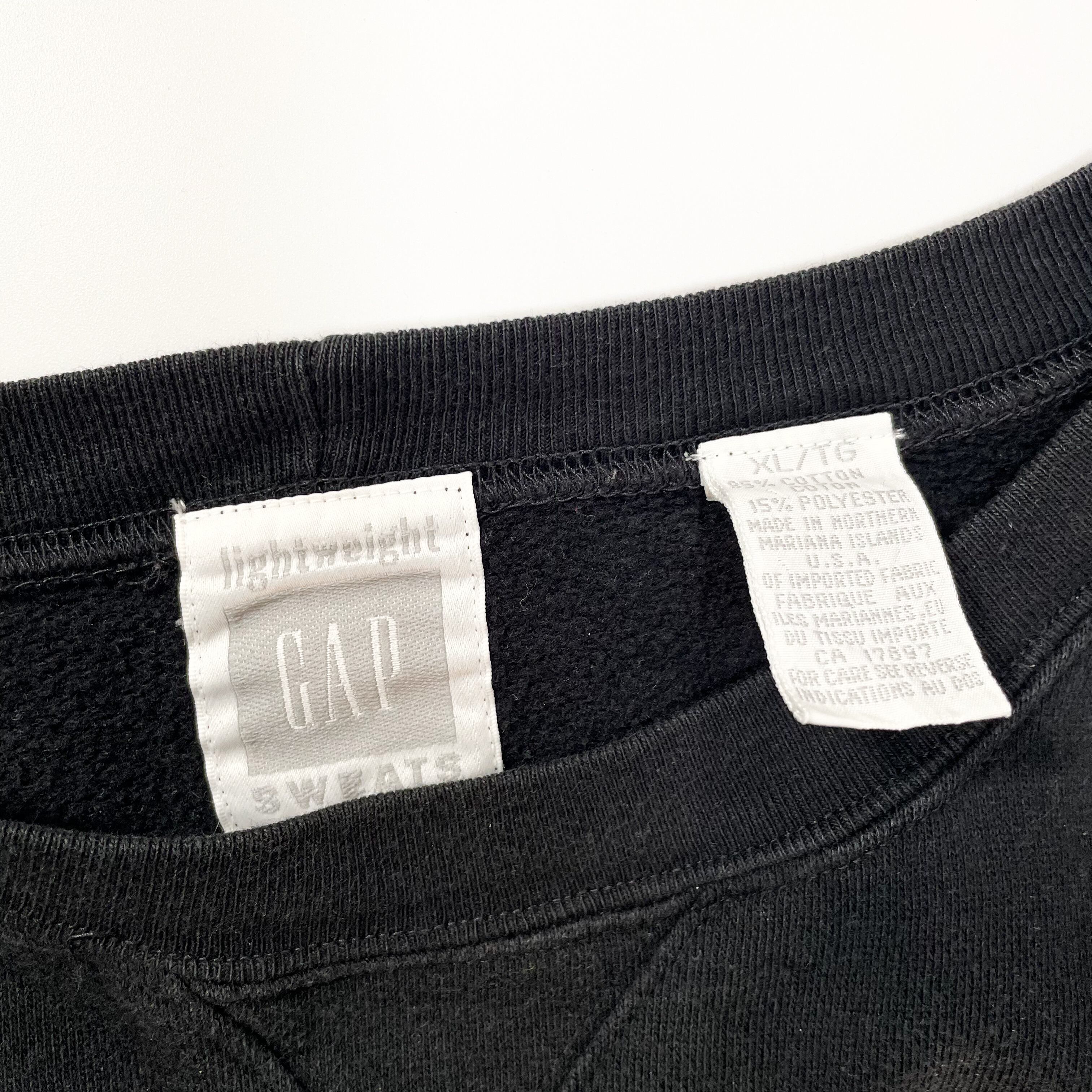 1990s " GAP " black cotton sweat shirts . made in usa . size xlarge .