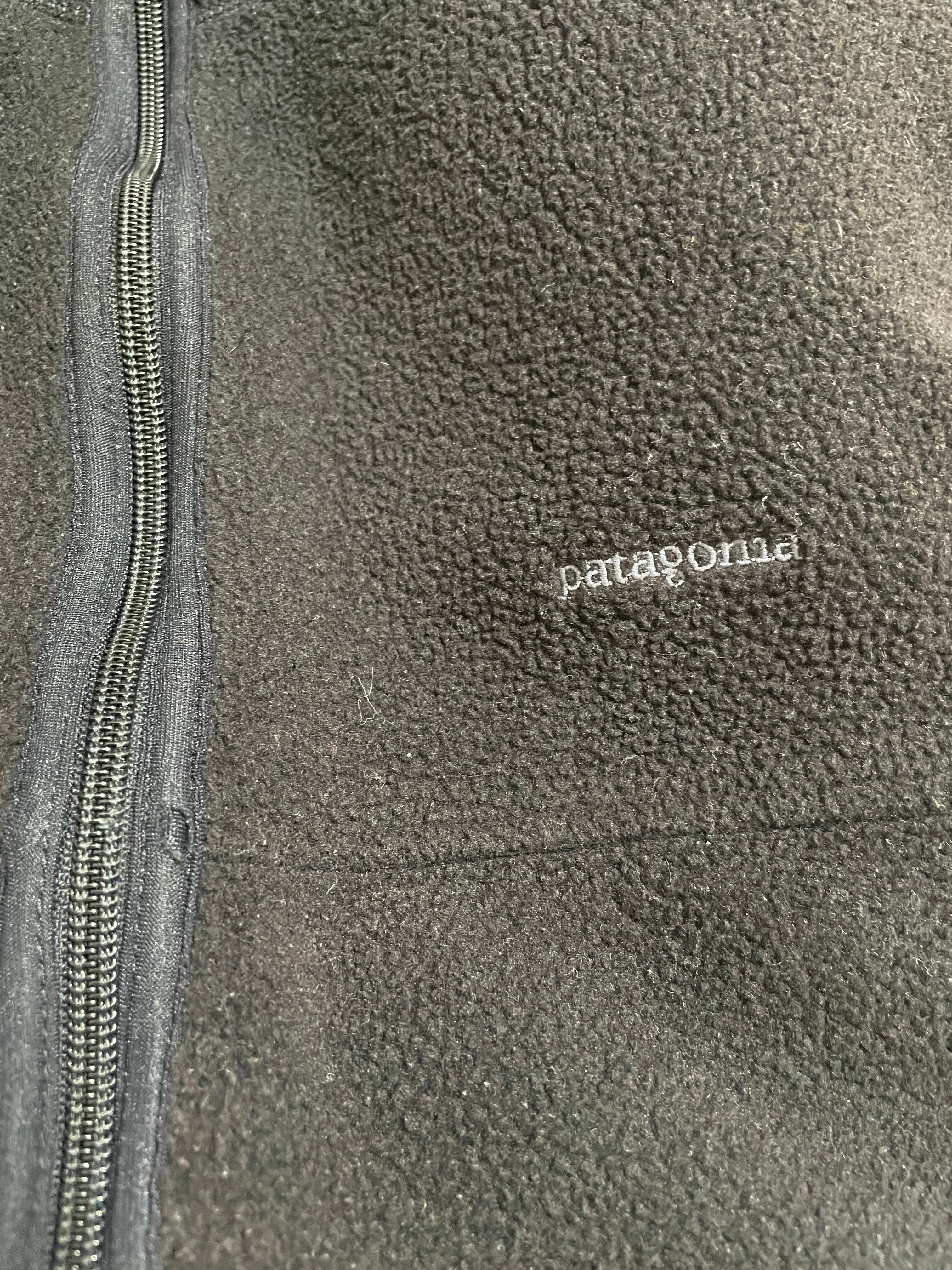 2000s " Patagonia / syhnchilla " black fleece zip up vest . size xxlarge .