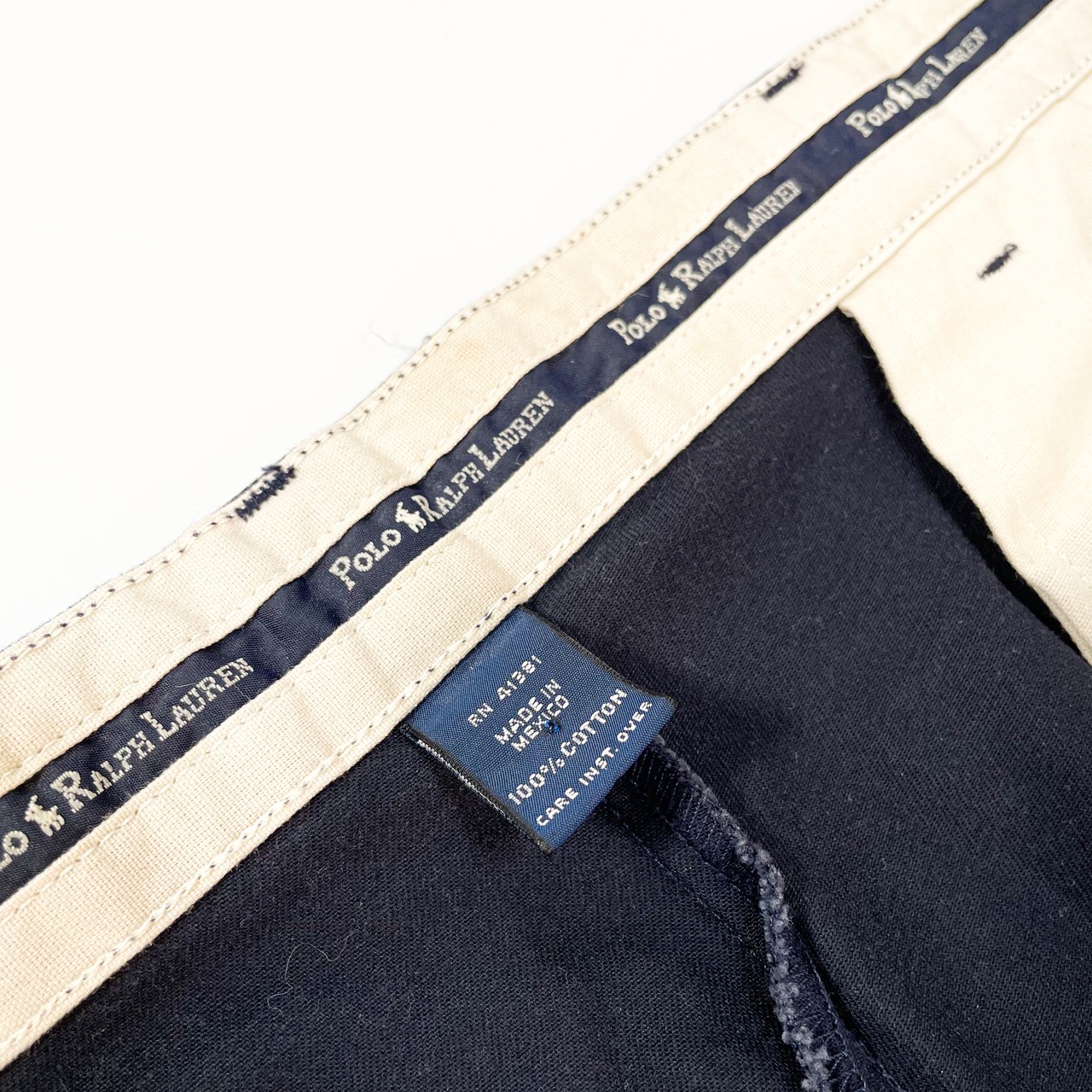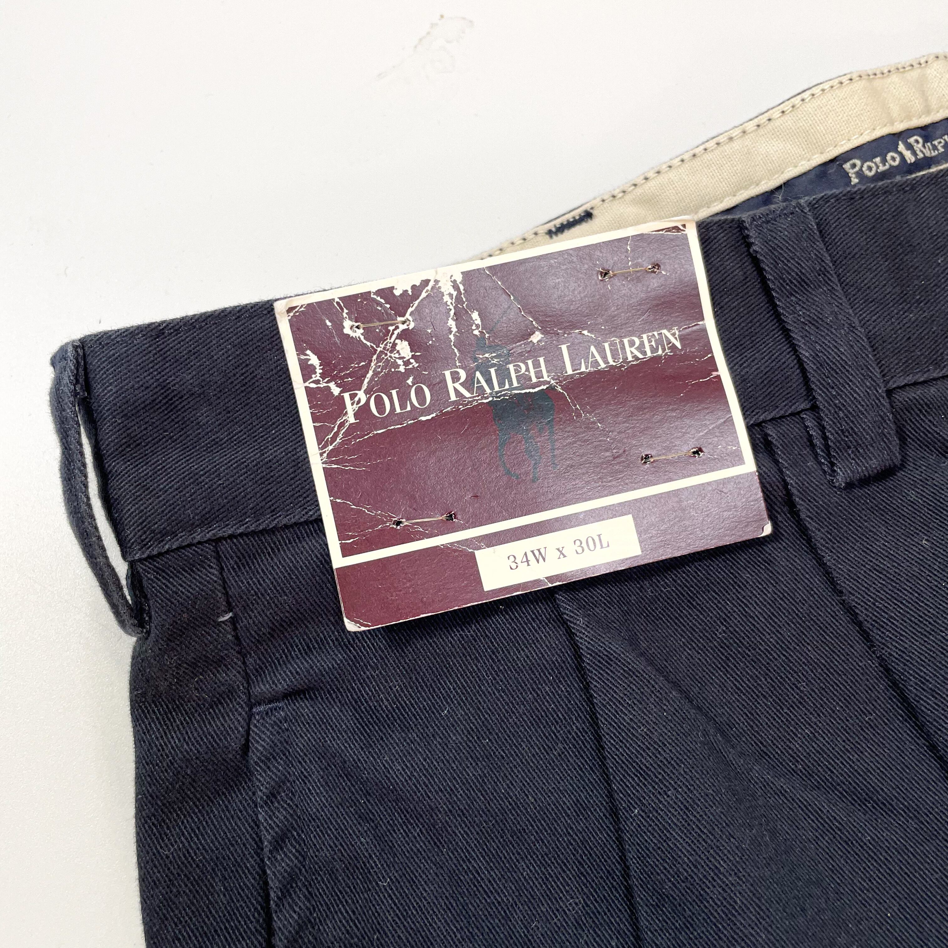 dead stock 1990s " Polo Ralph Lauen / Hammond pants " navy two tuck chino trousers . size 34×30 .