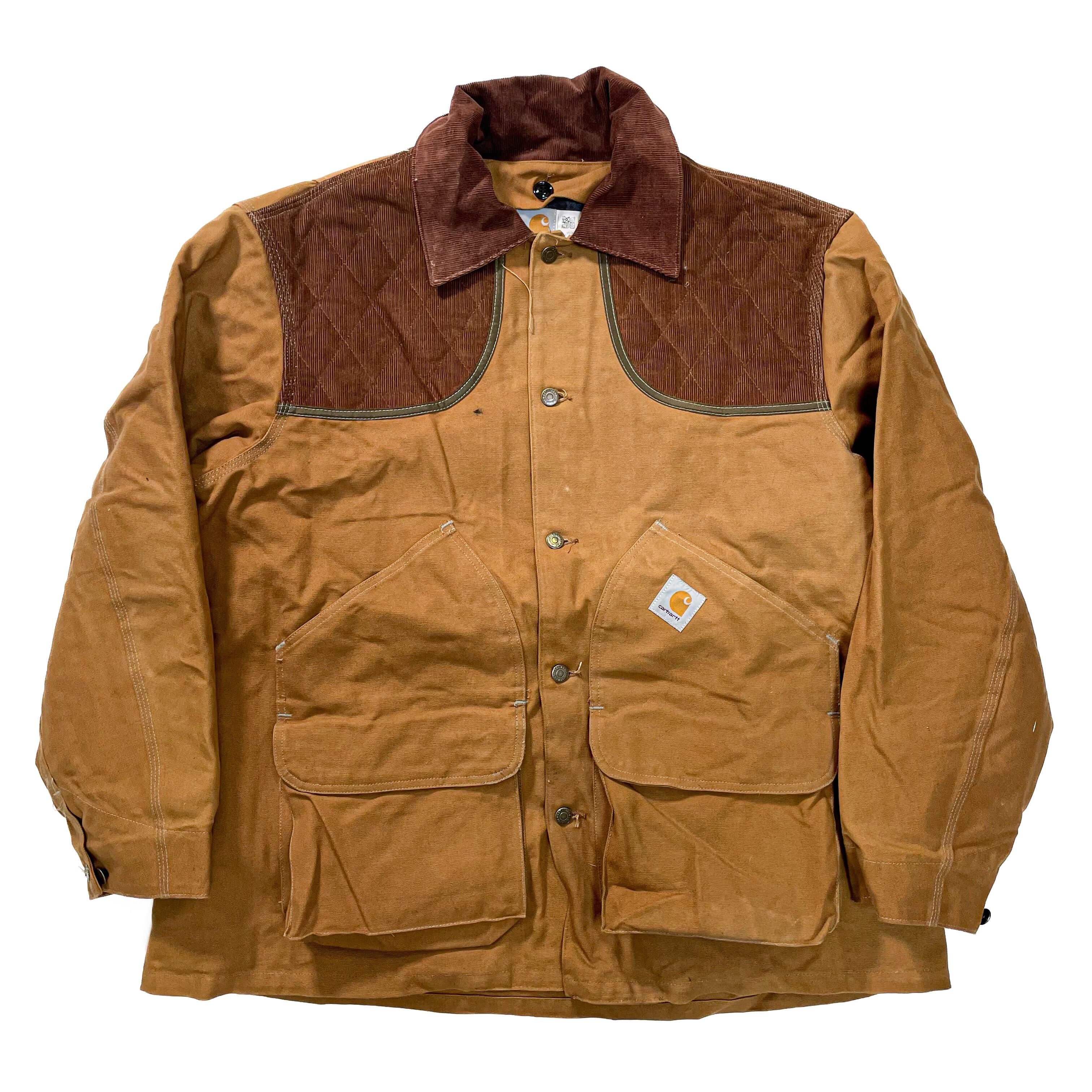 1990s " Carhartt " brown duck shooting jacket with wool lining . made in usa . size xxxlarge .