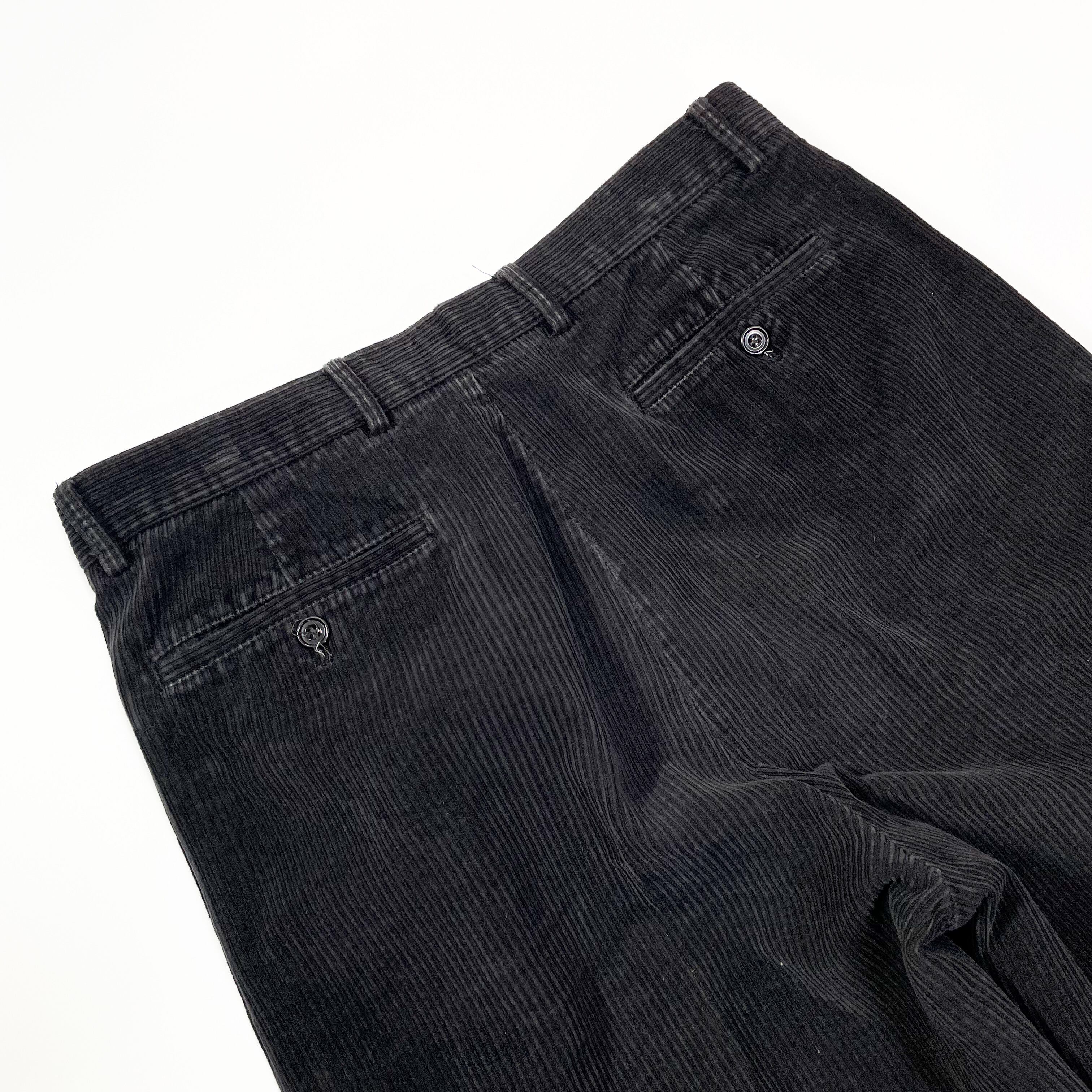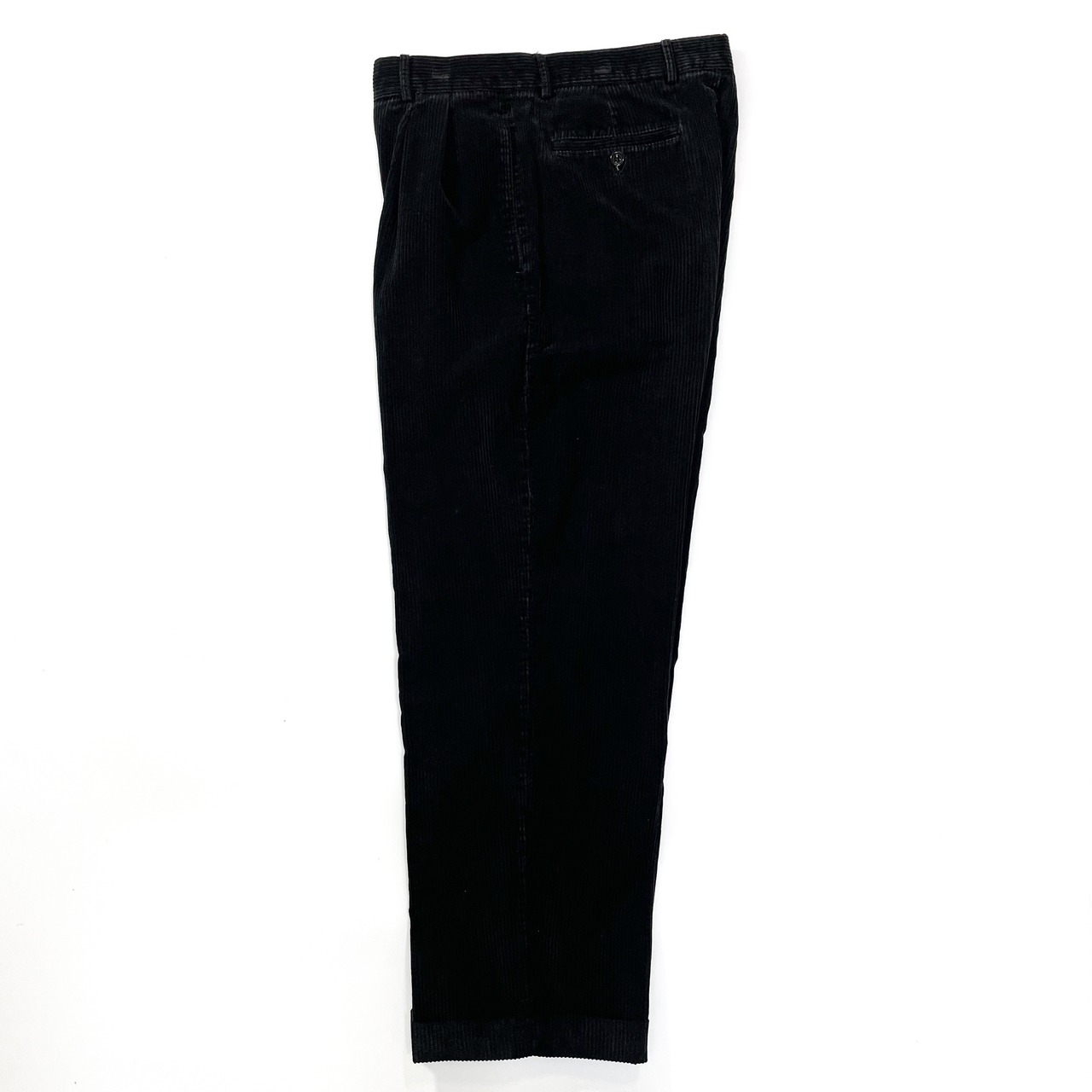 1990s " Structure " black cotton wide corduroy two tuck slacks . size 33×29 .