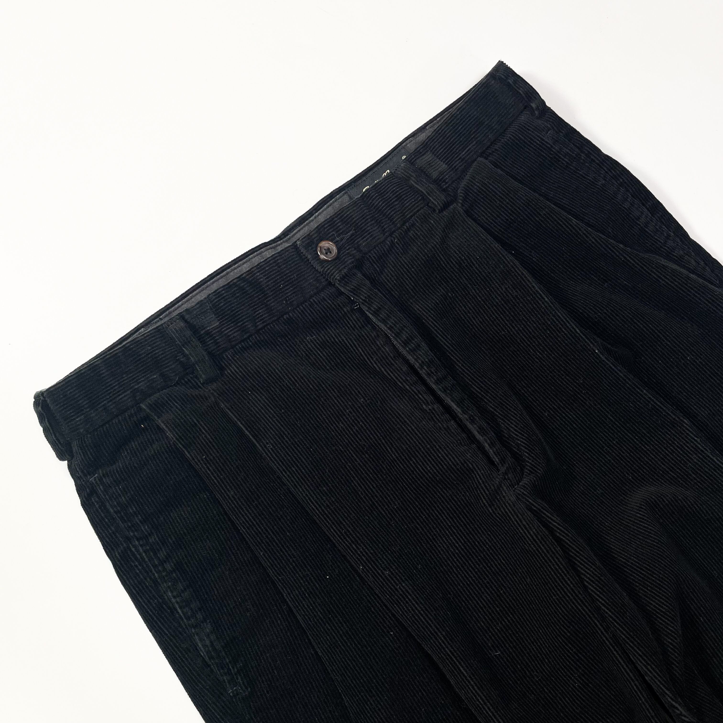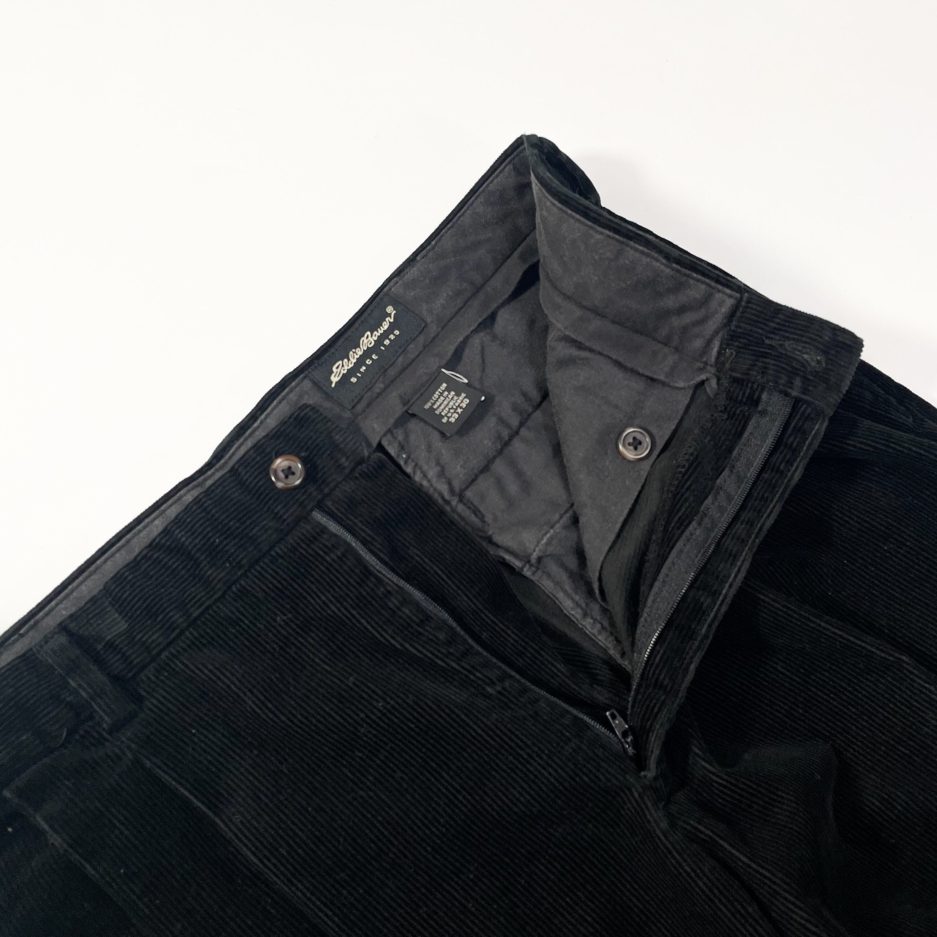 1990s " Eddie Bauer " black cotton corduroy two tuck slacks . size 33×30 .