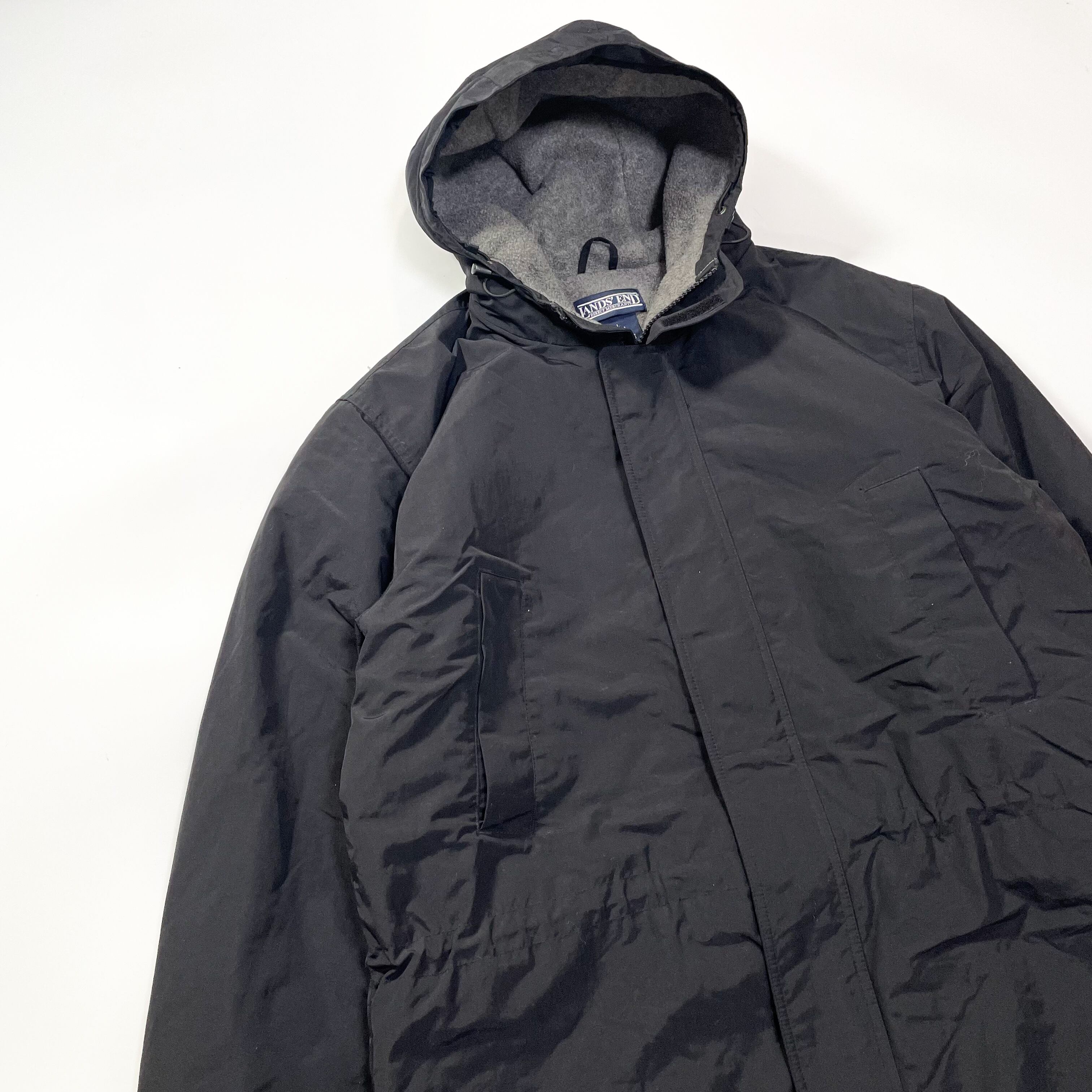1990s " Lands end " black nylon hooded coat with fleece liner .size large .