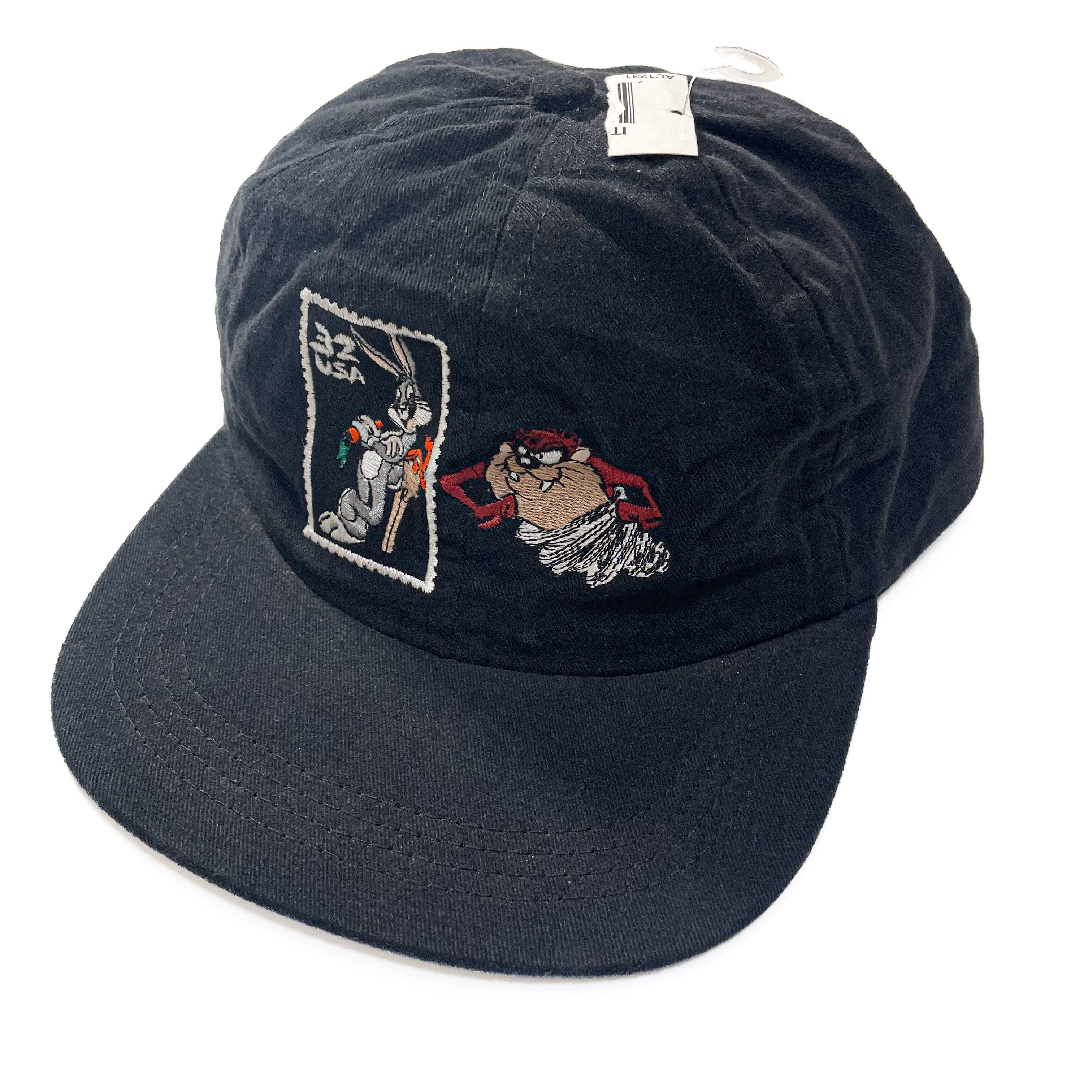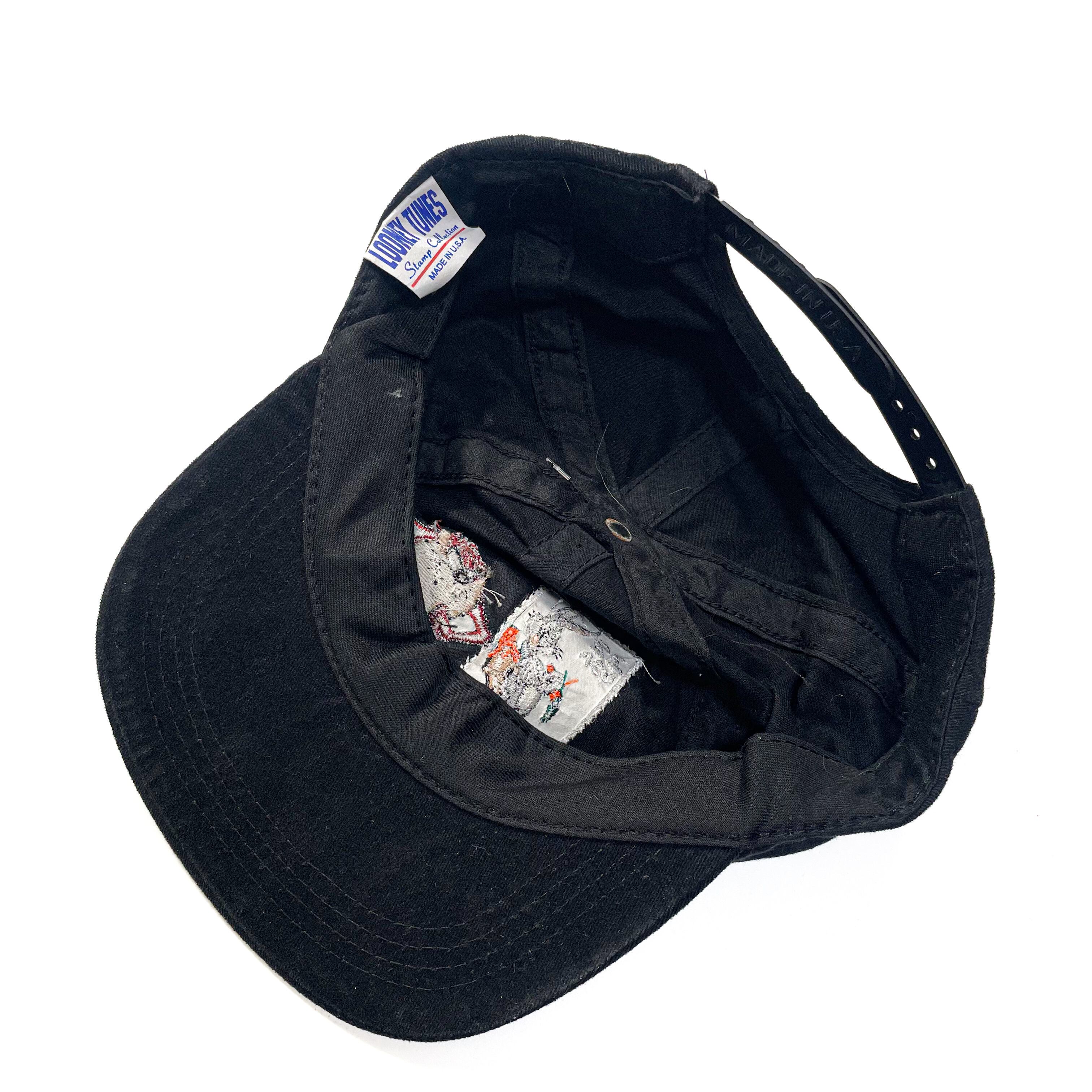 dead stock 1990s " Looney tunes " black cotton cap . made in usa . size free .
