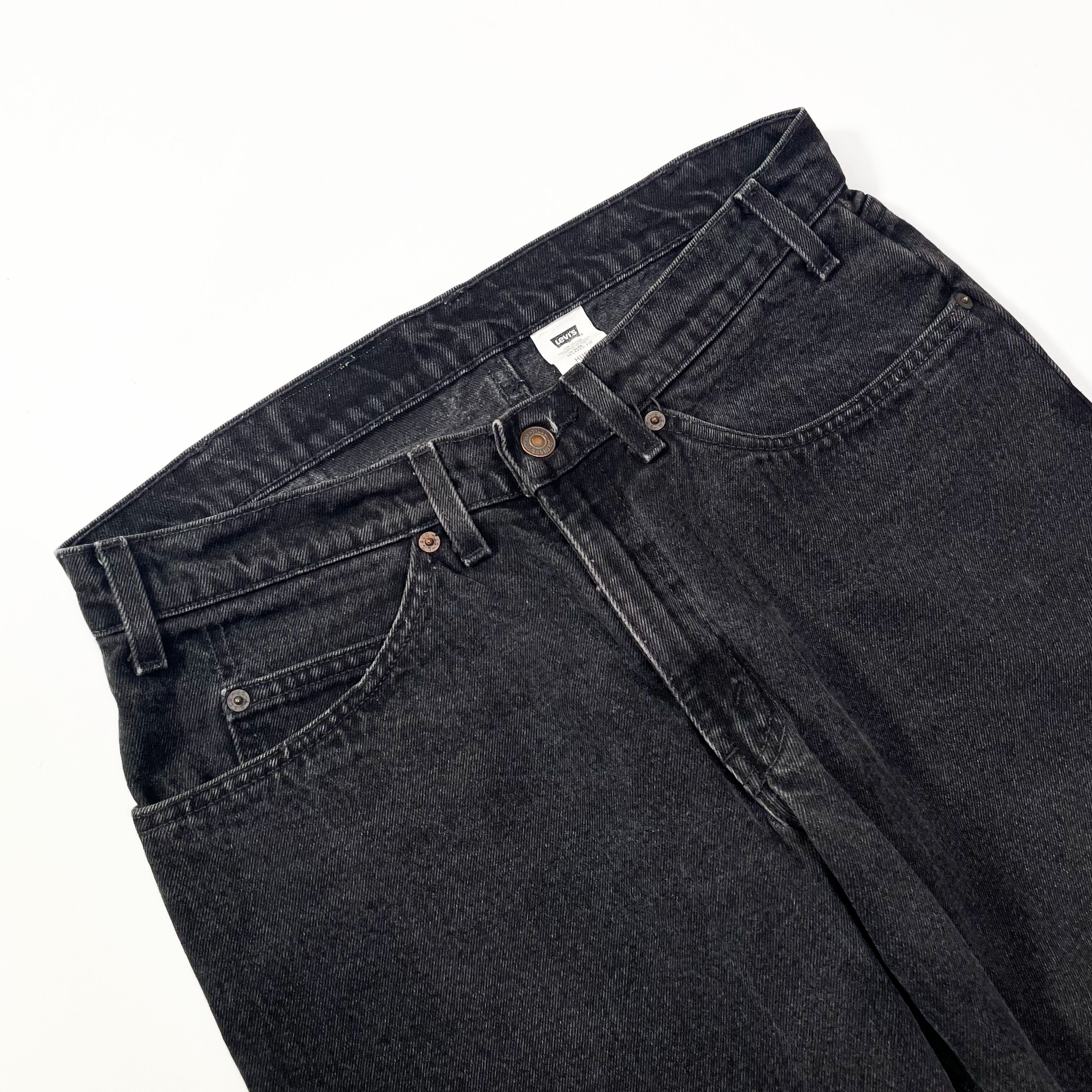 1990s " Levi's 550 / HUSKY " relaxed black denim pants . size 34×28 .
