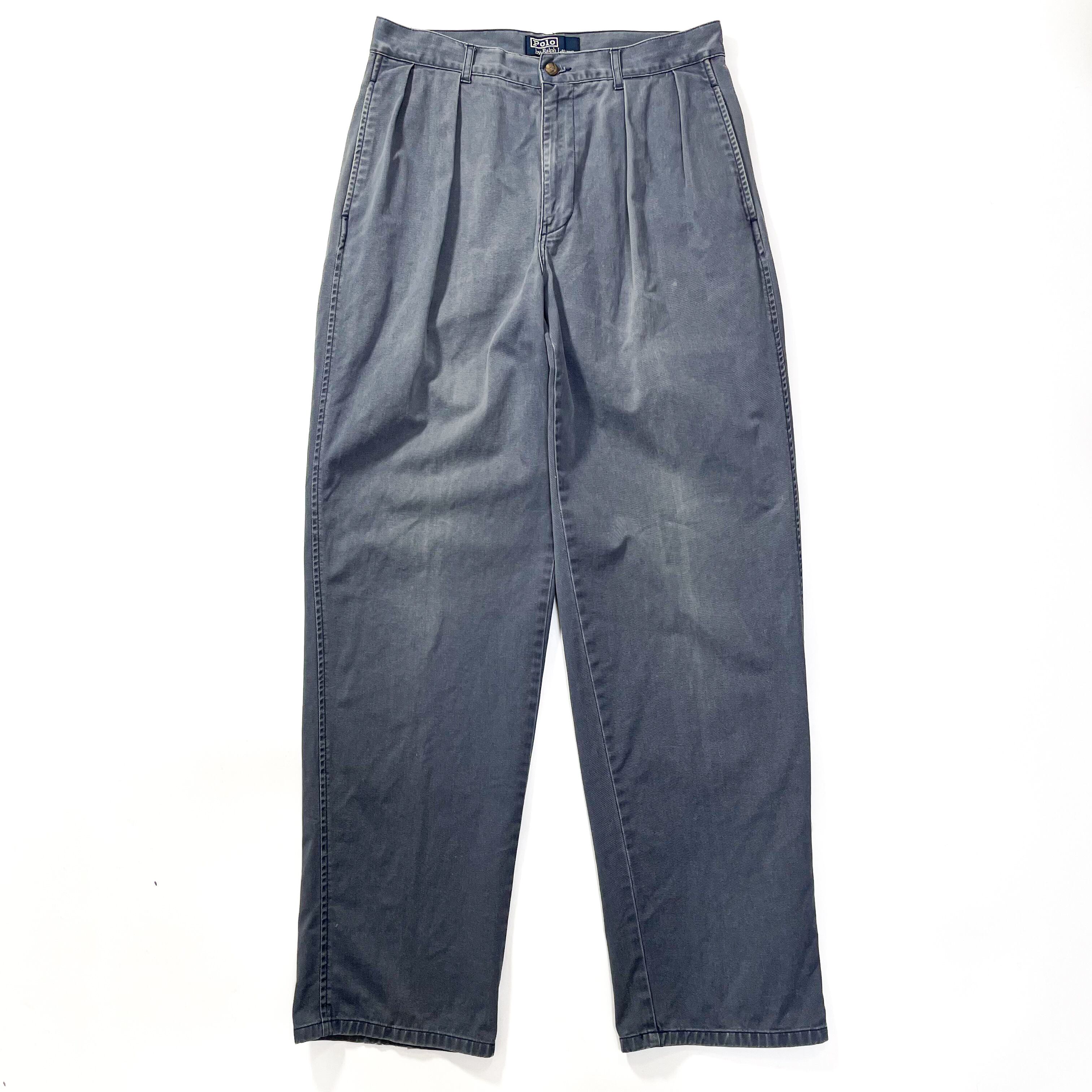 1990s " Polo Ralph Lauen " faded navy two tuck chino trousers . size 32×32 .