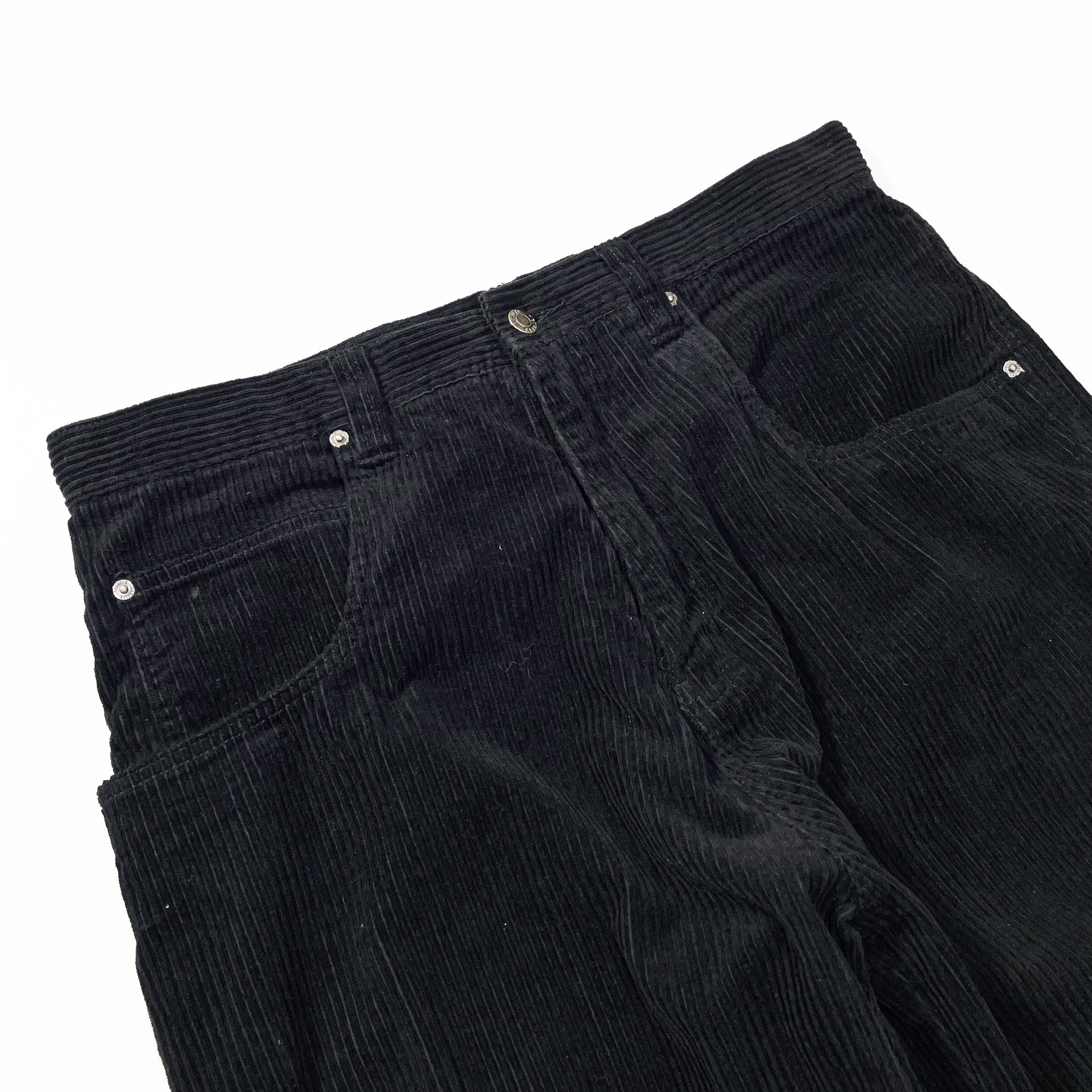 1990s " Results " black wide corduroy baggy pants . size 36×32 .