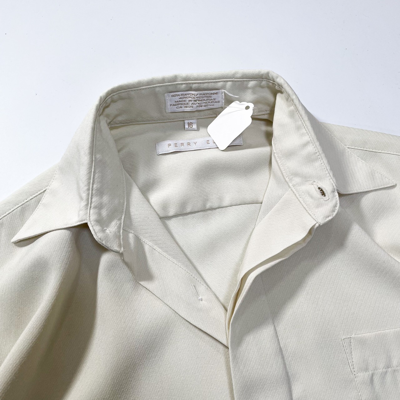 dead stock 1980s " Perry ellis " ivory rayon shirts . size 16 .