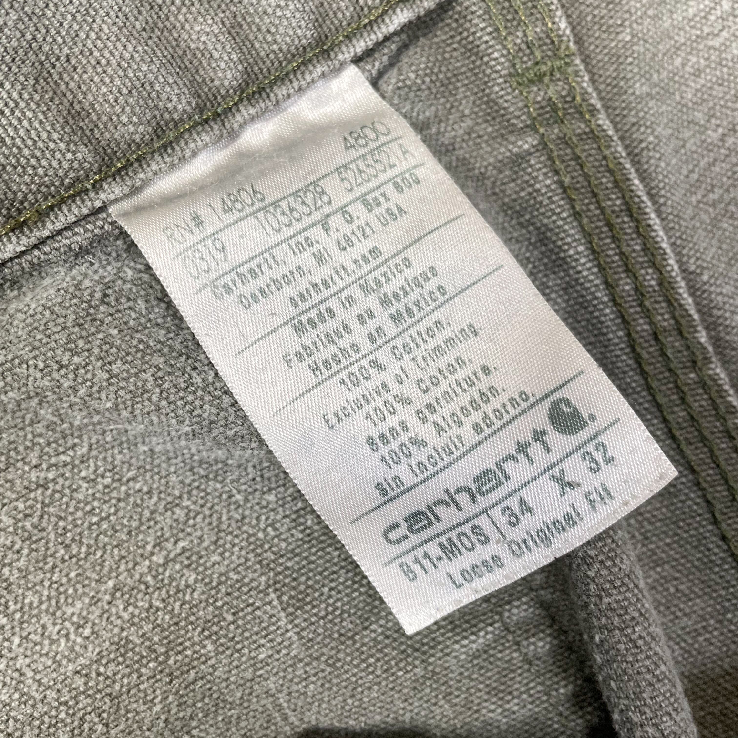 " Carhartt " faded olive duck cloth painter pants . size 34×30 .