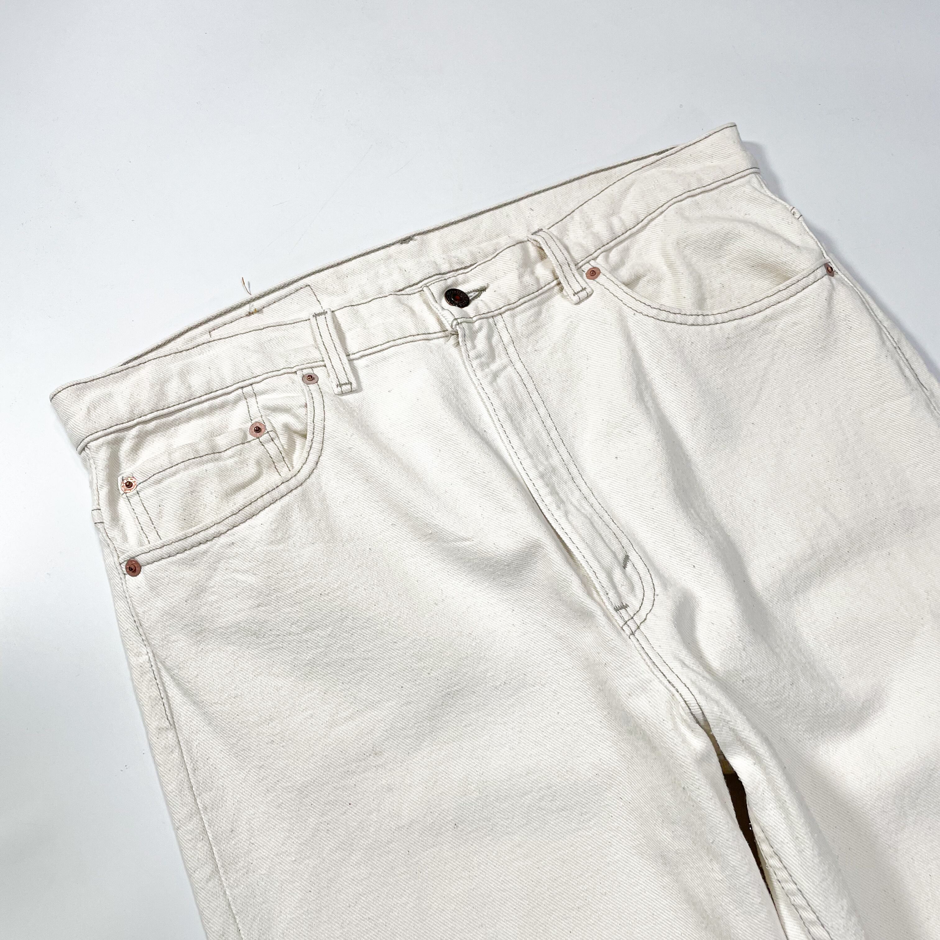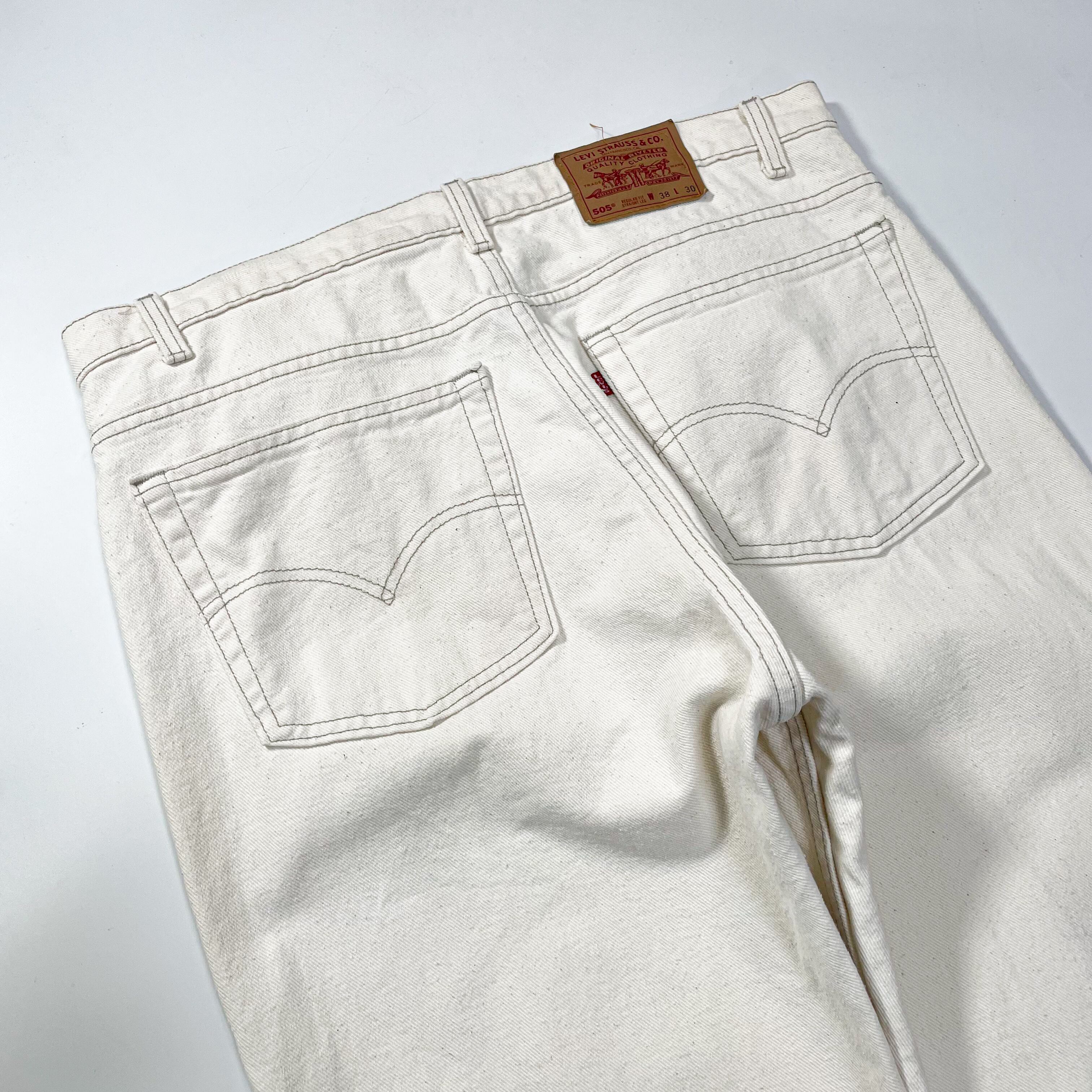 1990s " Levi's 505 " ivory denim straight pants . made in usa . size 38×30 .