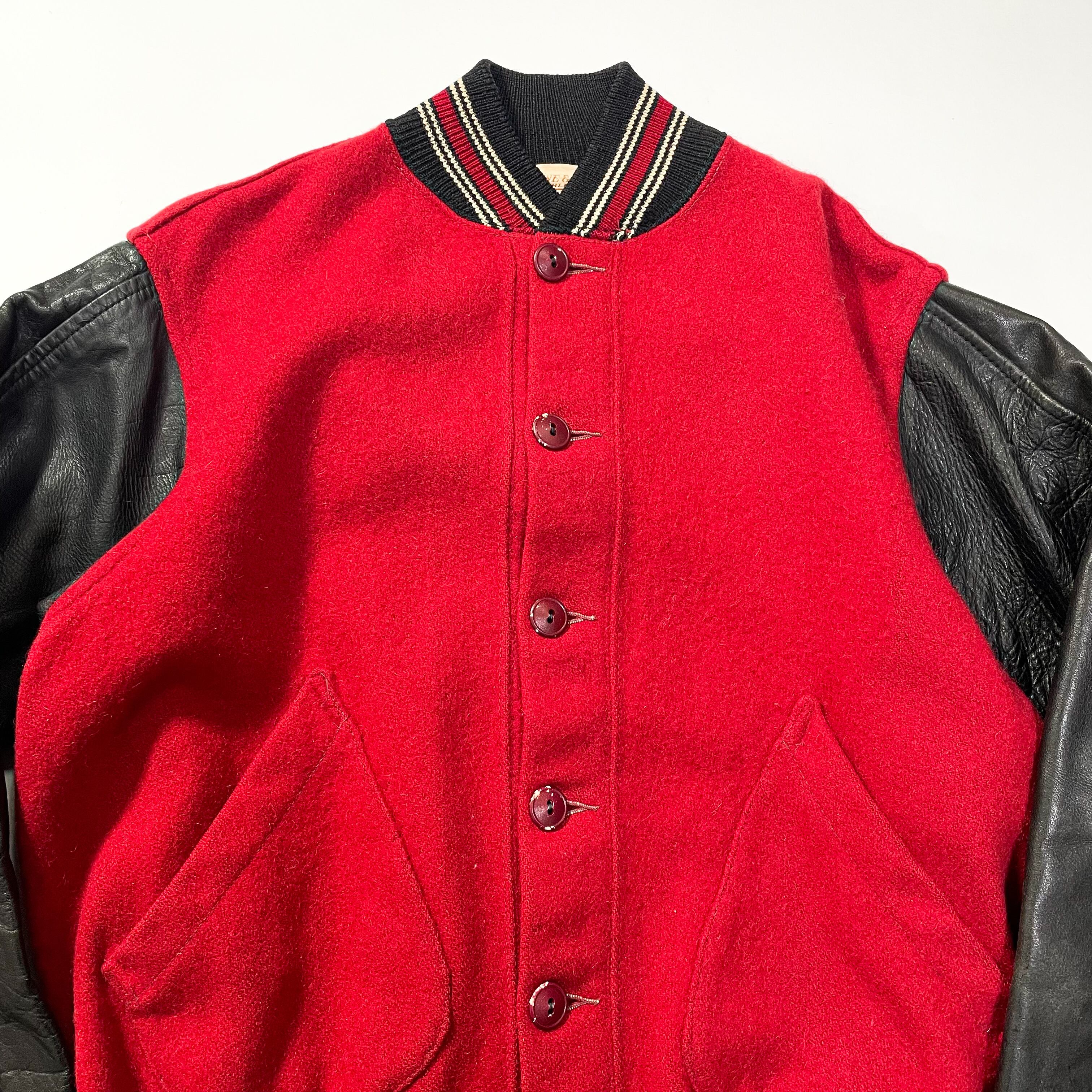 1940s " Lowe&Campbell " wool×leather button award jacket . size 44 .