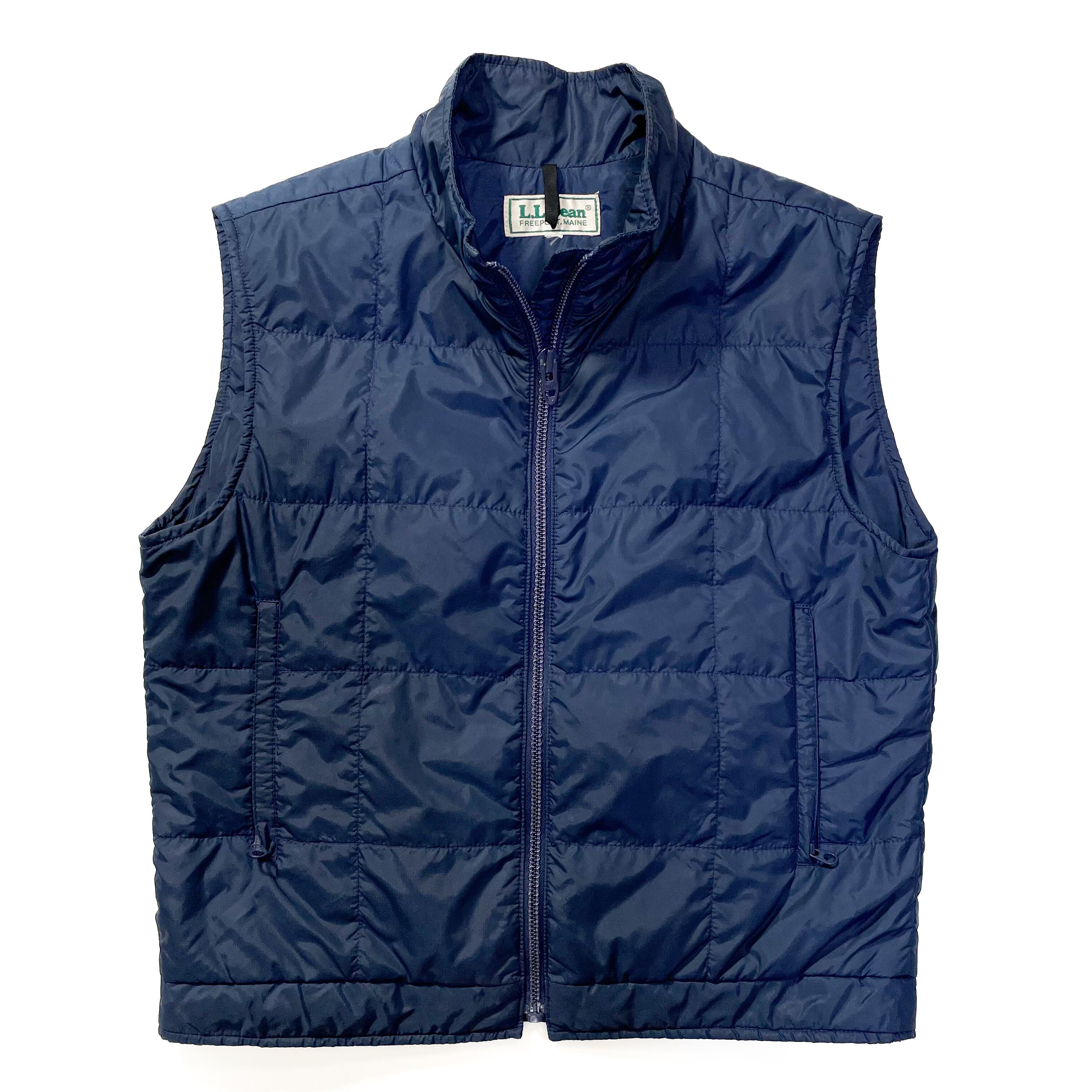 1980s " L.L.Bean " pudding zip up nylon vest . made in usa . size large-xlarge .