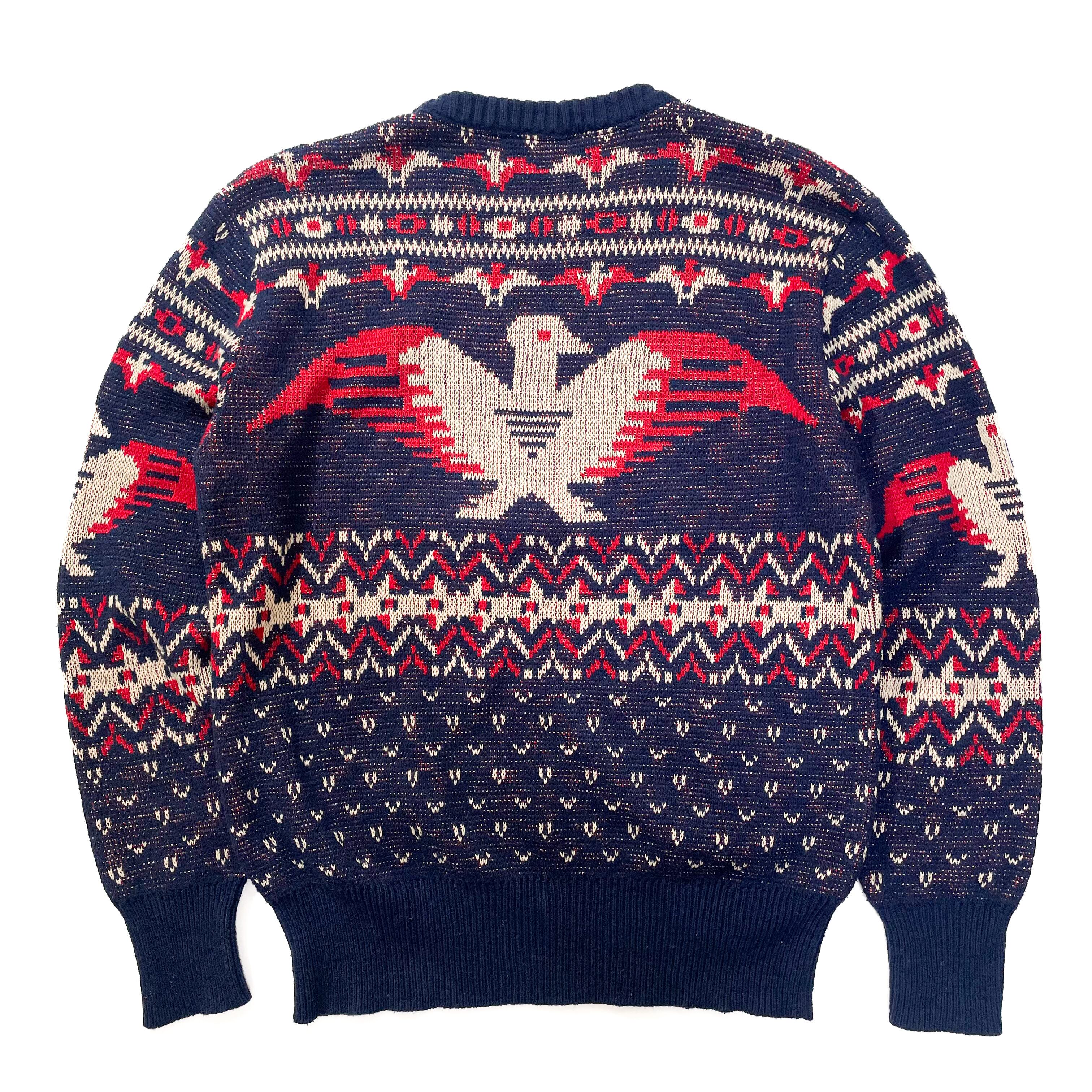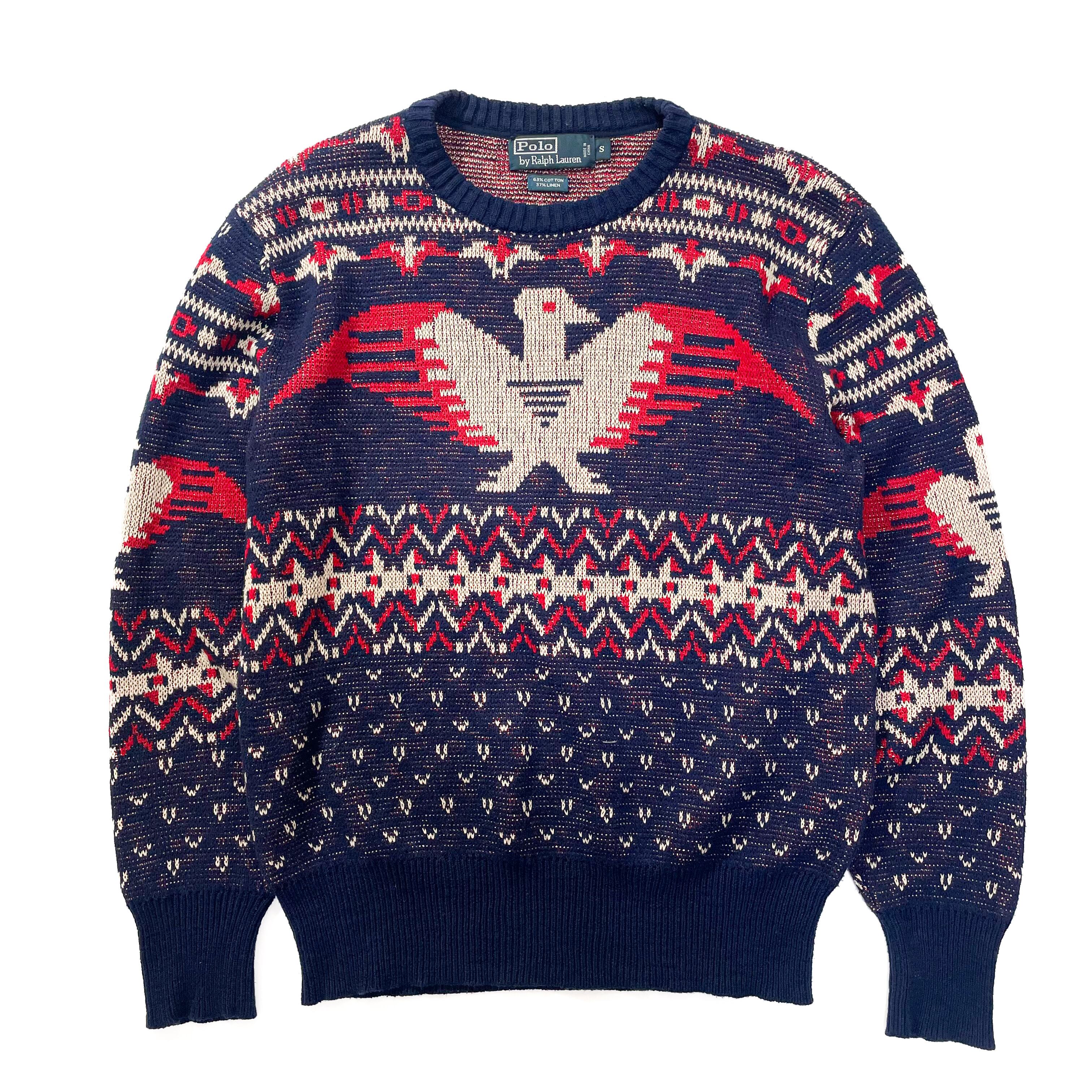 1990s " Polo Ralph Lauen " cotton×linen thunderbird pattern knit . size small .