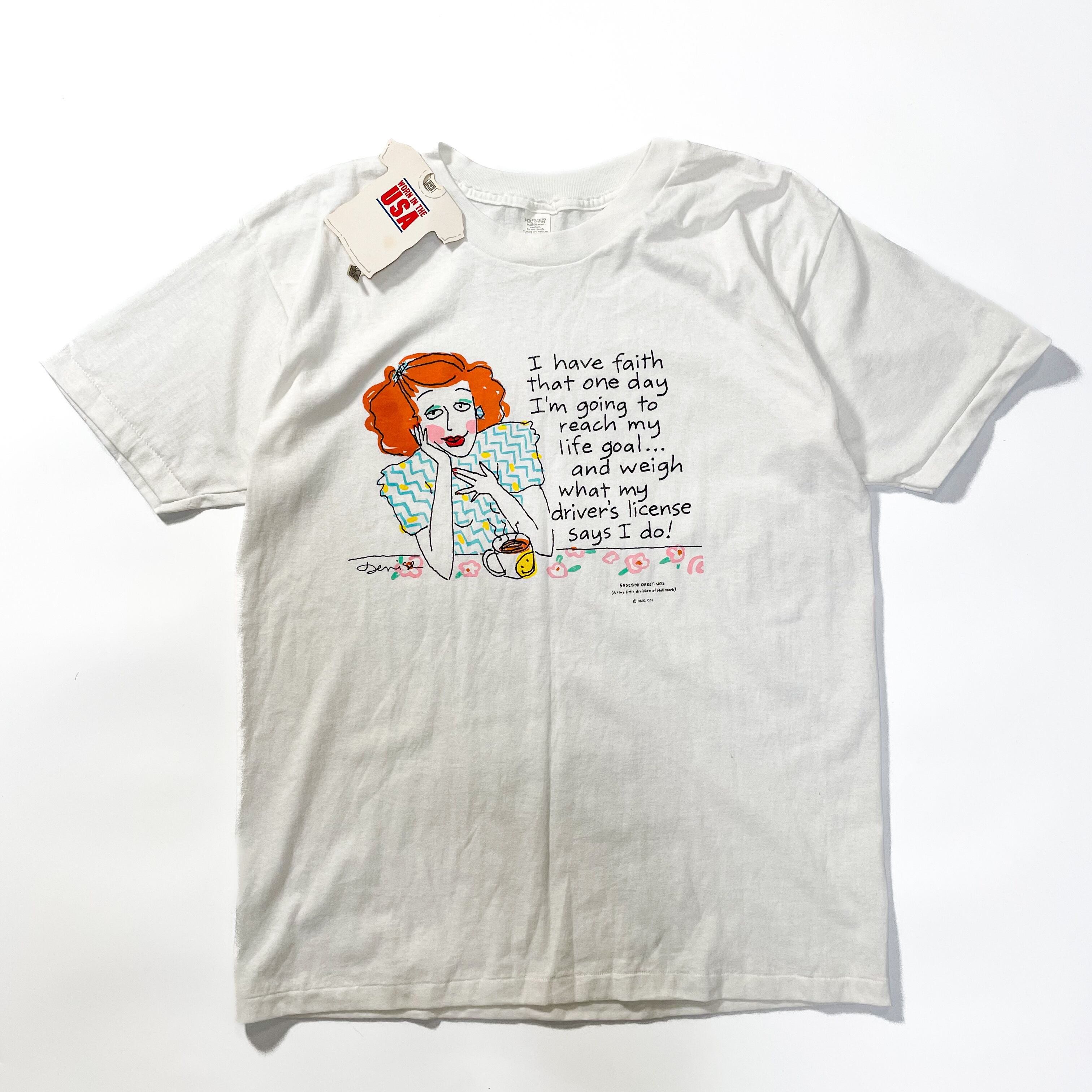 dead stock 1980s " Shoebox greeting " cotton printed t-shirts . made in usa . size xlarge .