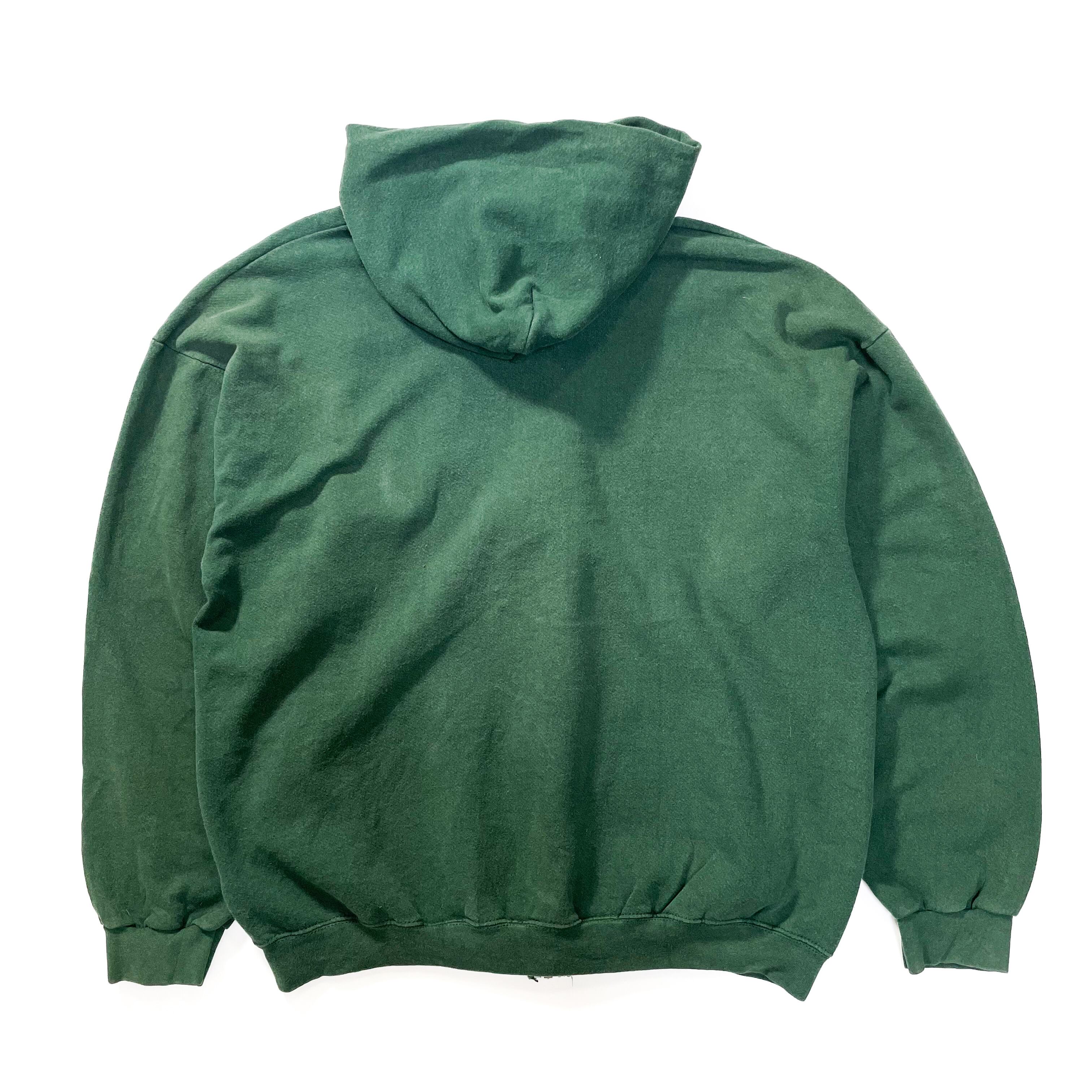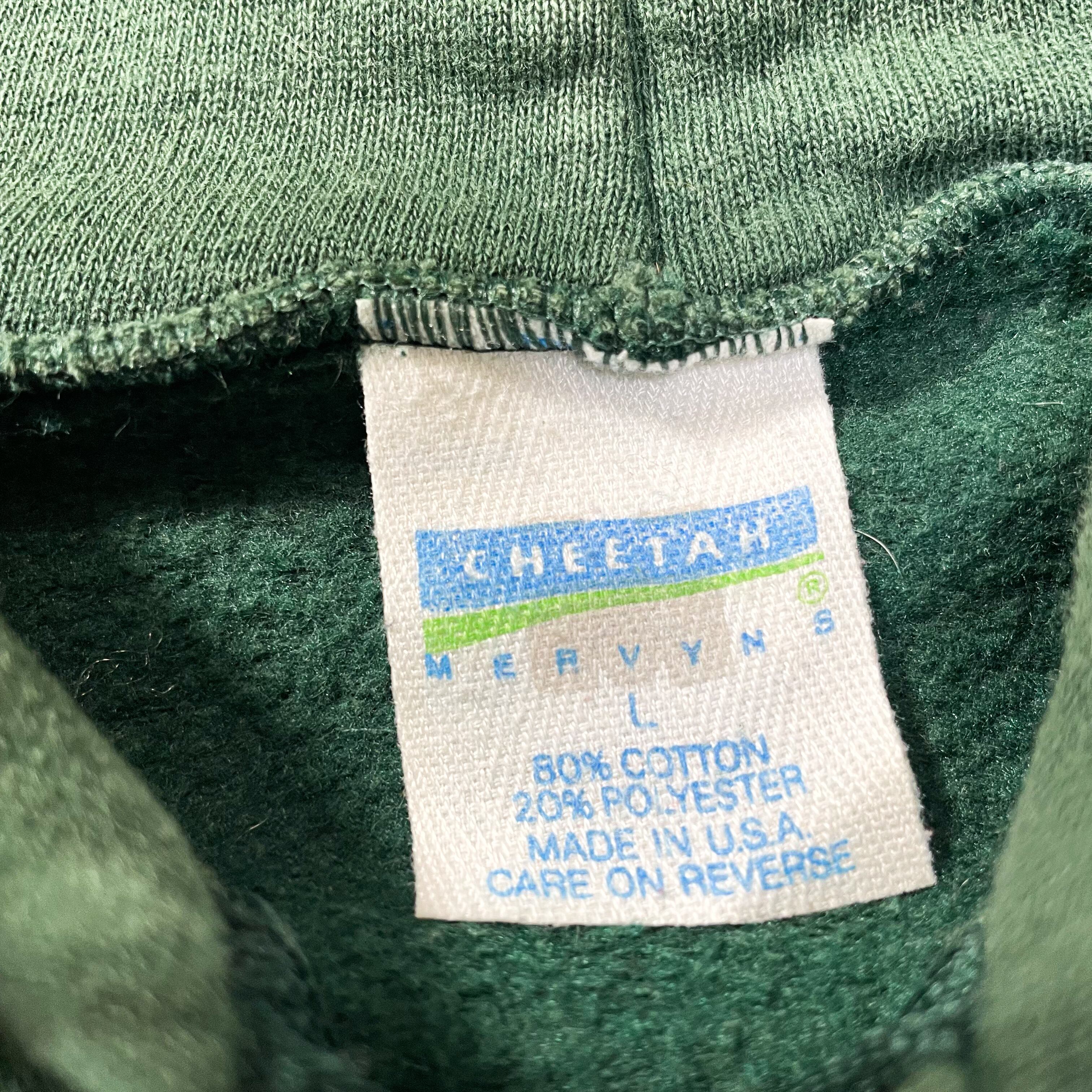 1990s " Cheetah " green sweat zip up parka . made in usa . size large .