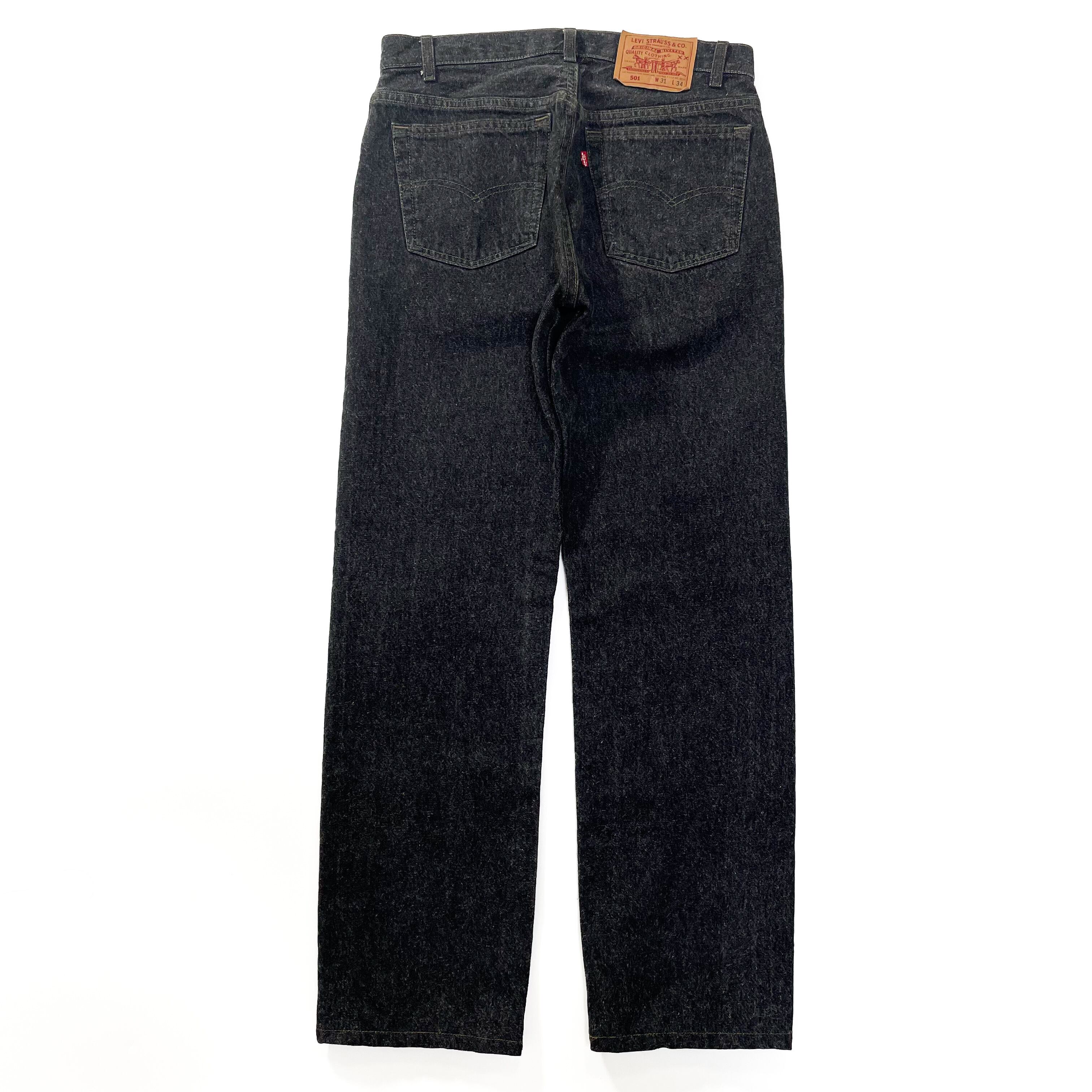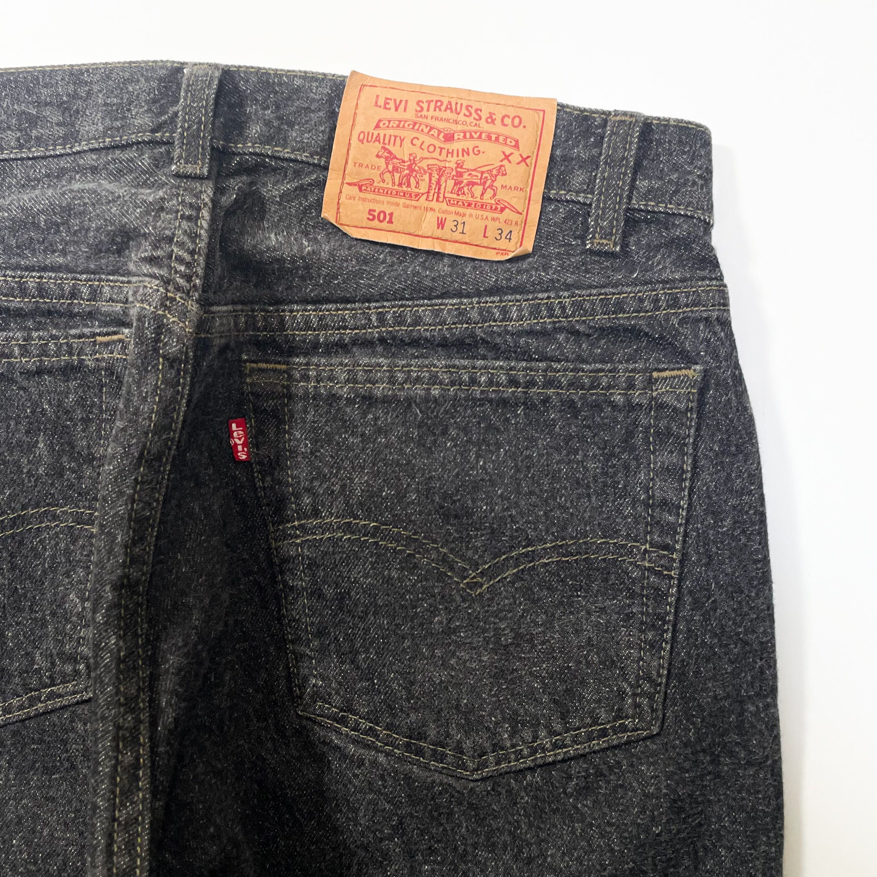 1990s " Levi's 501 " original black denim straight pants . made in usa . size 31×30 .