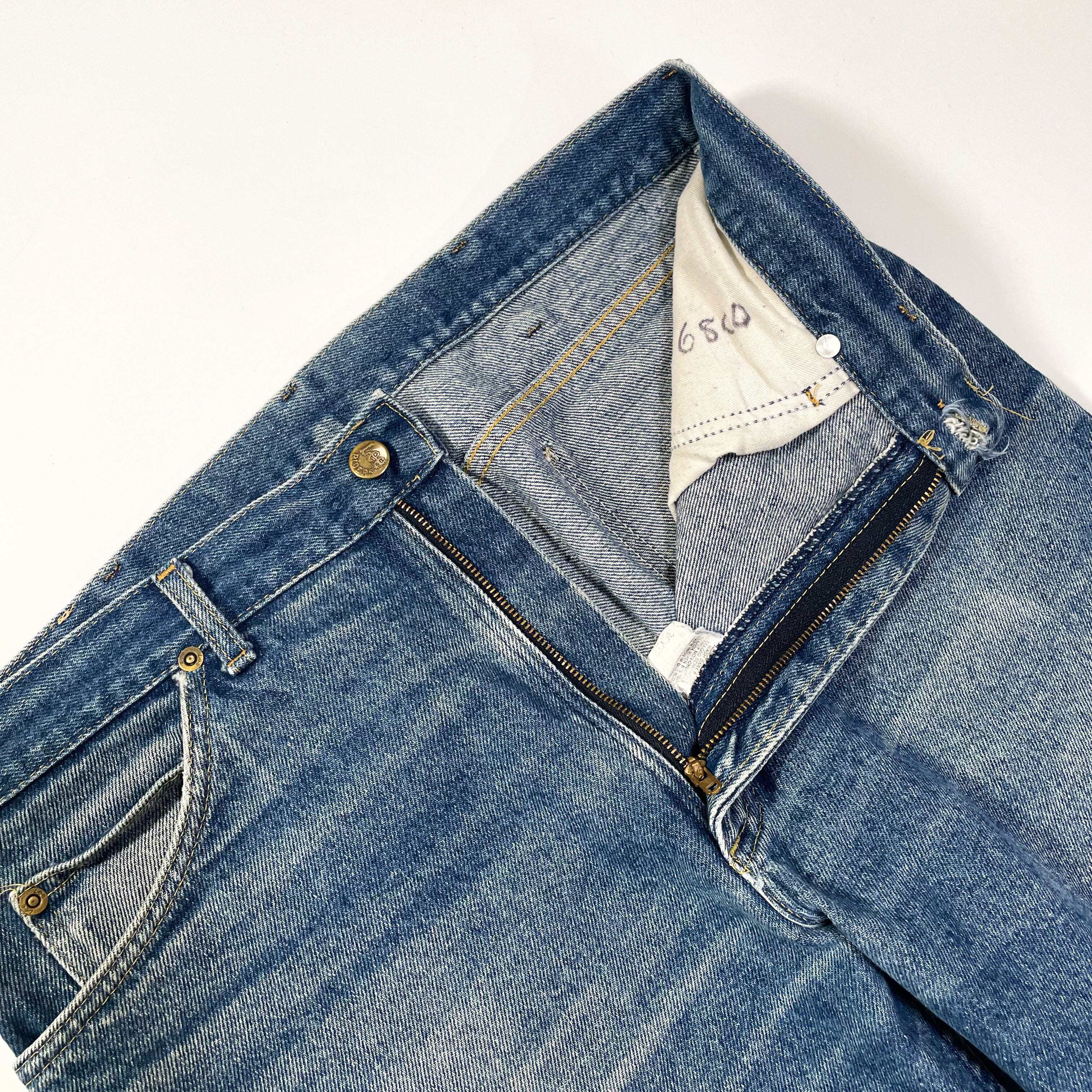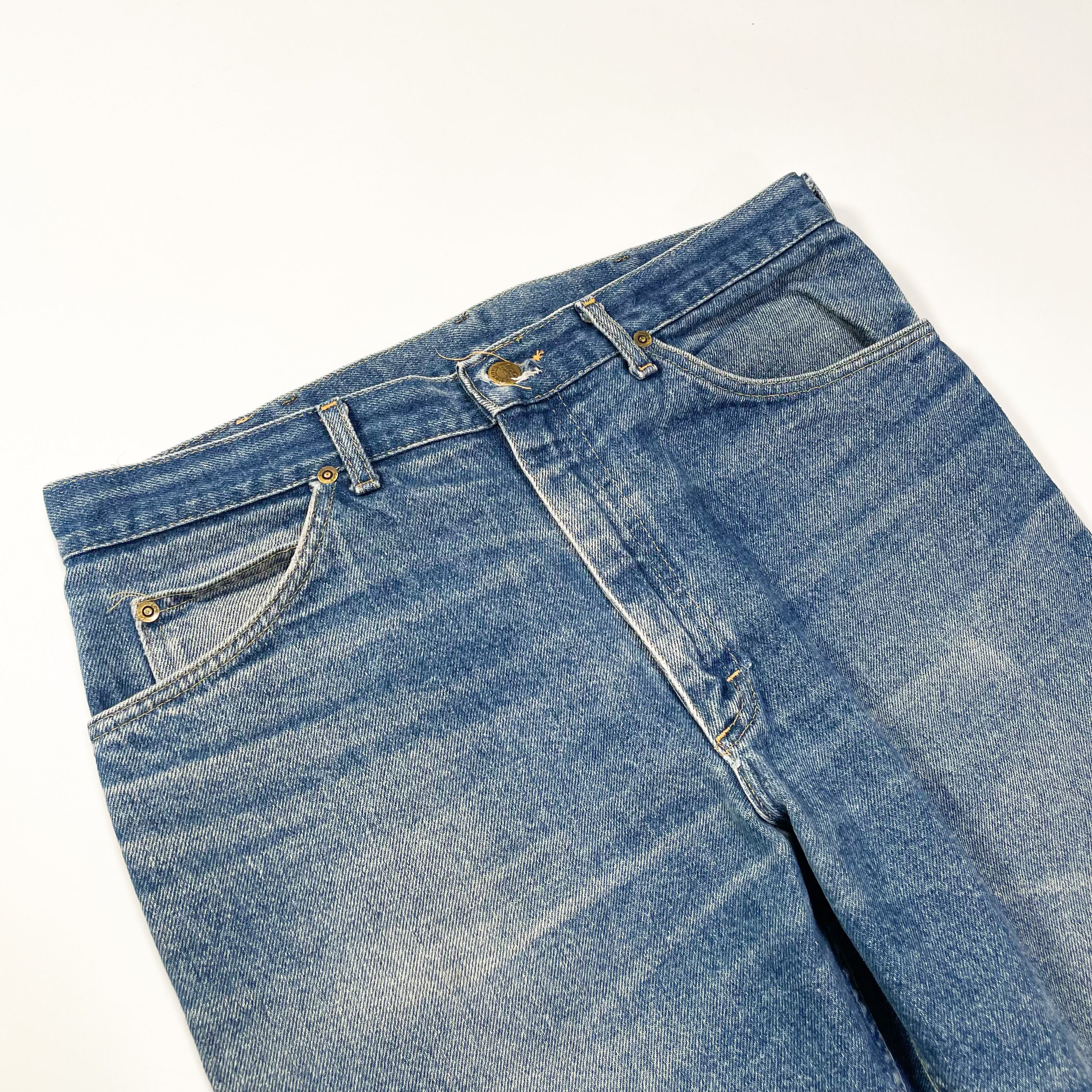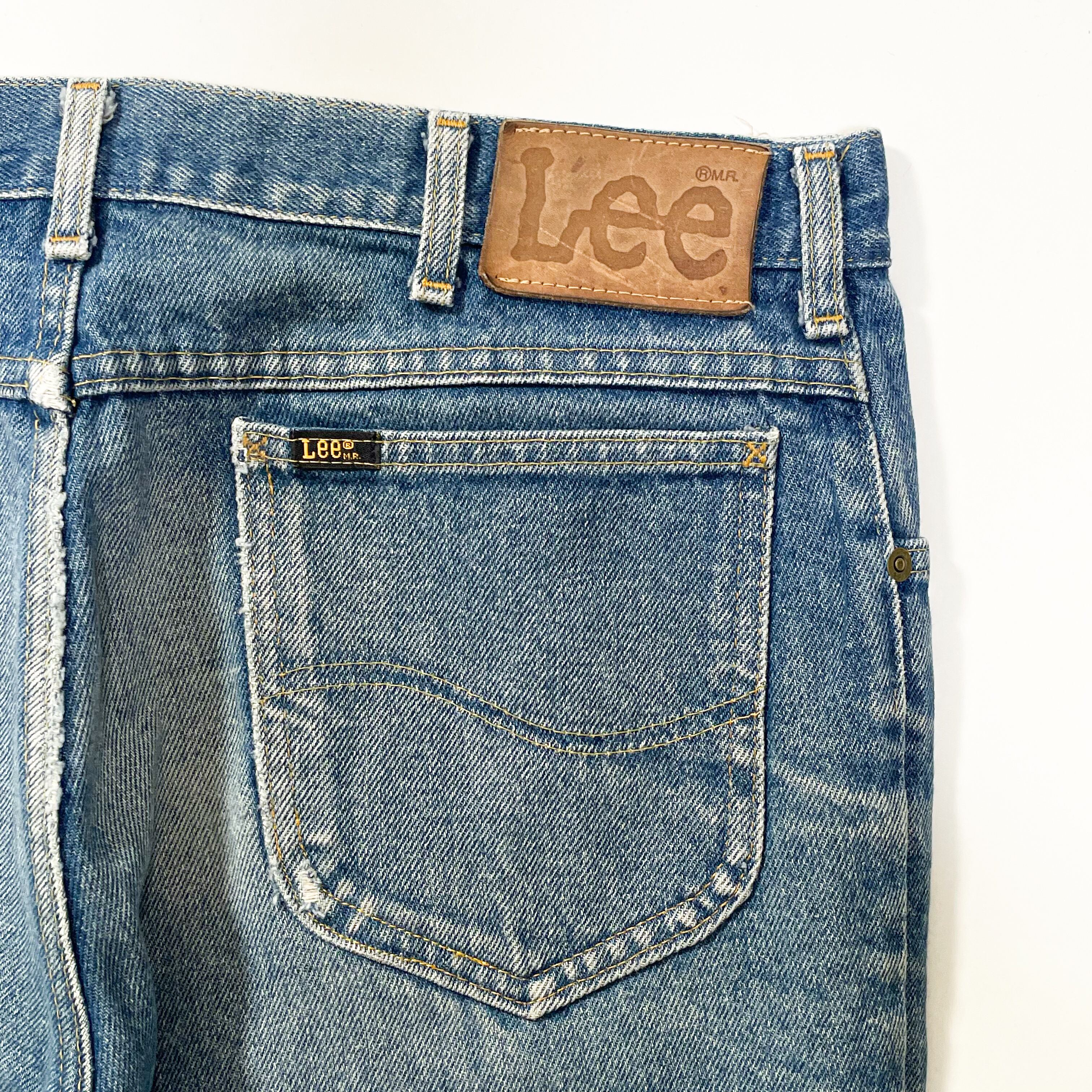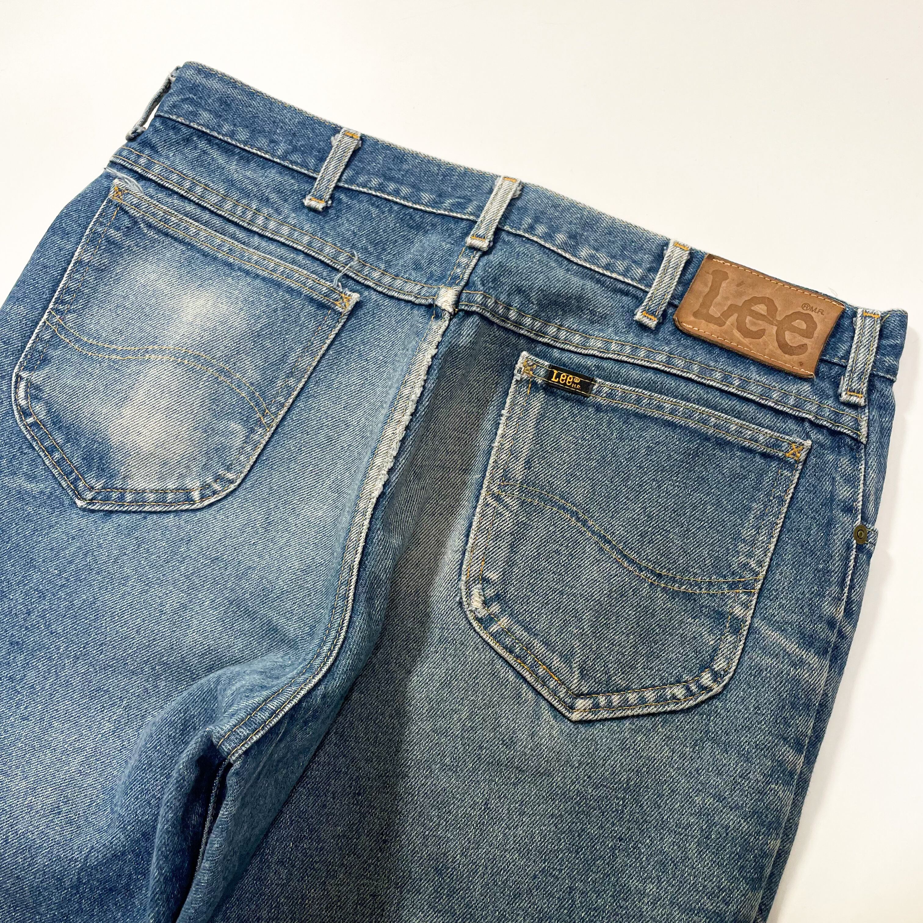 1980s " Lee 200 " indigo denim bootscut pants . made in usa . size 36×32 .