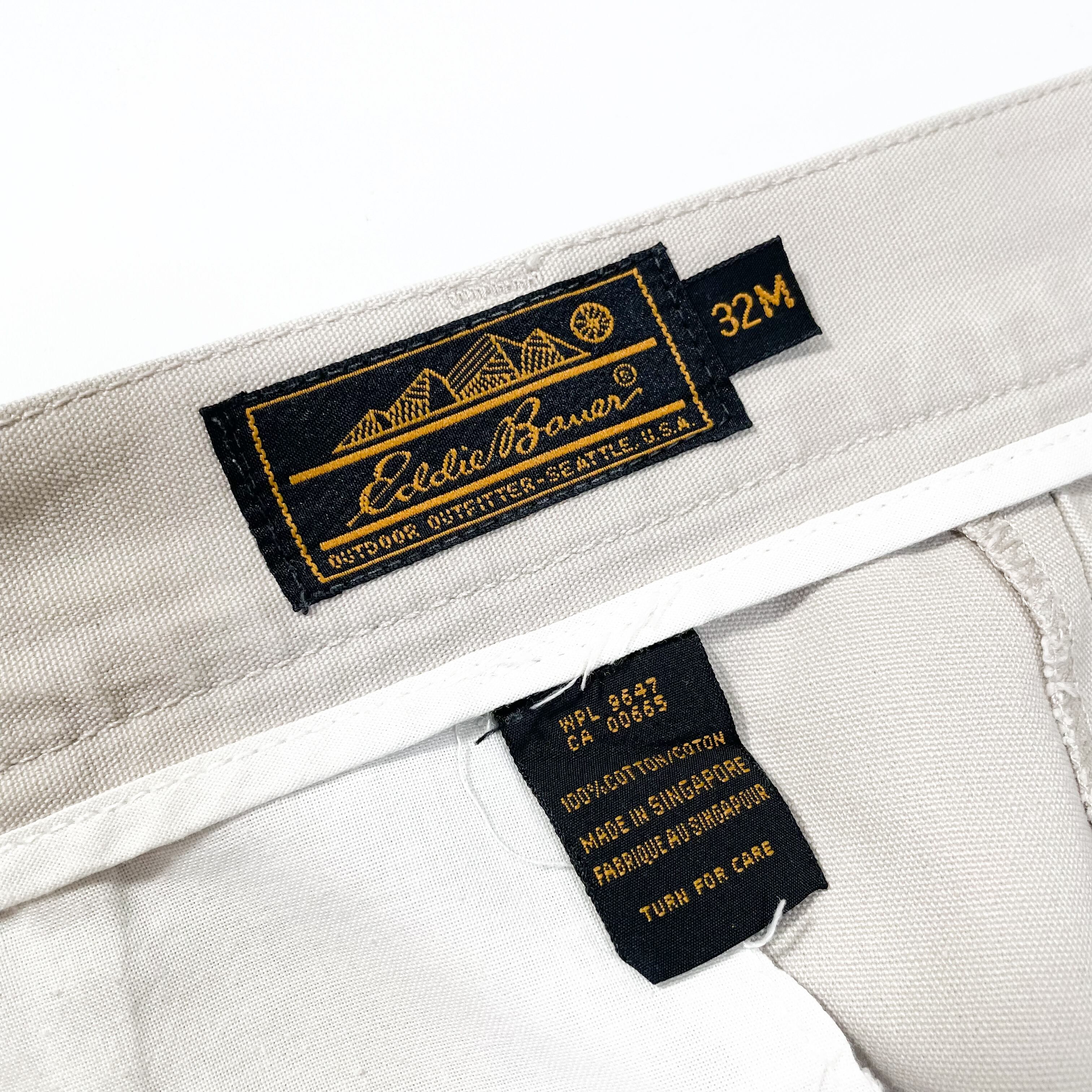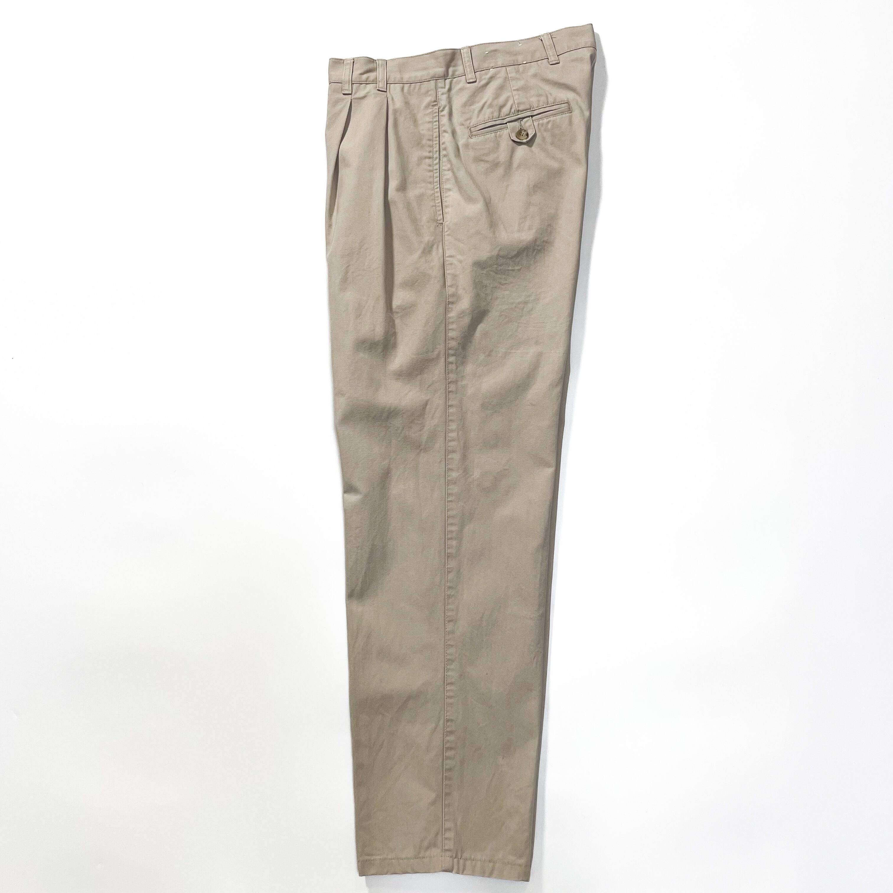 1980s " Eddie Bauer " cotton two tuck trousers . size 32×29 .