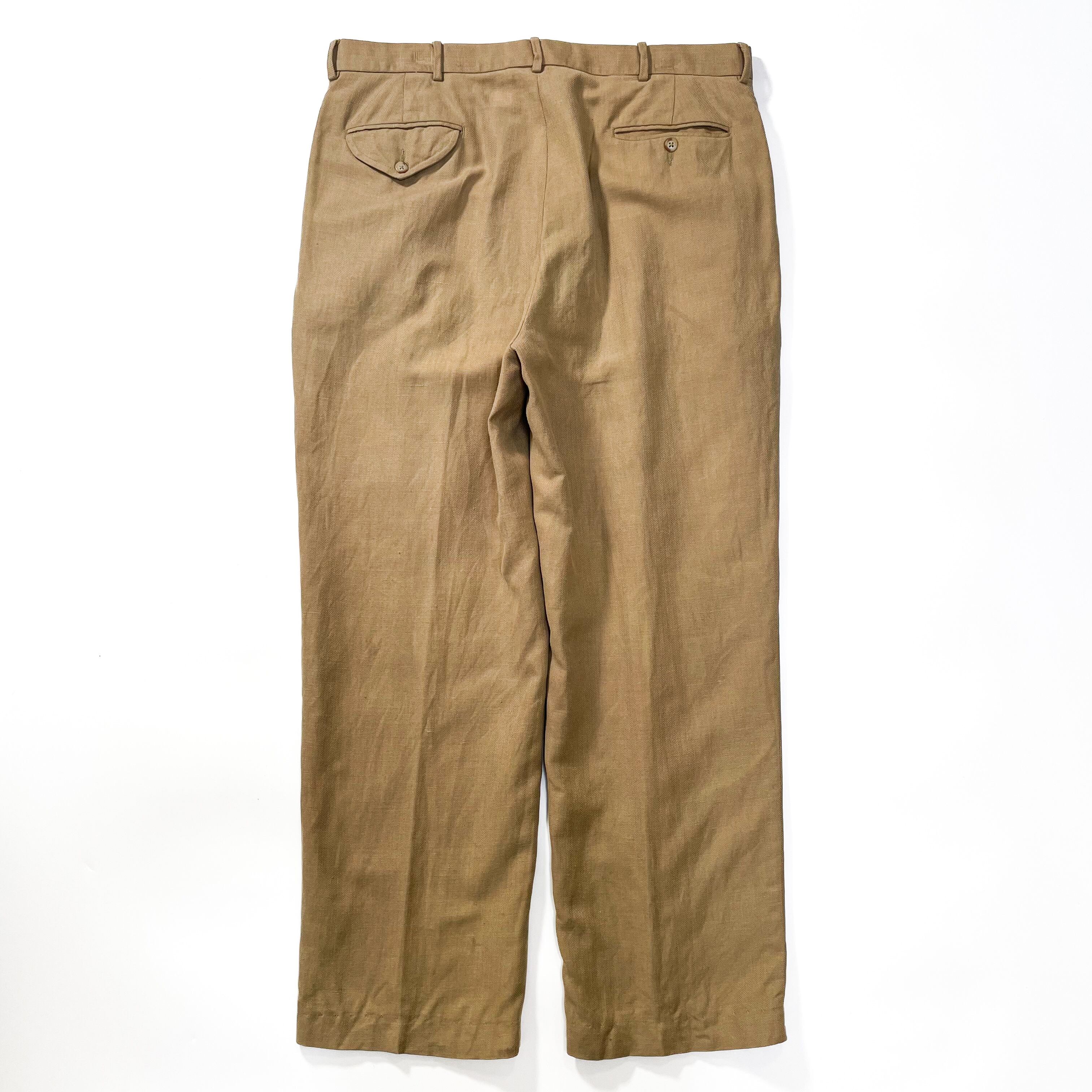 1990s " Polo Ralph Lauen " herringbone linen×cotton two tuck slacks . size 36×29 .
