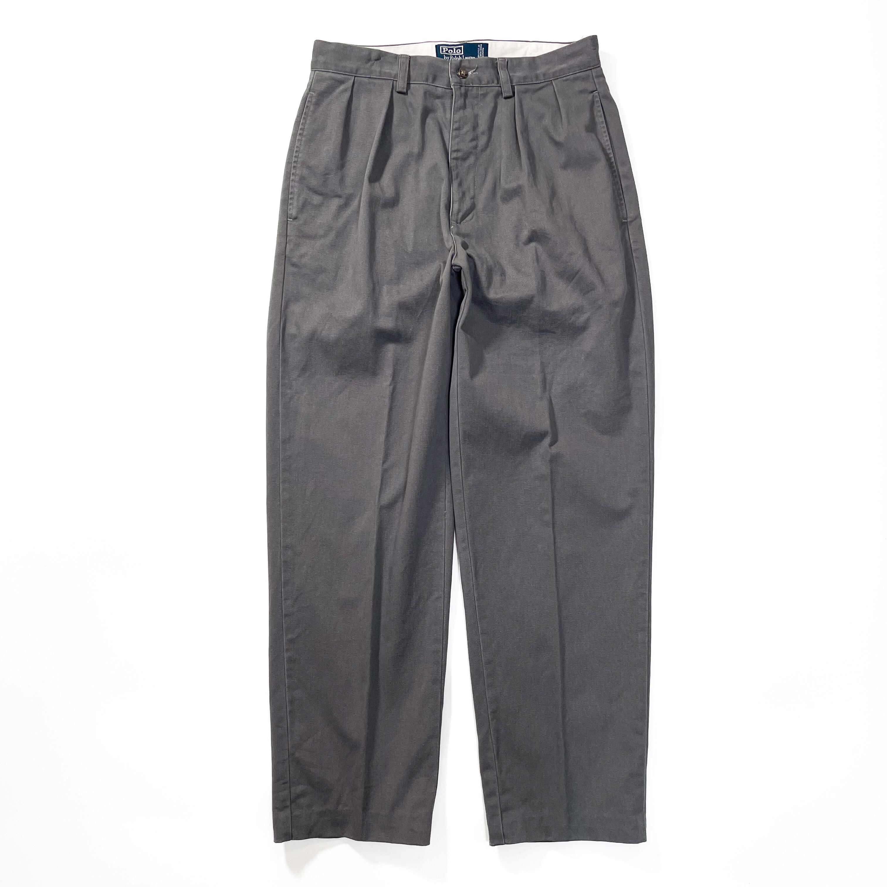 1990s " Polo Ralph Lauen / Andrew pants " chacol gray chino two tuck trousers . size 30×30 .