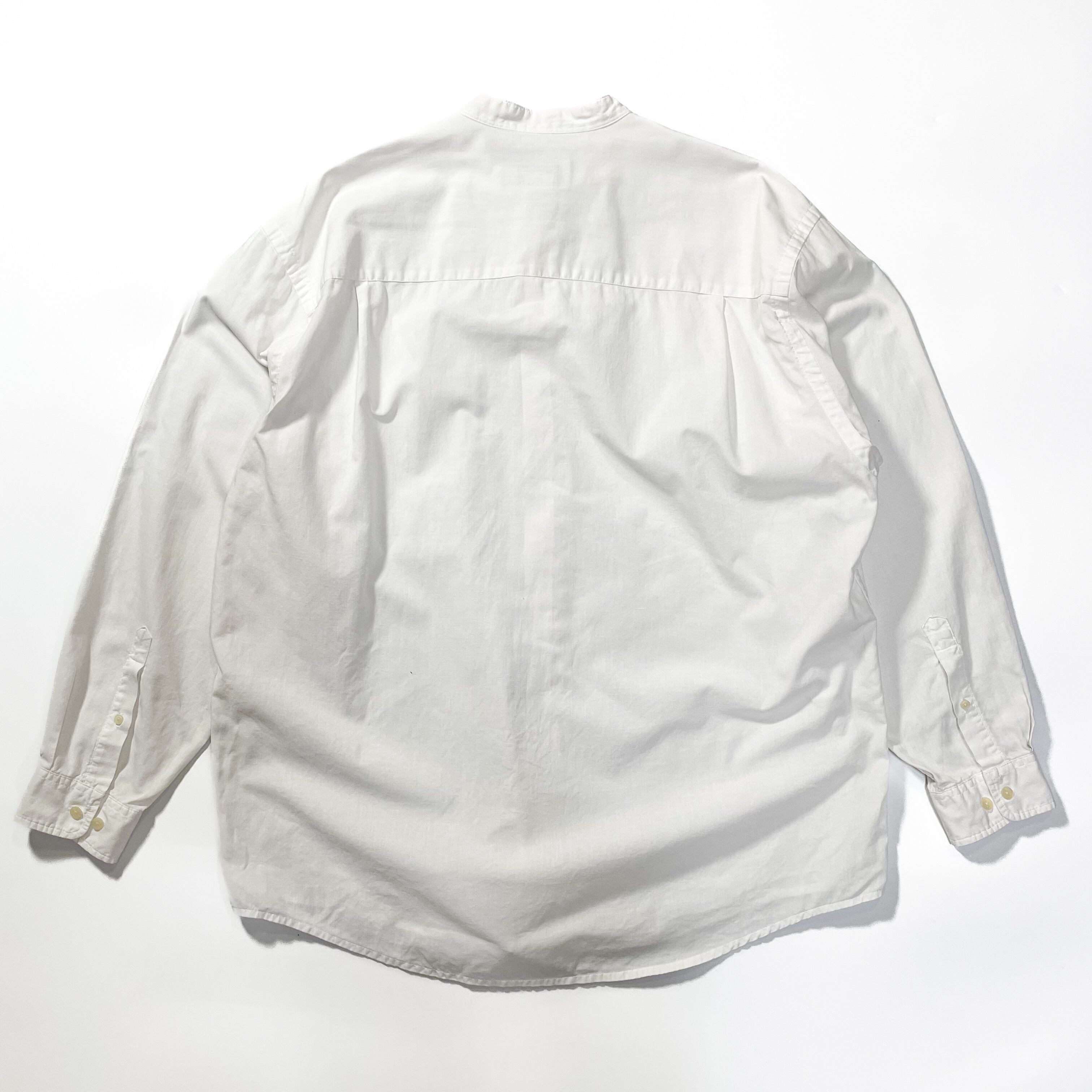 1990s " Eddie Bauer " white cotton stand collar shirts . size large .
