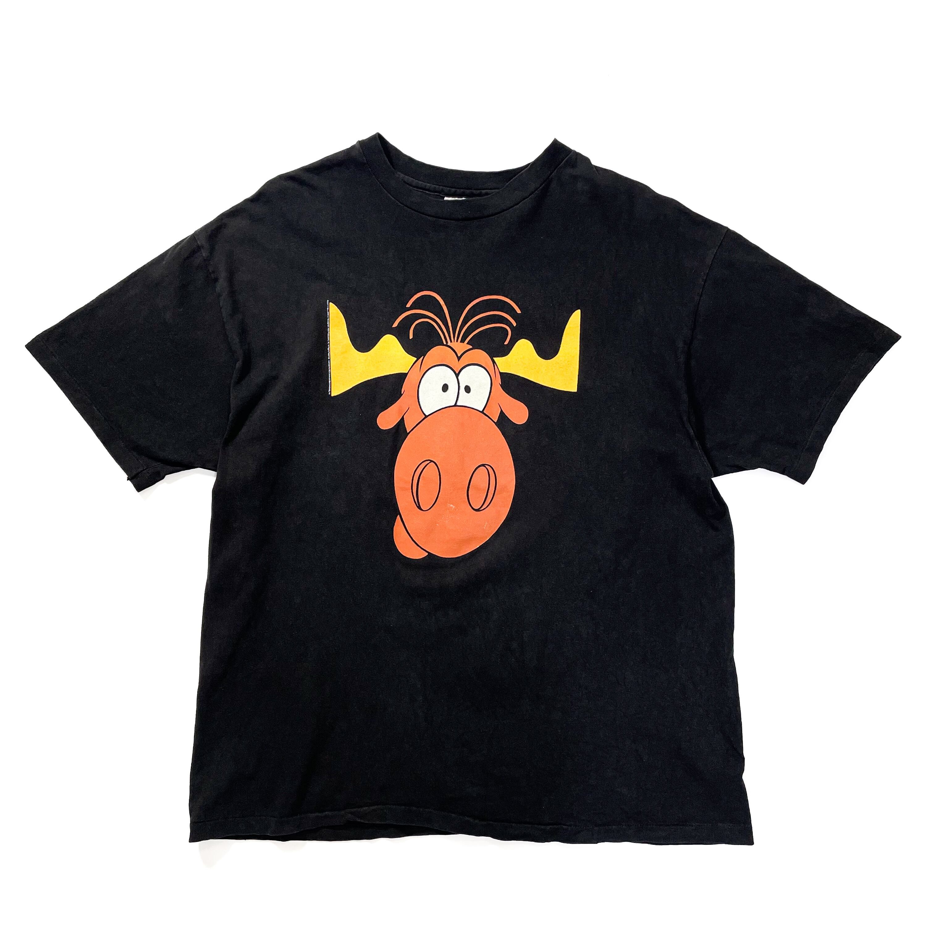 1990s " Tacobell / Rocky&Bullwinkle " black cotton printed t-shirts . made in usa . size xlarge .