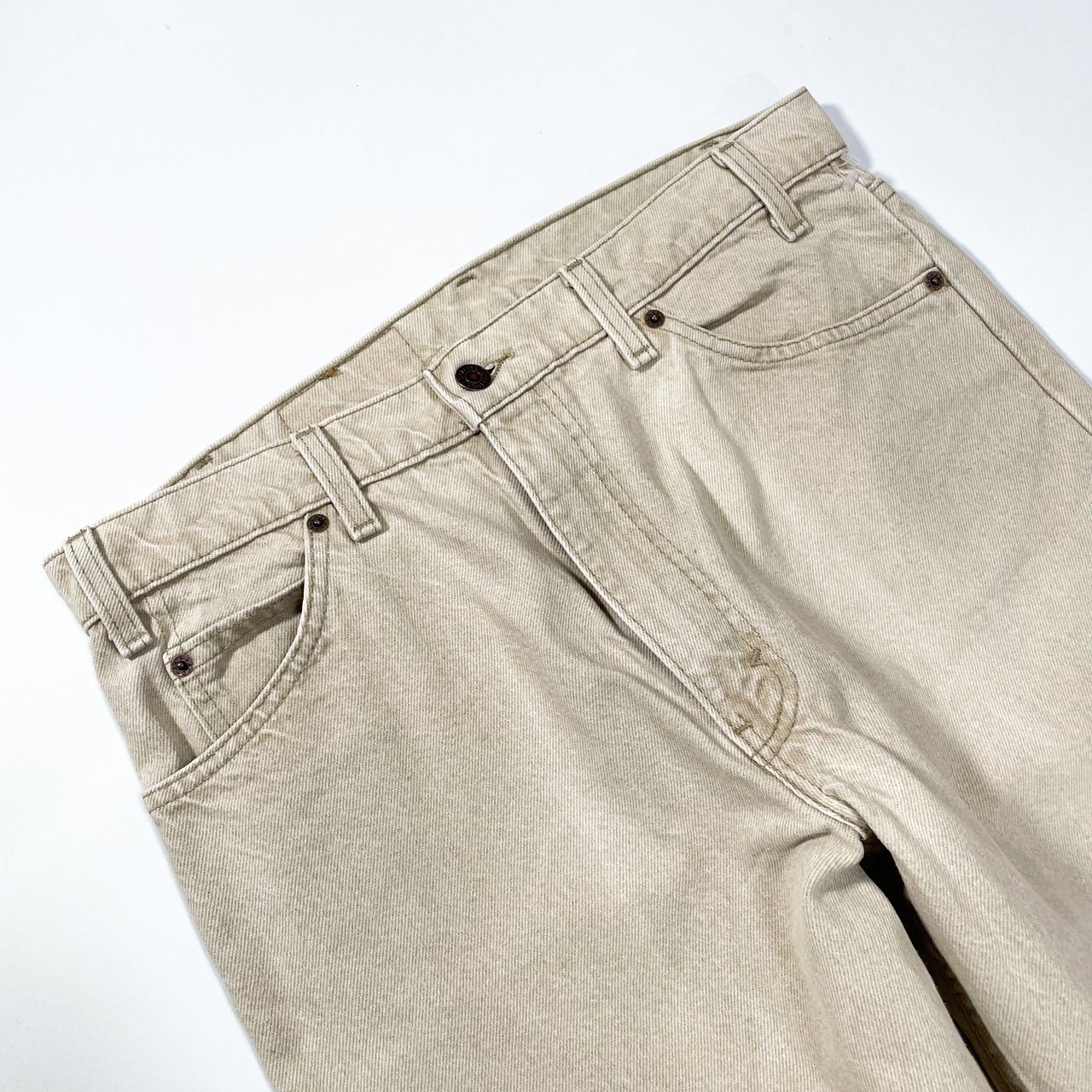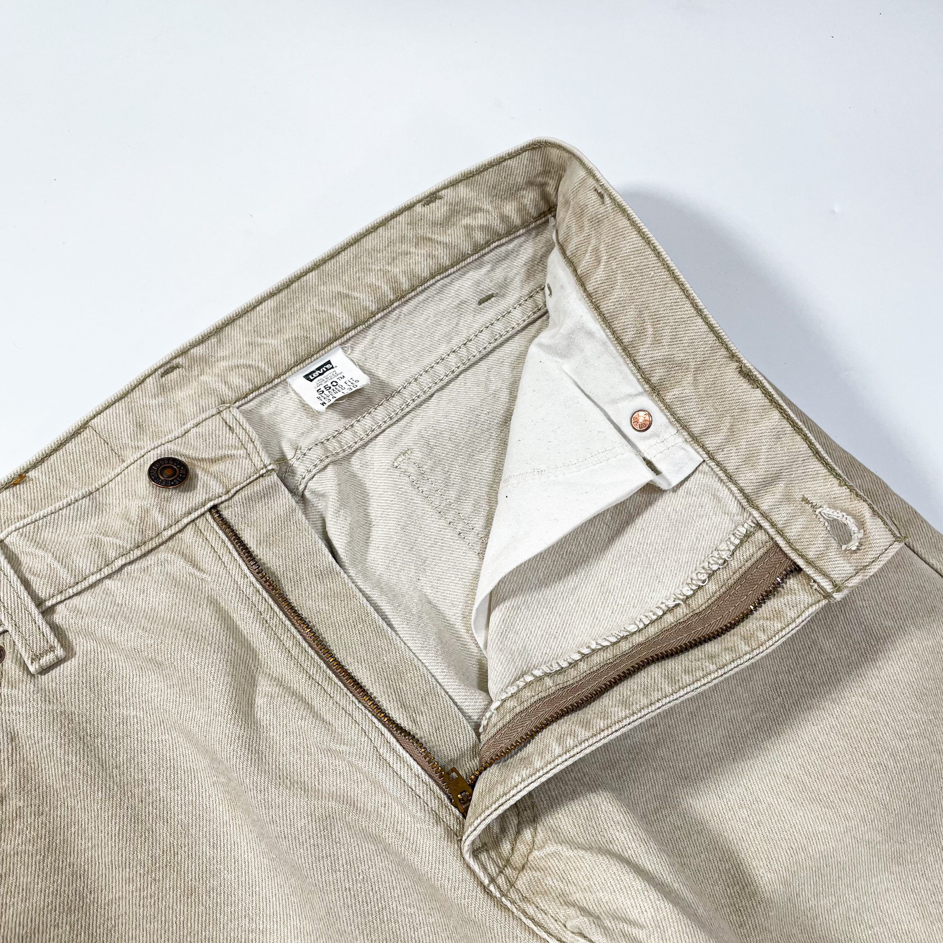 1990s " Levi's 550 " original sand beige relaxed denim pants . made in usa . size 34×30.