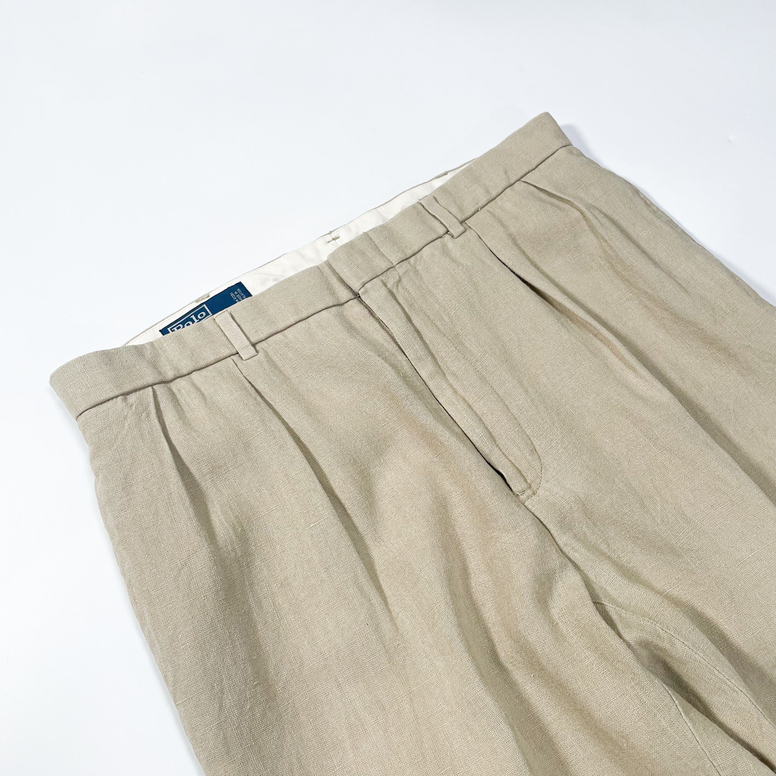 1990s " Polo Ralph Lauen " 100%linen two tuck slacks . size 35×32.