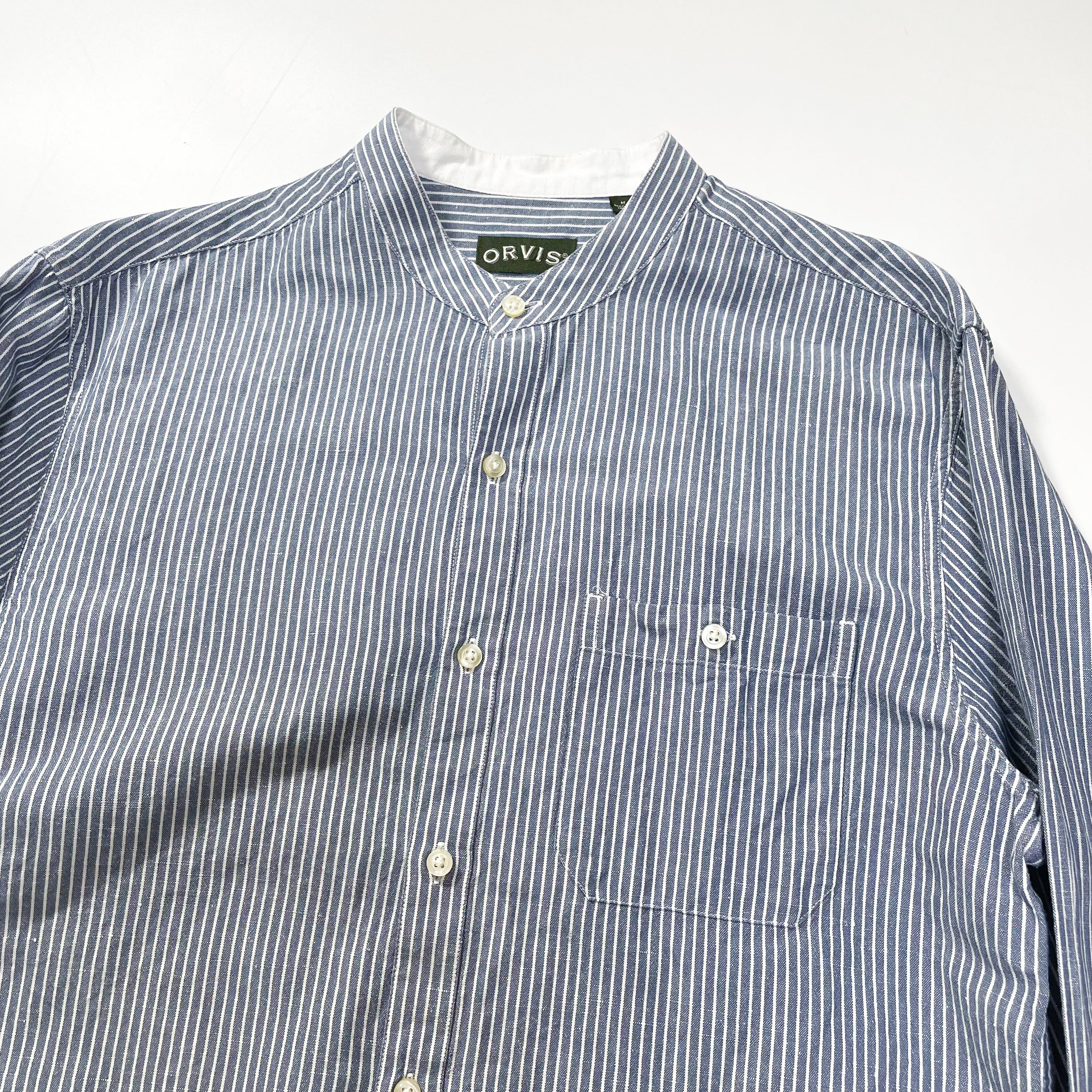 2000s " Orvis " linen cotton stand collar shirts . size medium .