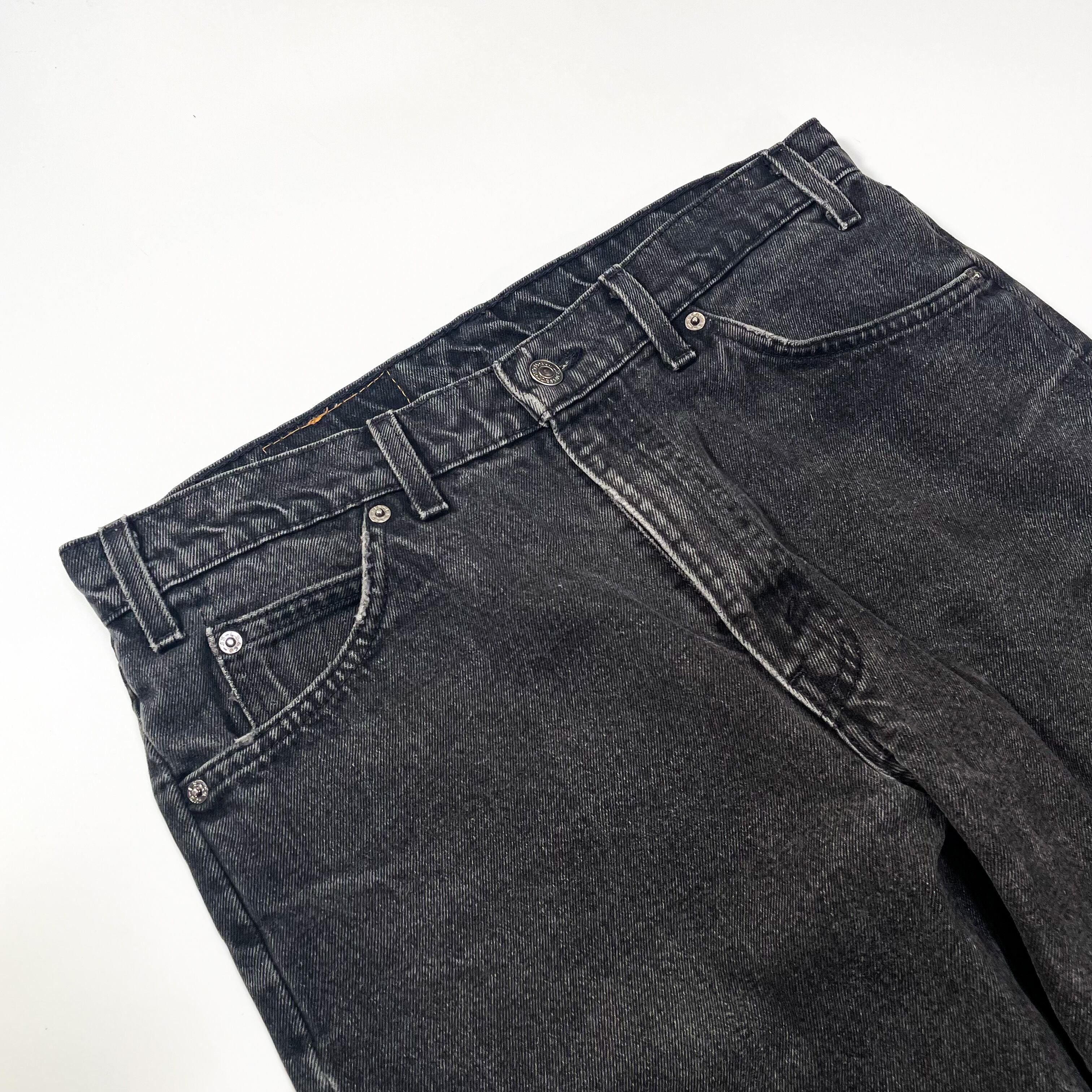 1990s " Levi's 550 " relaxed black denim pants . made in usa . size 34×30