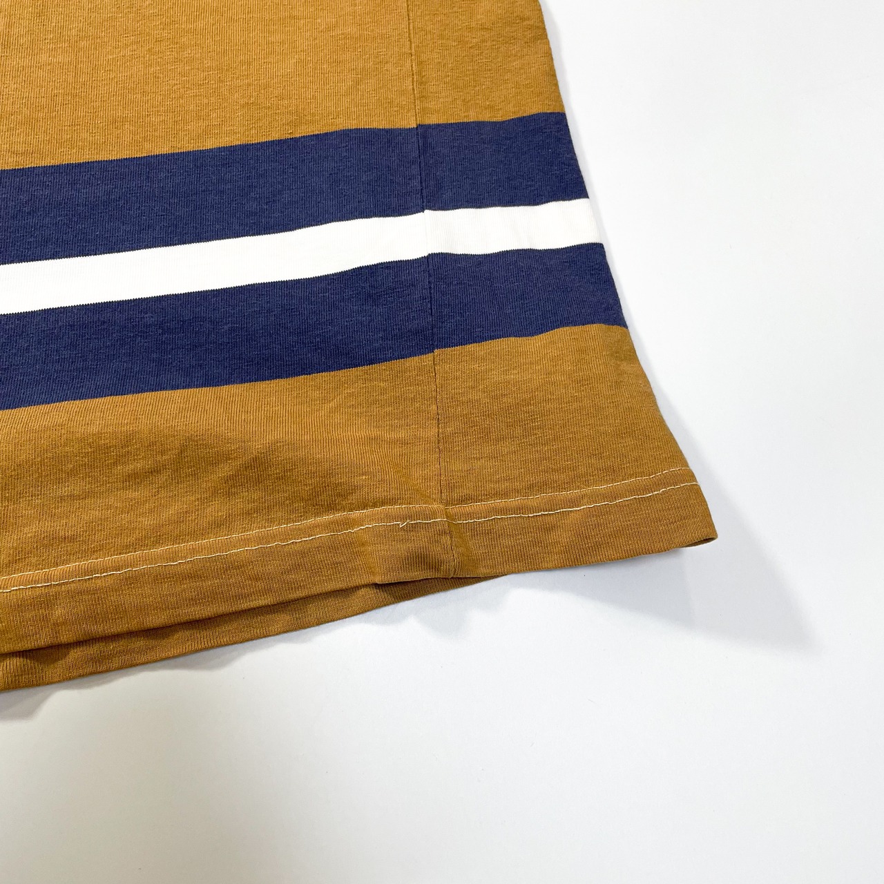 マスタードイエローにネイビー、ホワイトのボーダー柄。