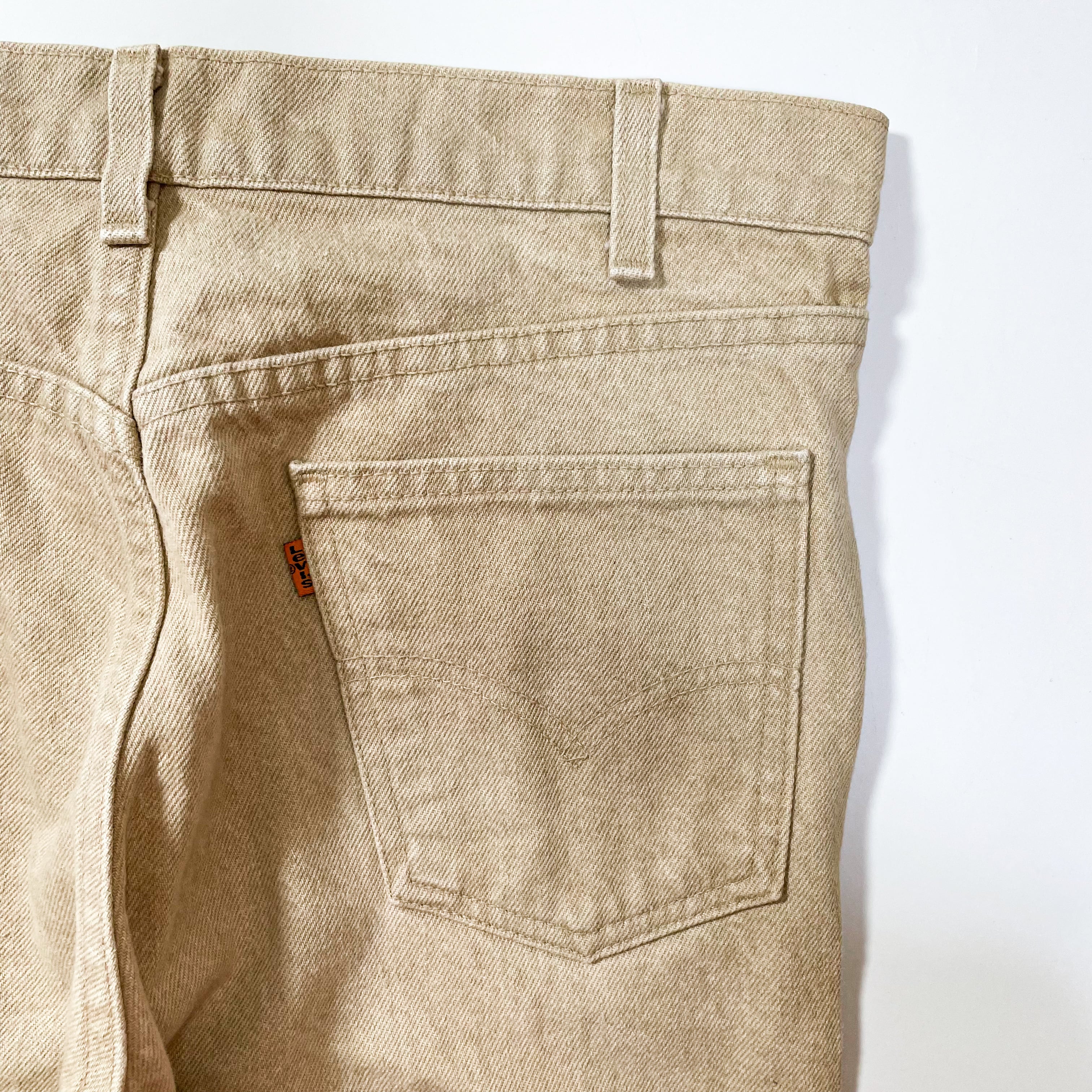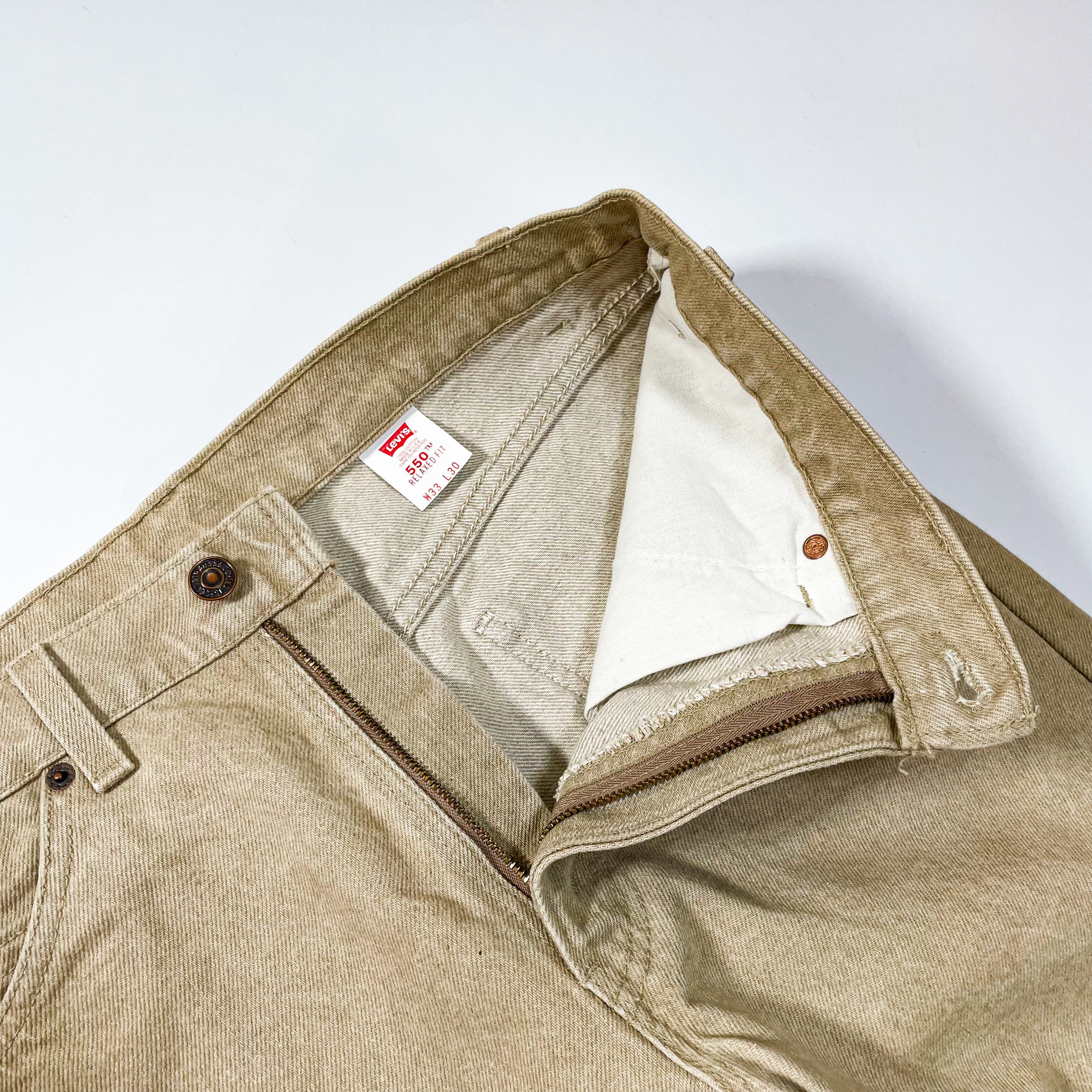 1990s " Levi's 550 " original sandbeige relaxed denim pants . made in usa . size 33×30.