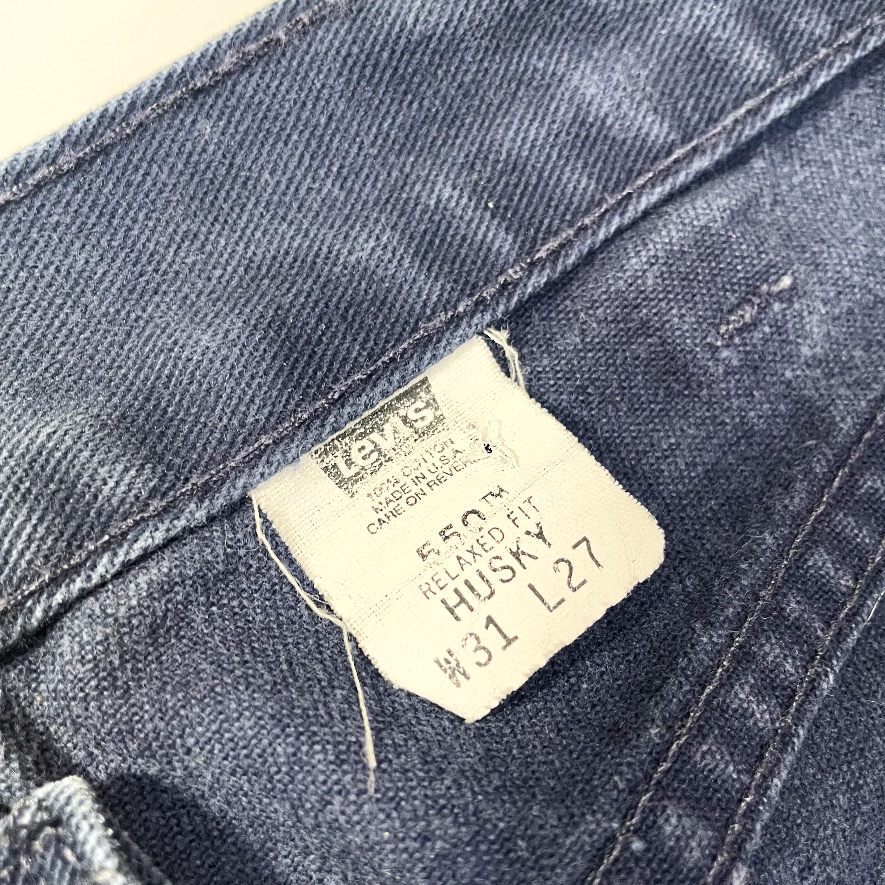 1990s " Levi's 550 Husky " navy cotton relaxed pants . made in usa . size 31×27