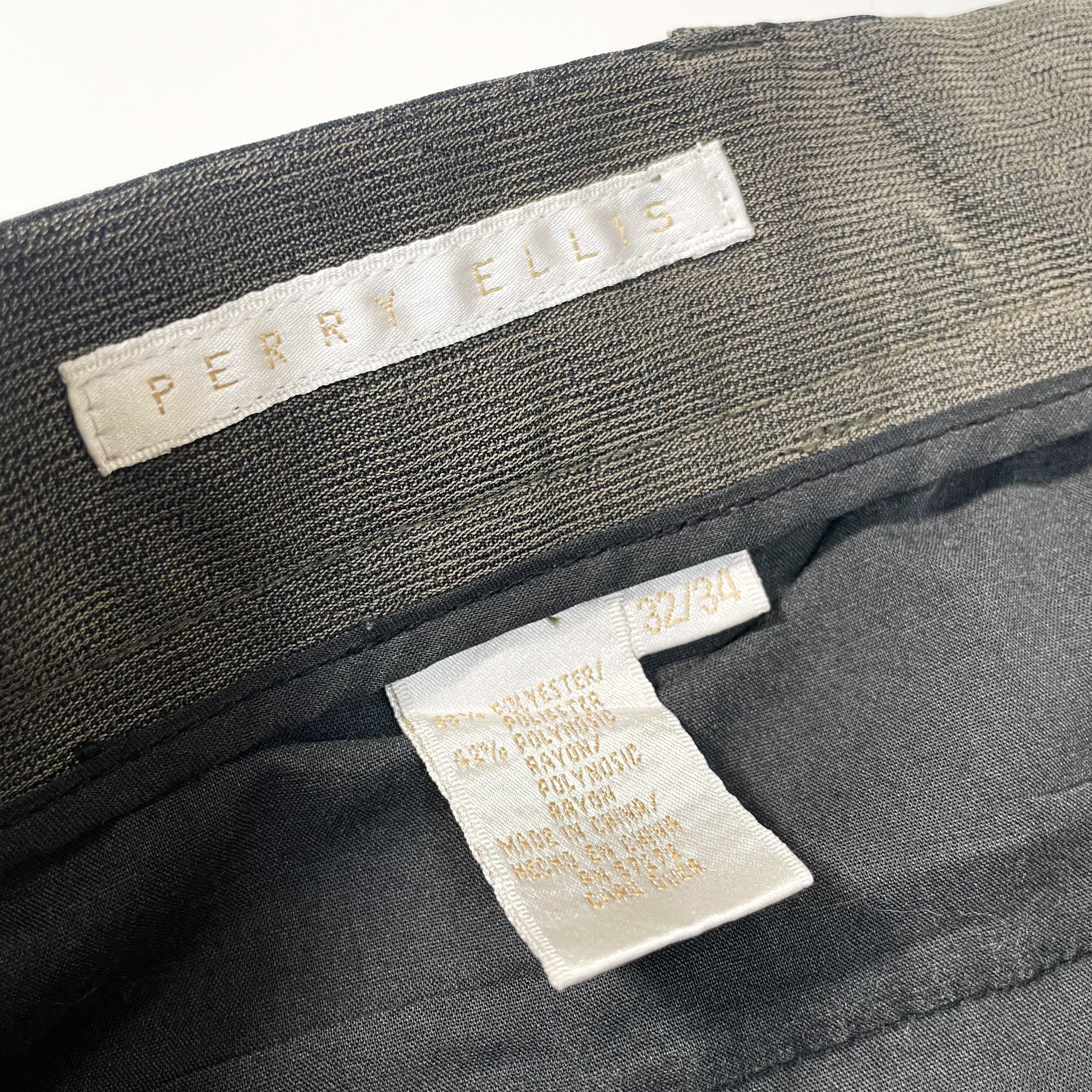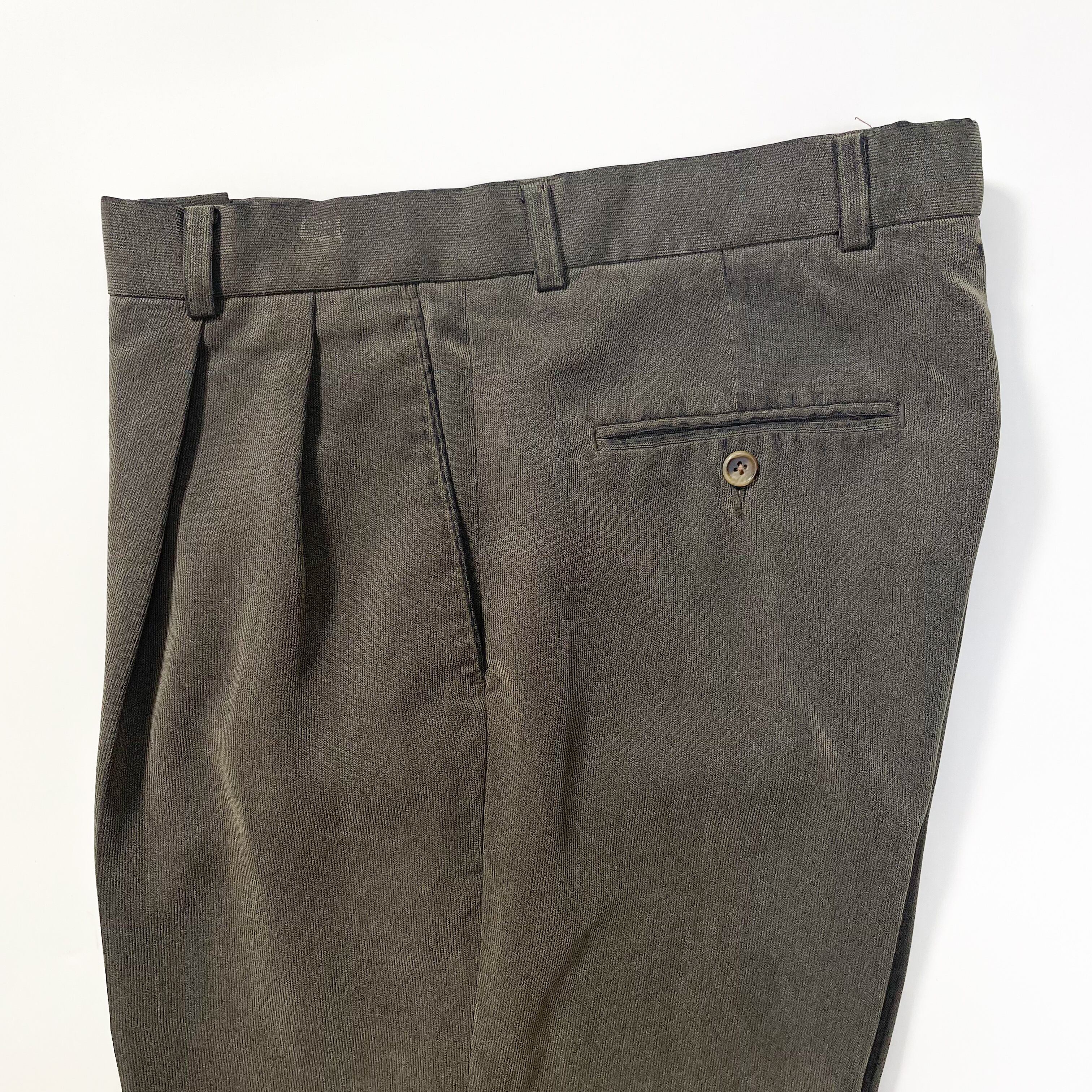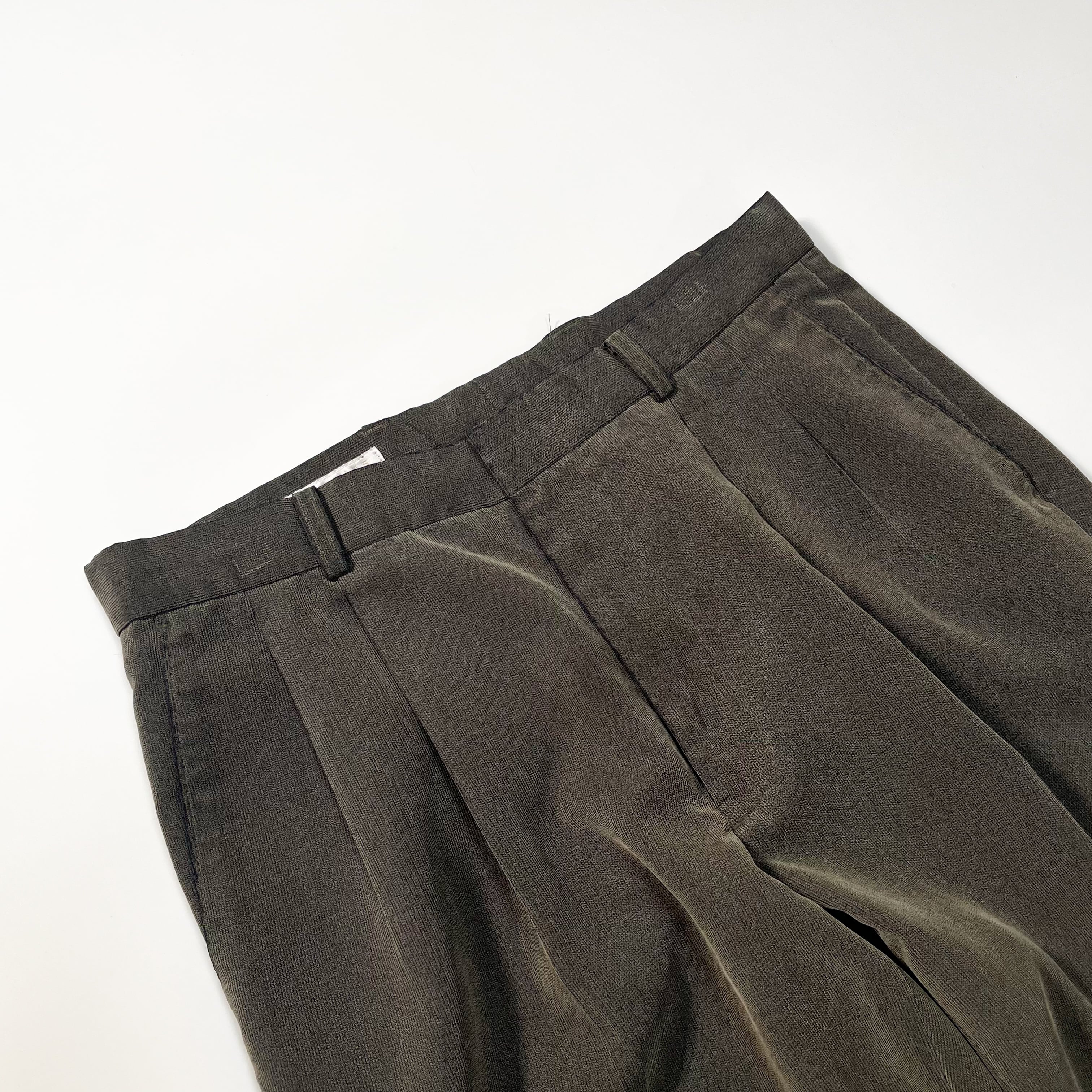 1980s " Perry ellis " olive rayon two tuck slacks. size 32×29