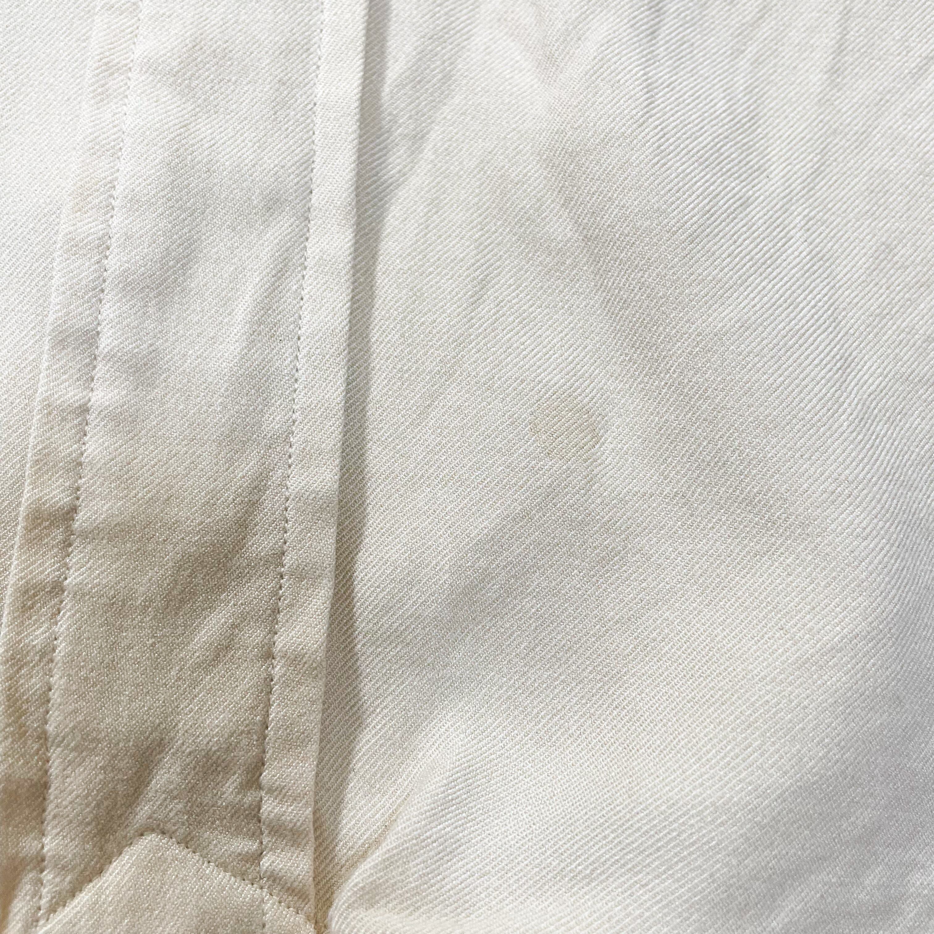 白ではなく、アイボリーのくすんだ色味もパンツを選ばずに着れますね。