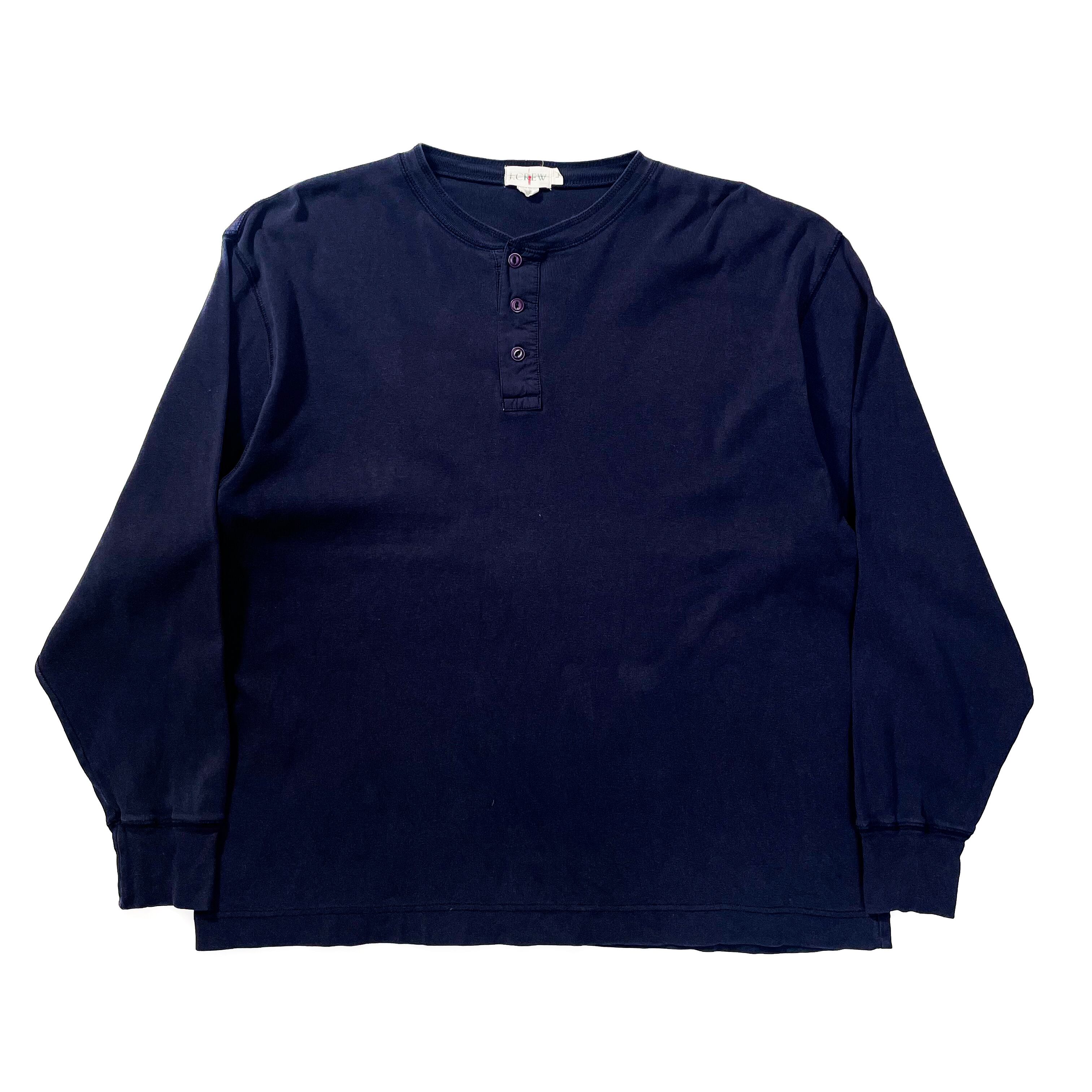 1990s " J.crew " navy cotton henry neck cut&sewn . size large .