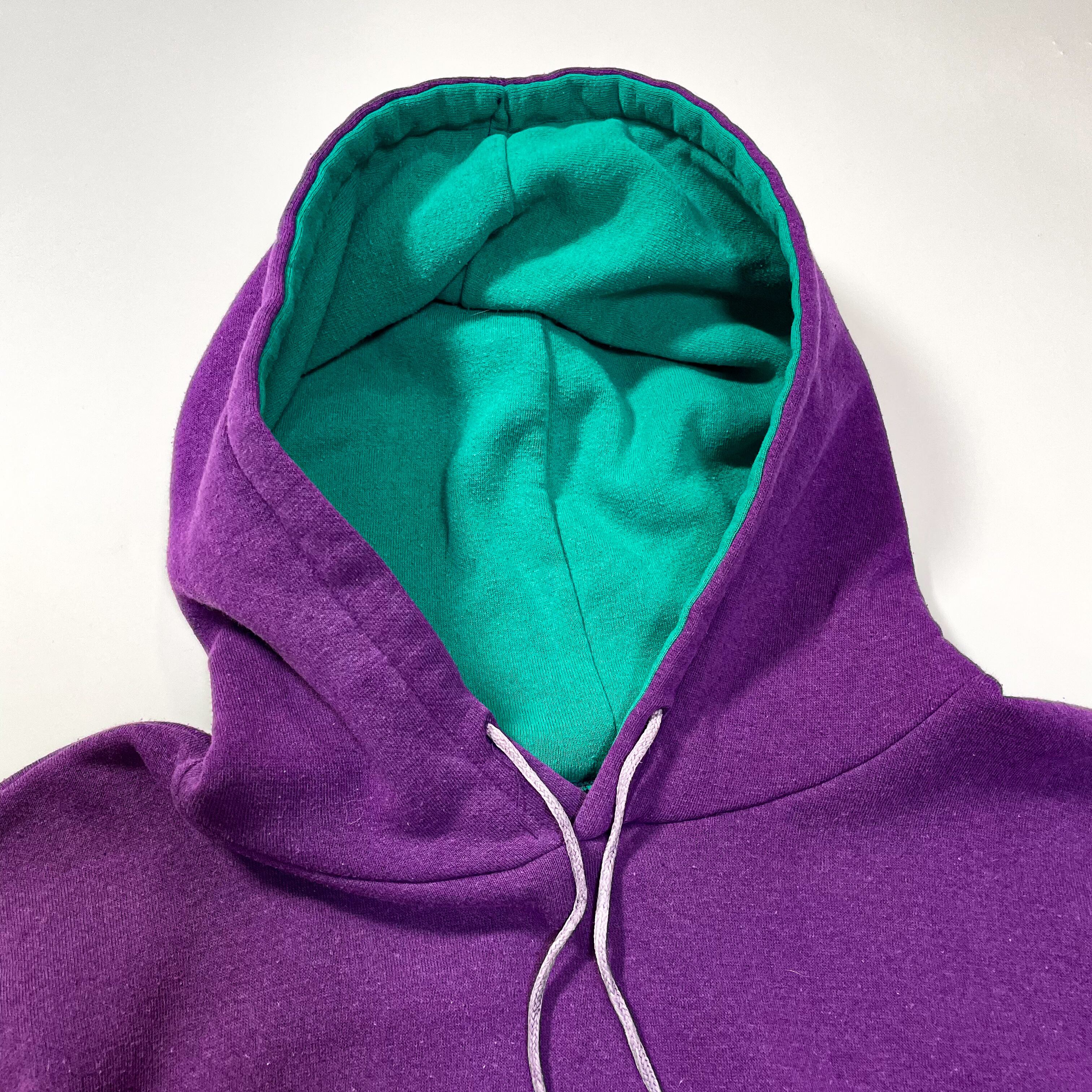 パープルにフード裏のみグリーン。