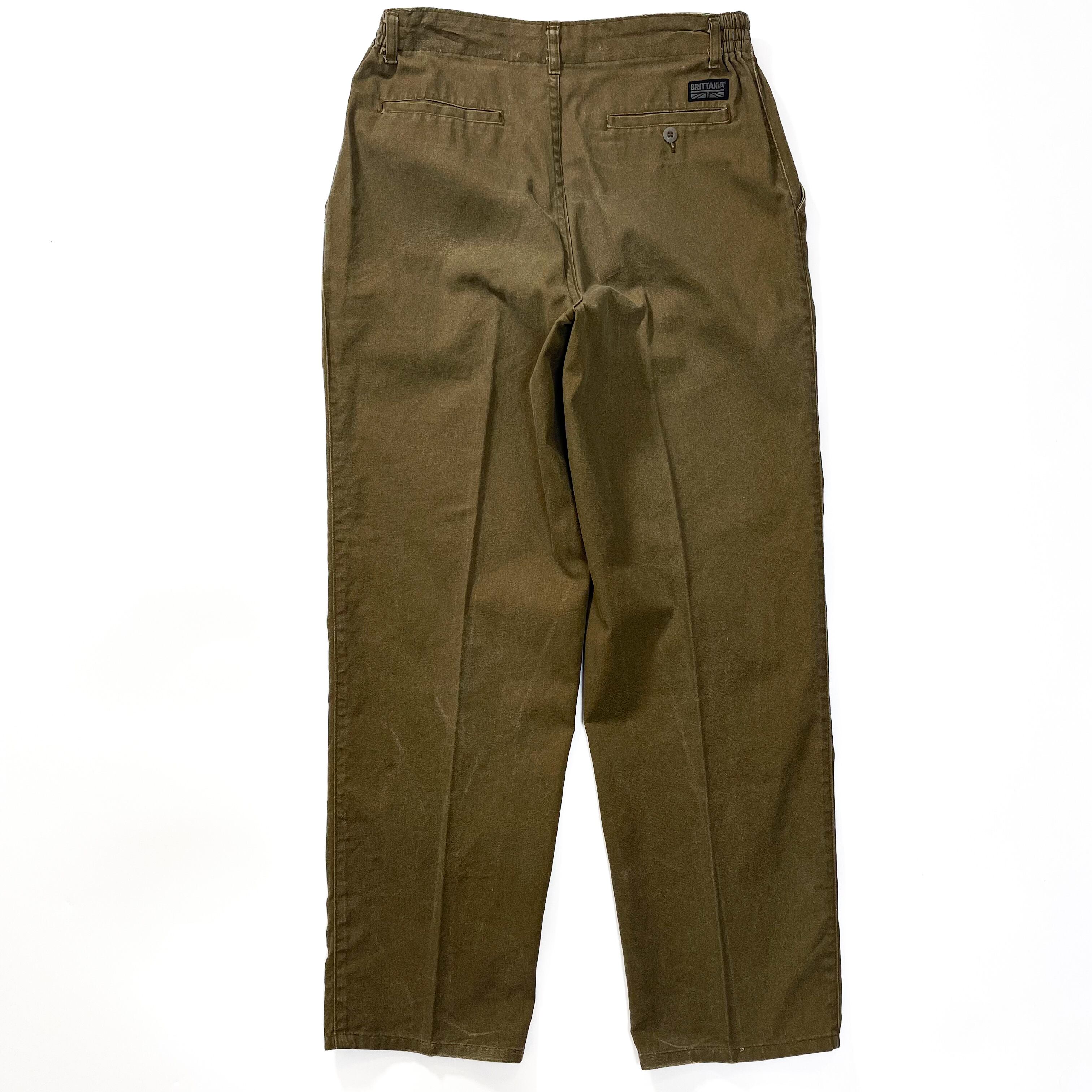 1990s " Brittania " light brown cotton one tuck trousers . size 34×30.