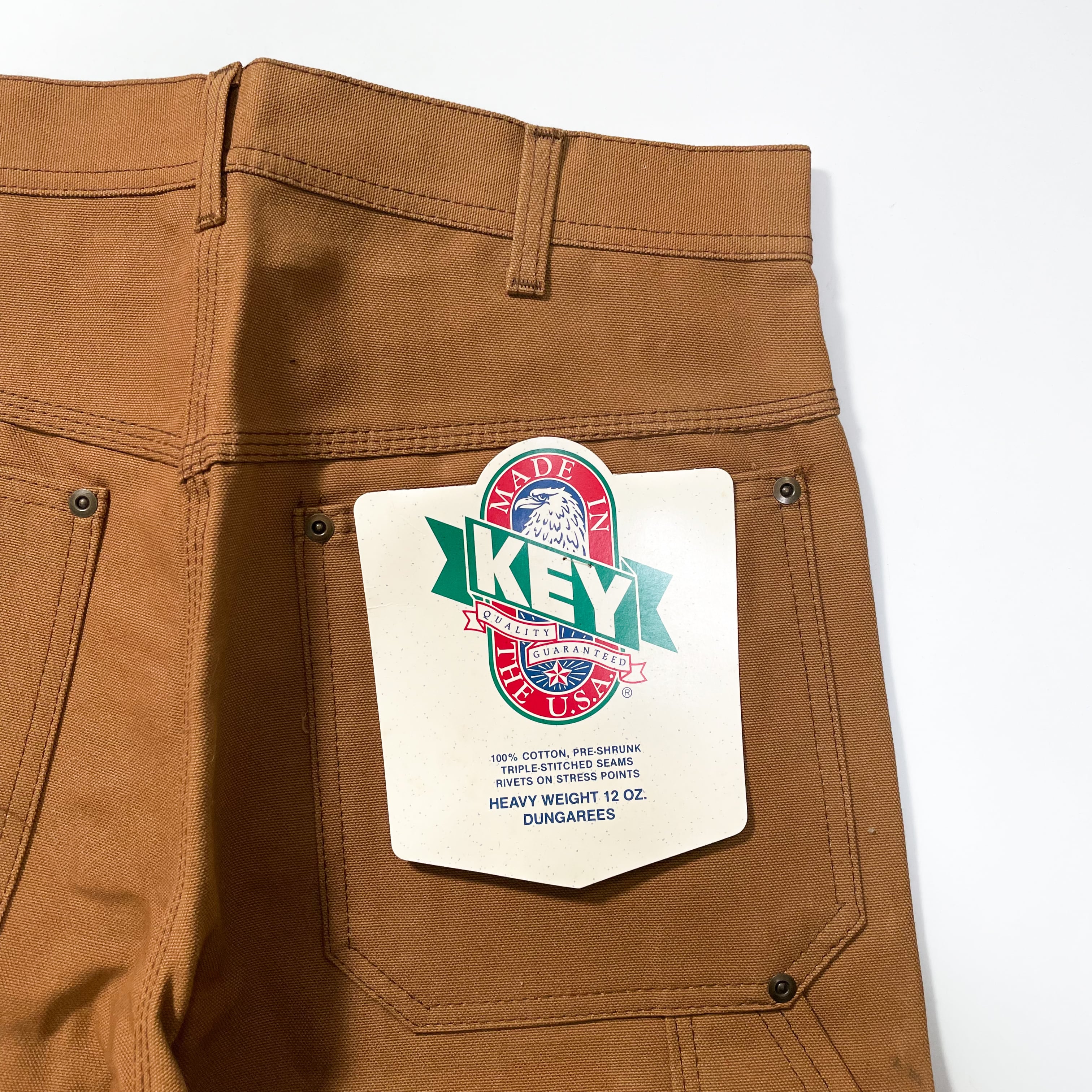 dead stock 1980s " Key " brown duck cloth double knee painter pants . made in usa . size 32×32.