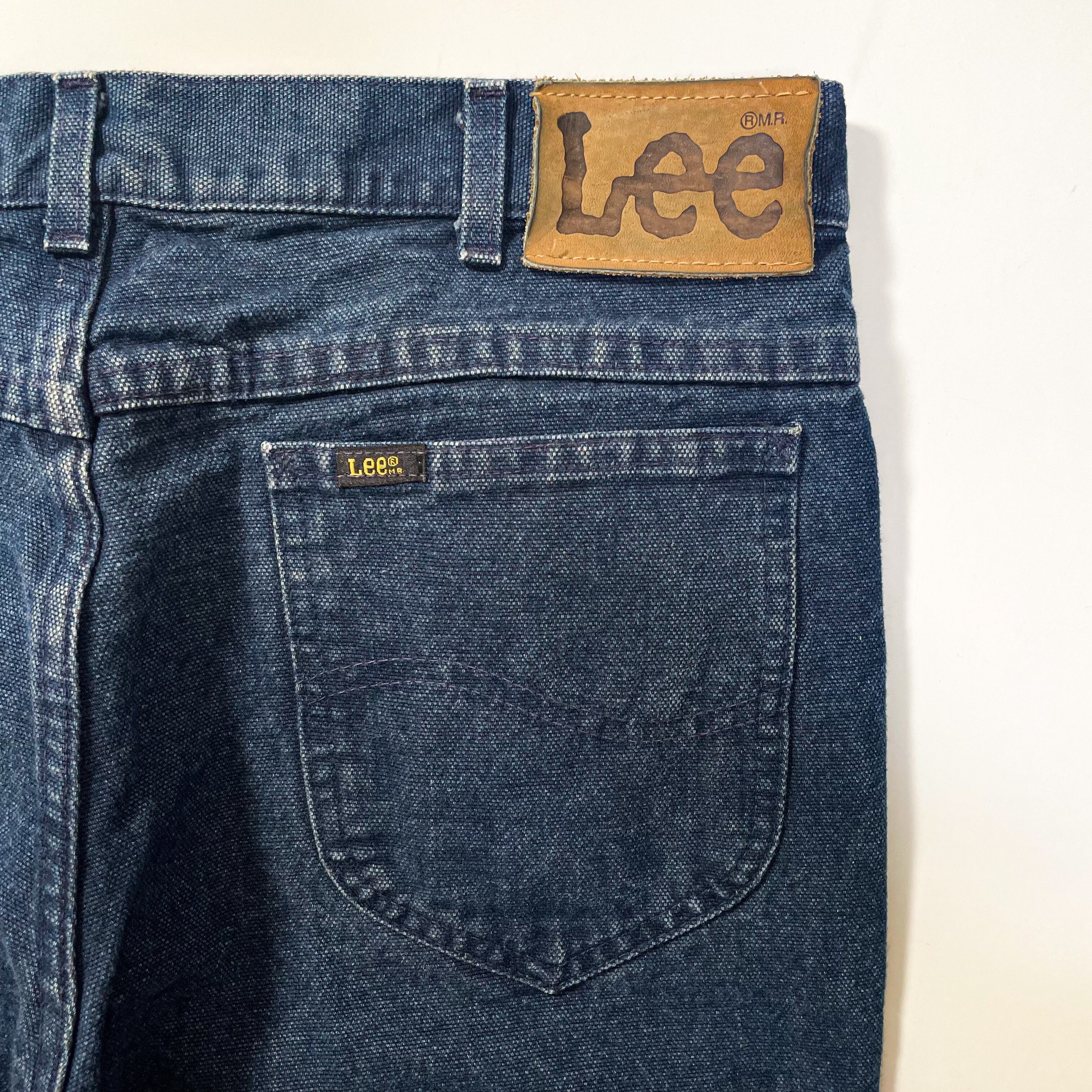 1980s " Lee 200 " navy duck cloth straight pants . made in usa . size 36×30