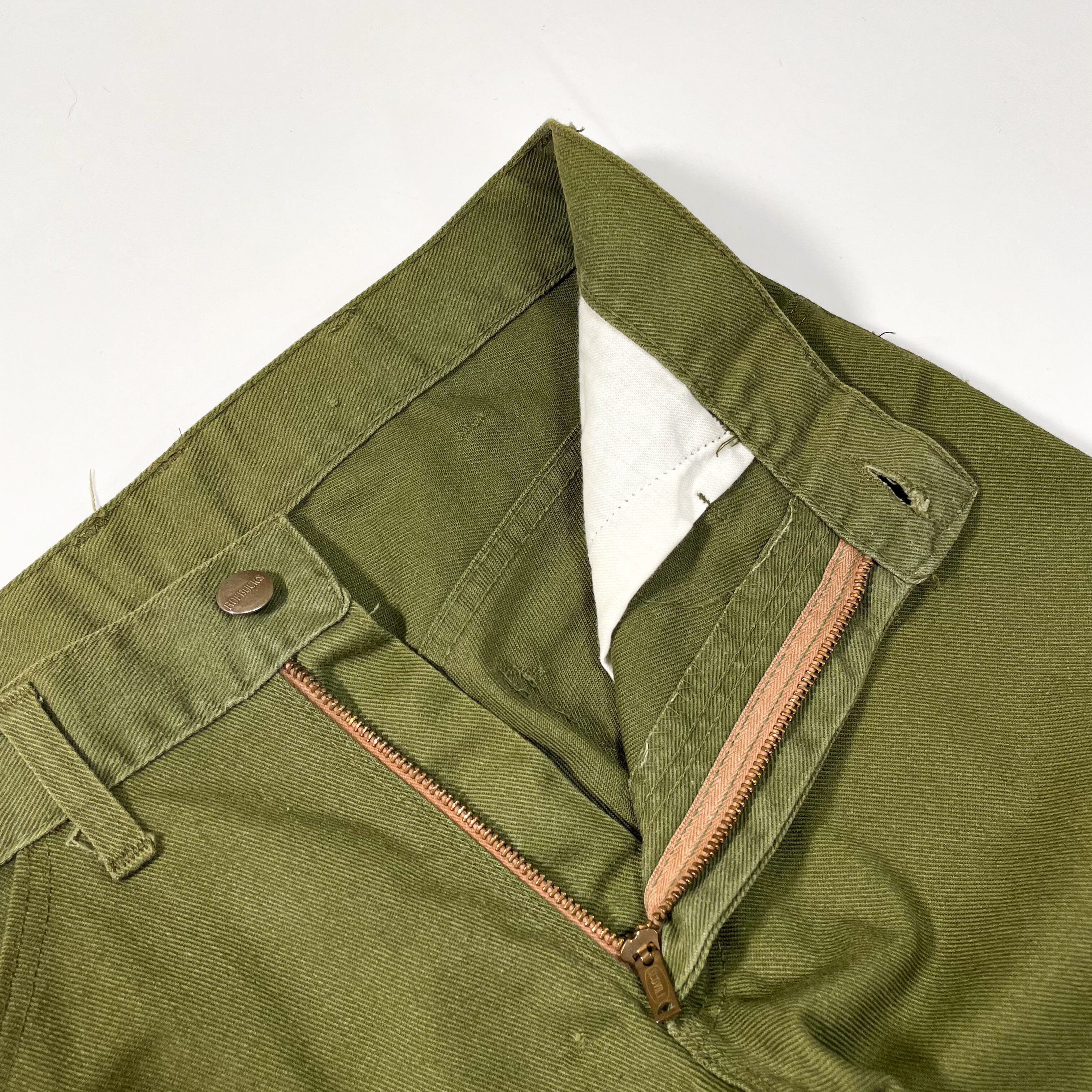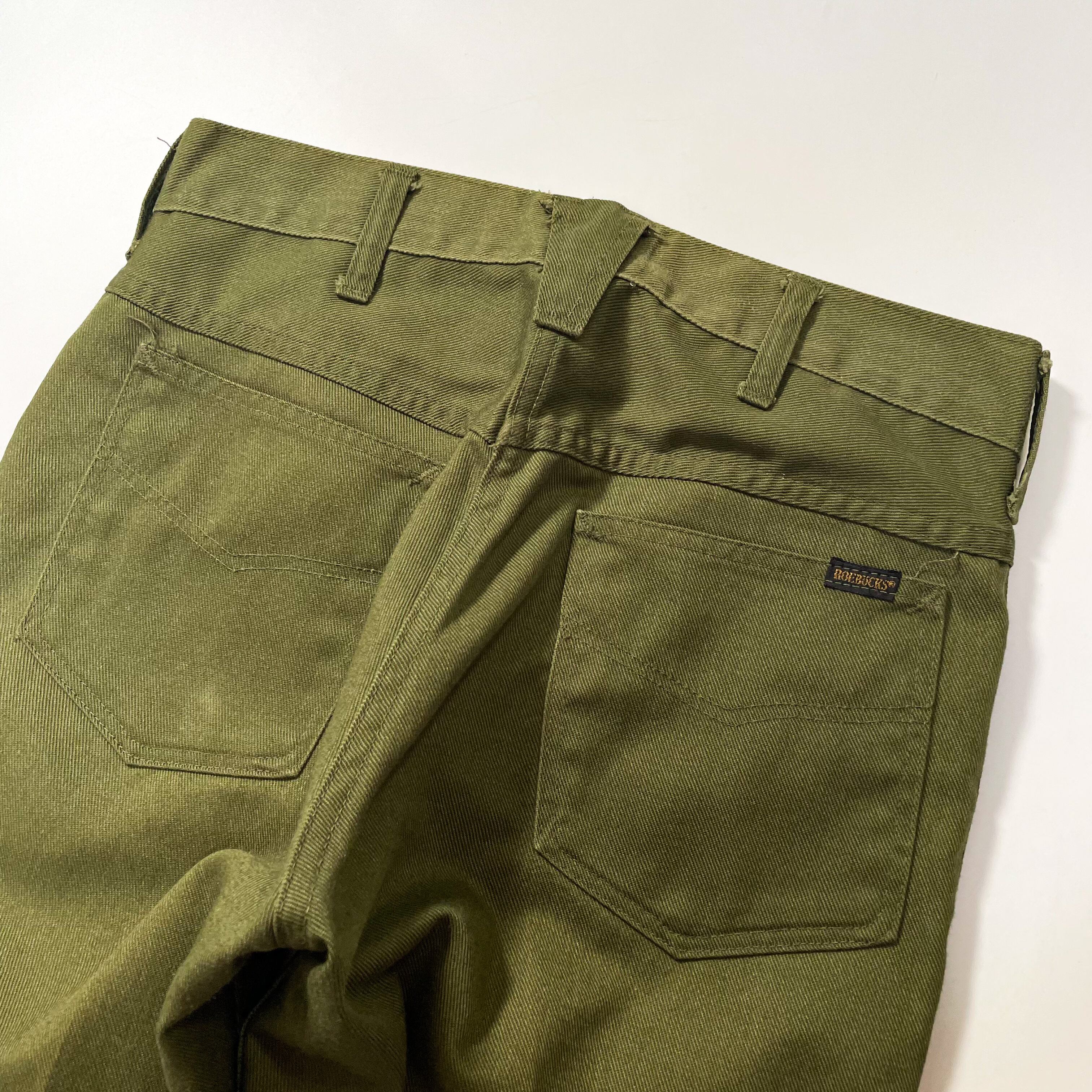 1970s " Sears " olive cotton poly bootscut pants . made in usa . size 30×30