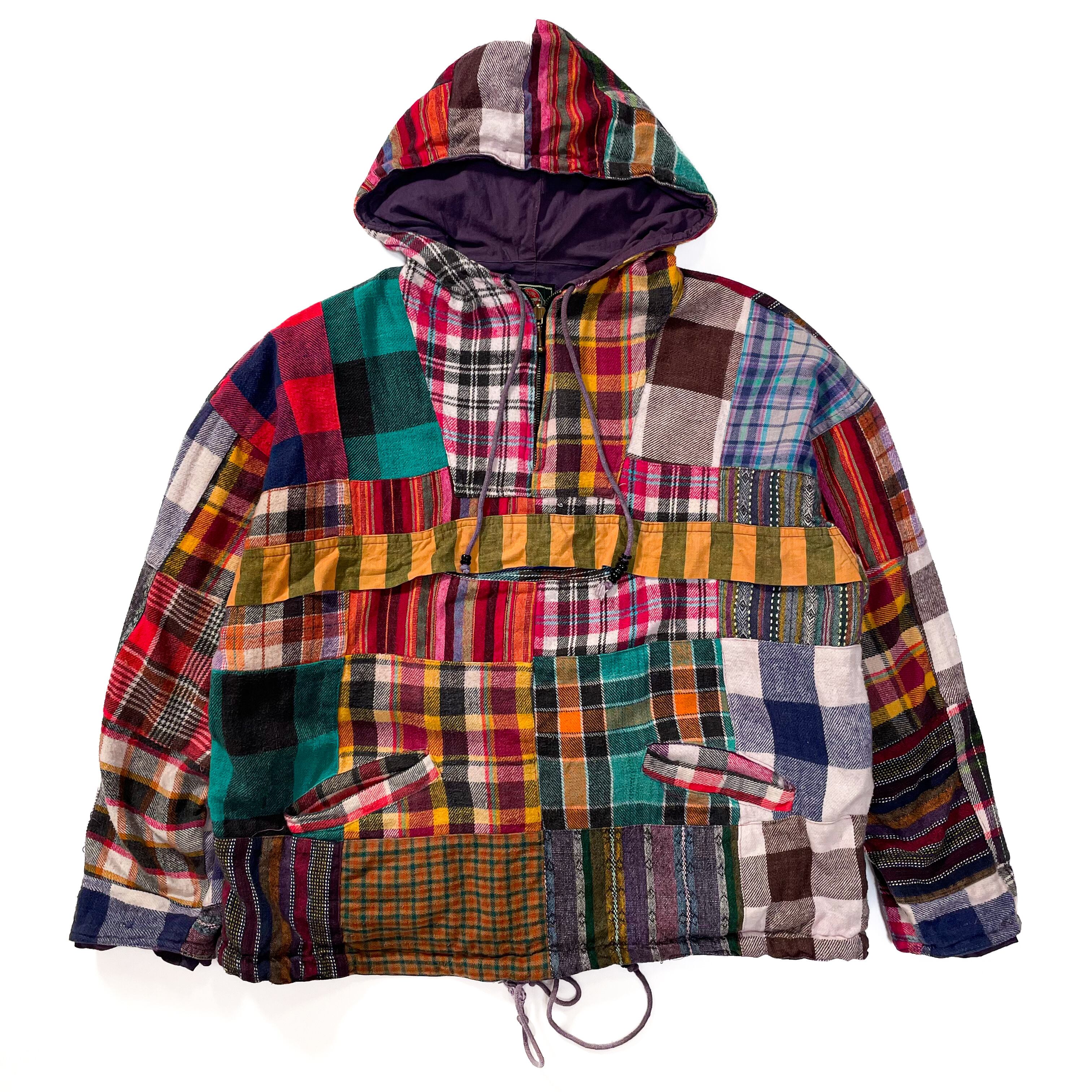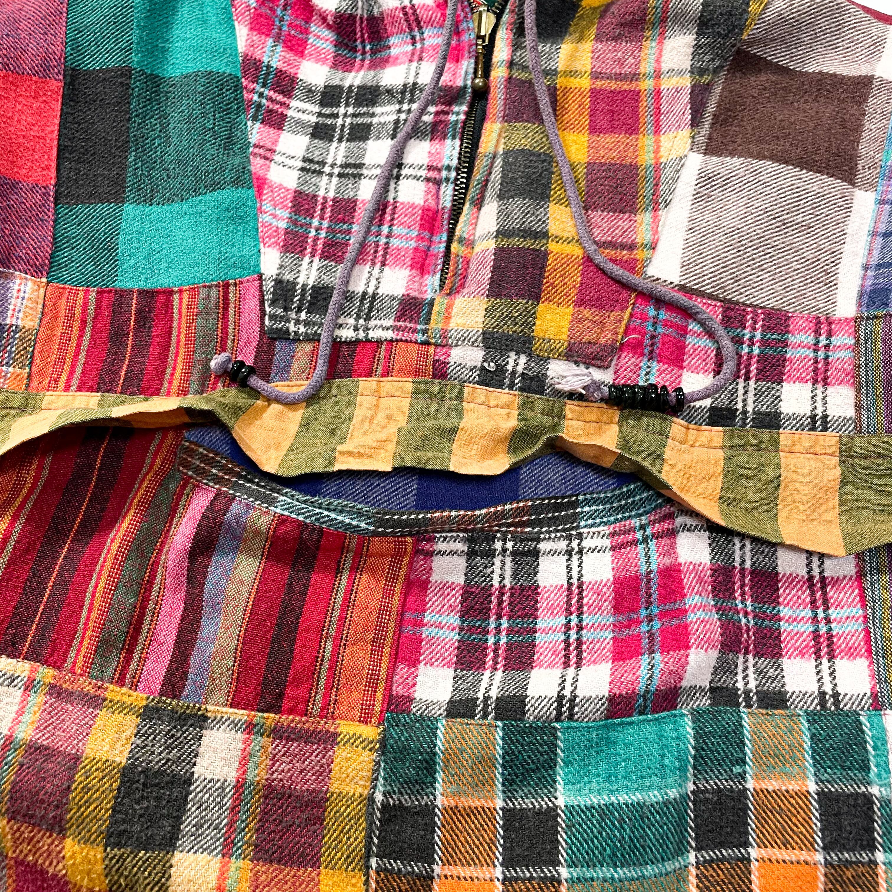 1990s " Joujou " cotton flannel patchwork × solid reversible anorak parka . size medium-large