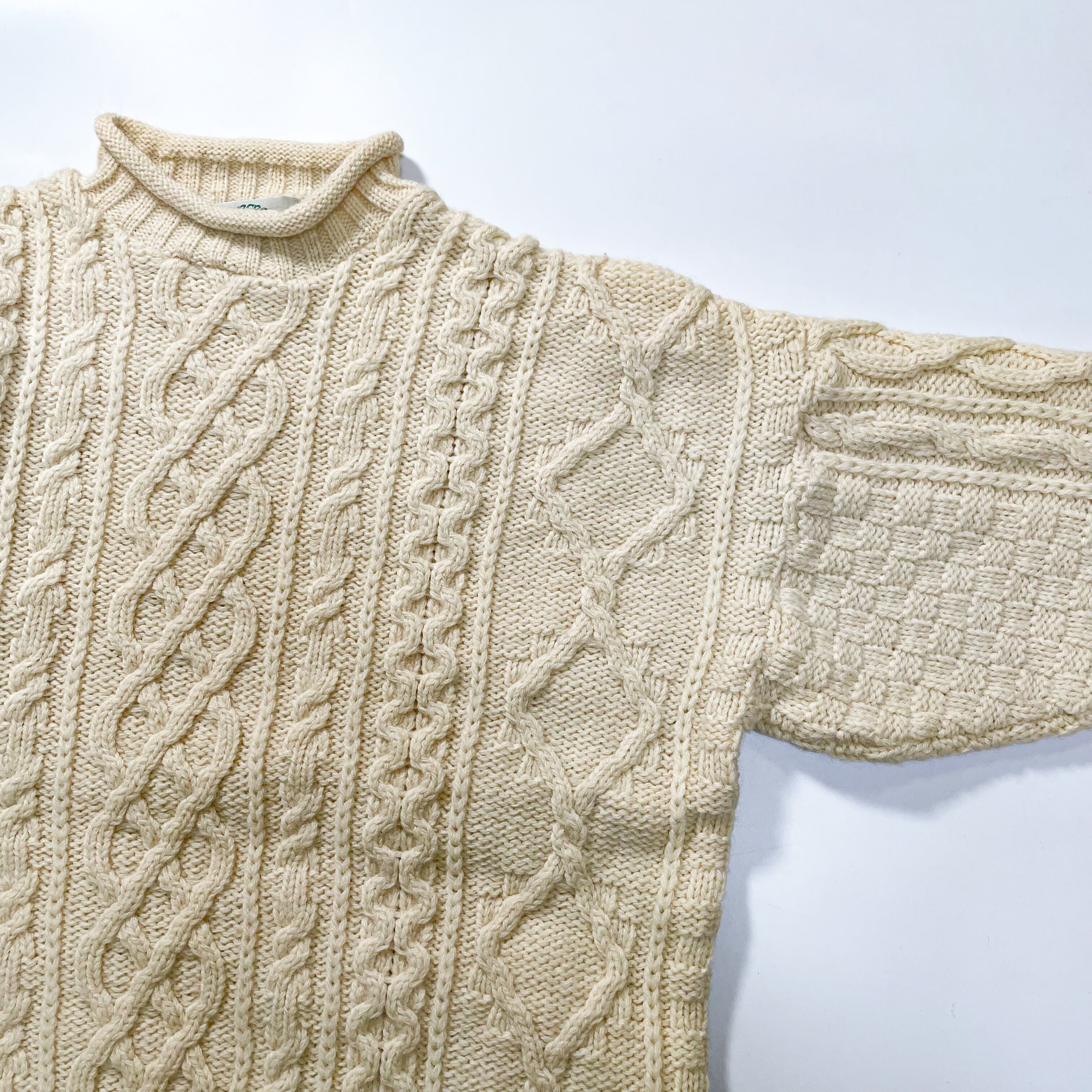 1990s " Arancraft " wool roll neck knit . made in Ireland . size medium .